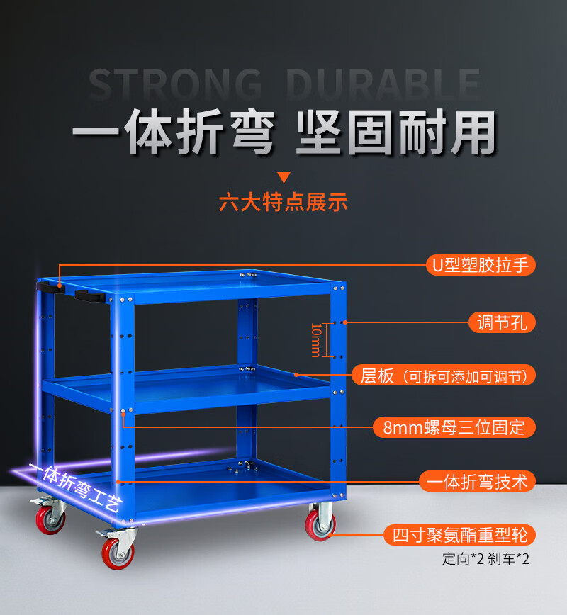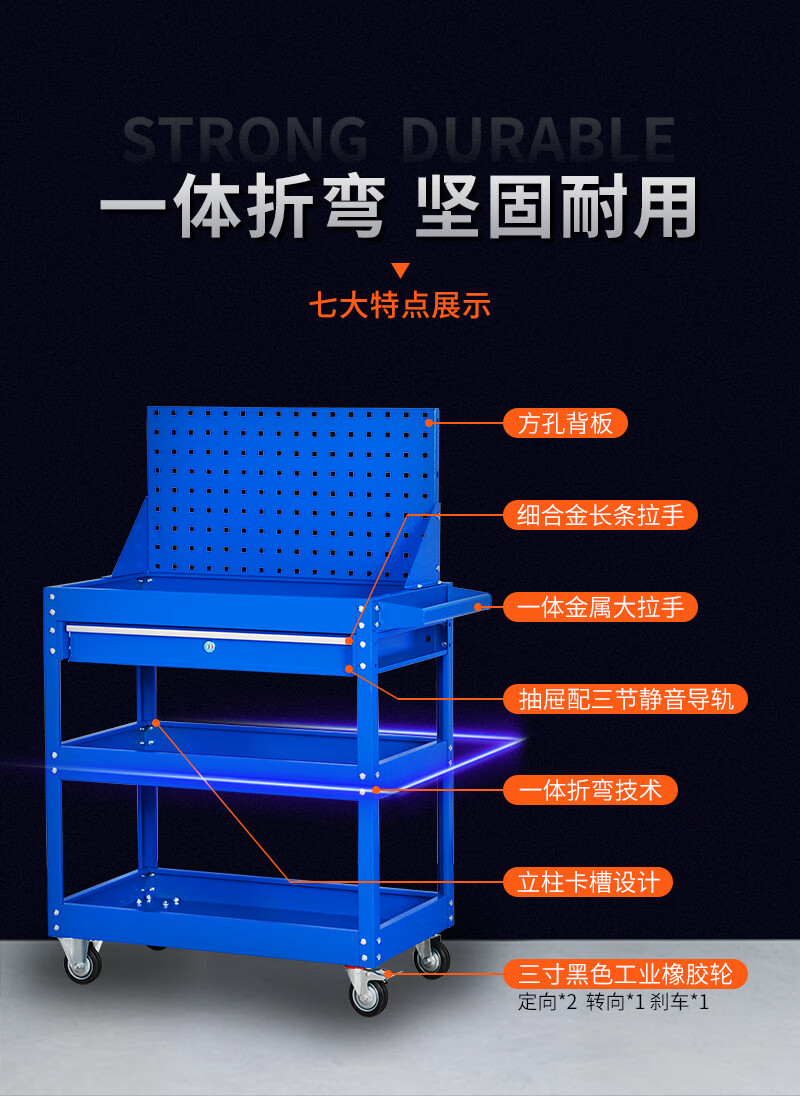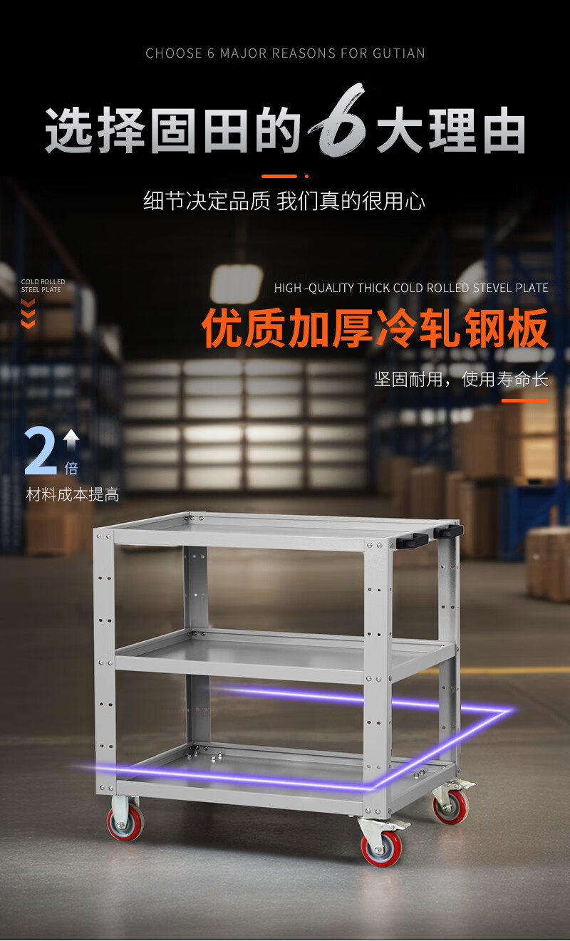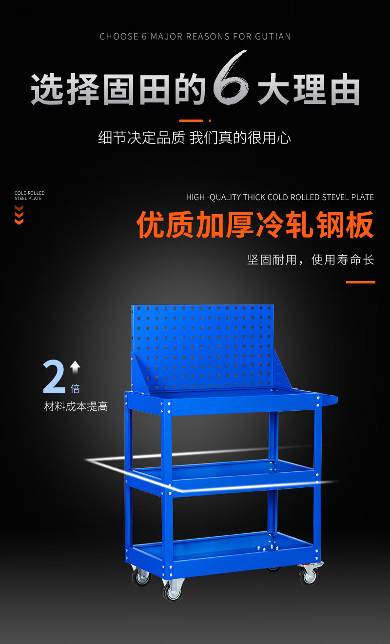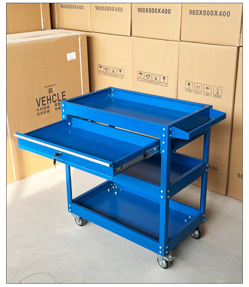 Gutian tool cart auto repair trolley multi-functional mobile turnover parts multi-layer workshop drawer-type pulley three-layer gray white three-layer thickening and enlarged model