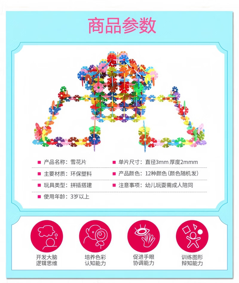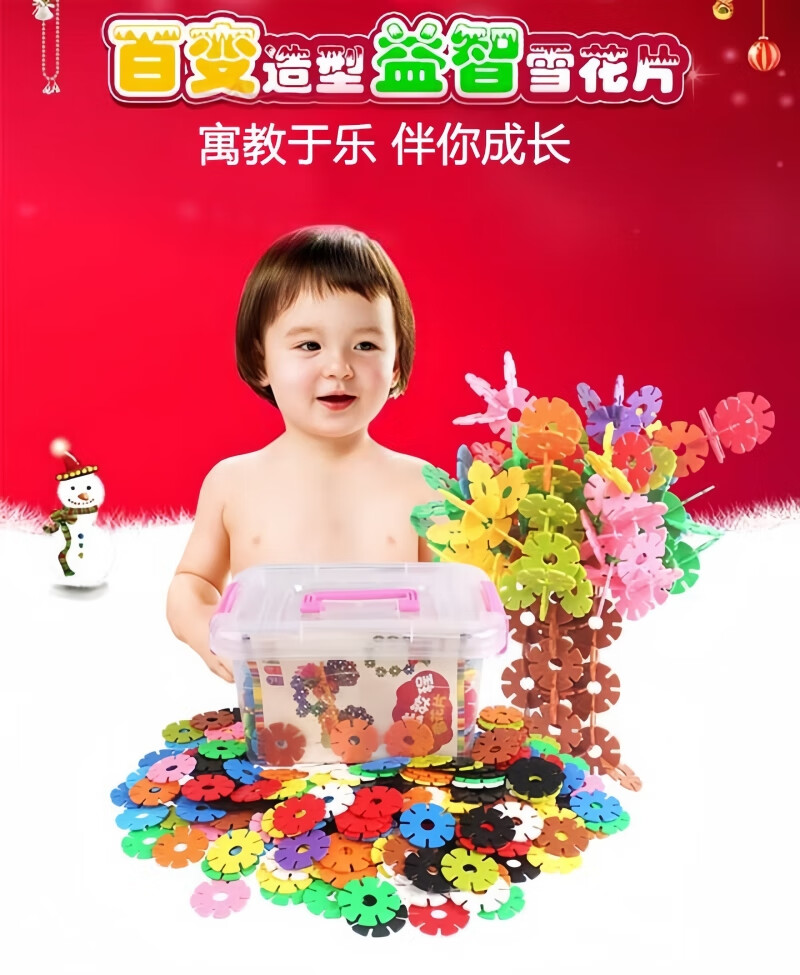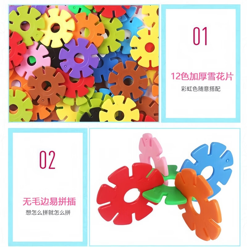 Snow flakes thickened large children's building blocks plastic educational puzzle for girls and boys kindergarten assembly toys 3 cm 500 pieces (bag) Snow flakes