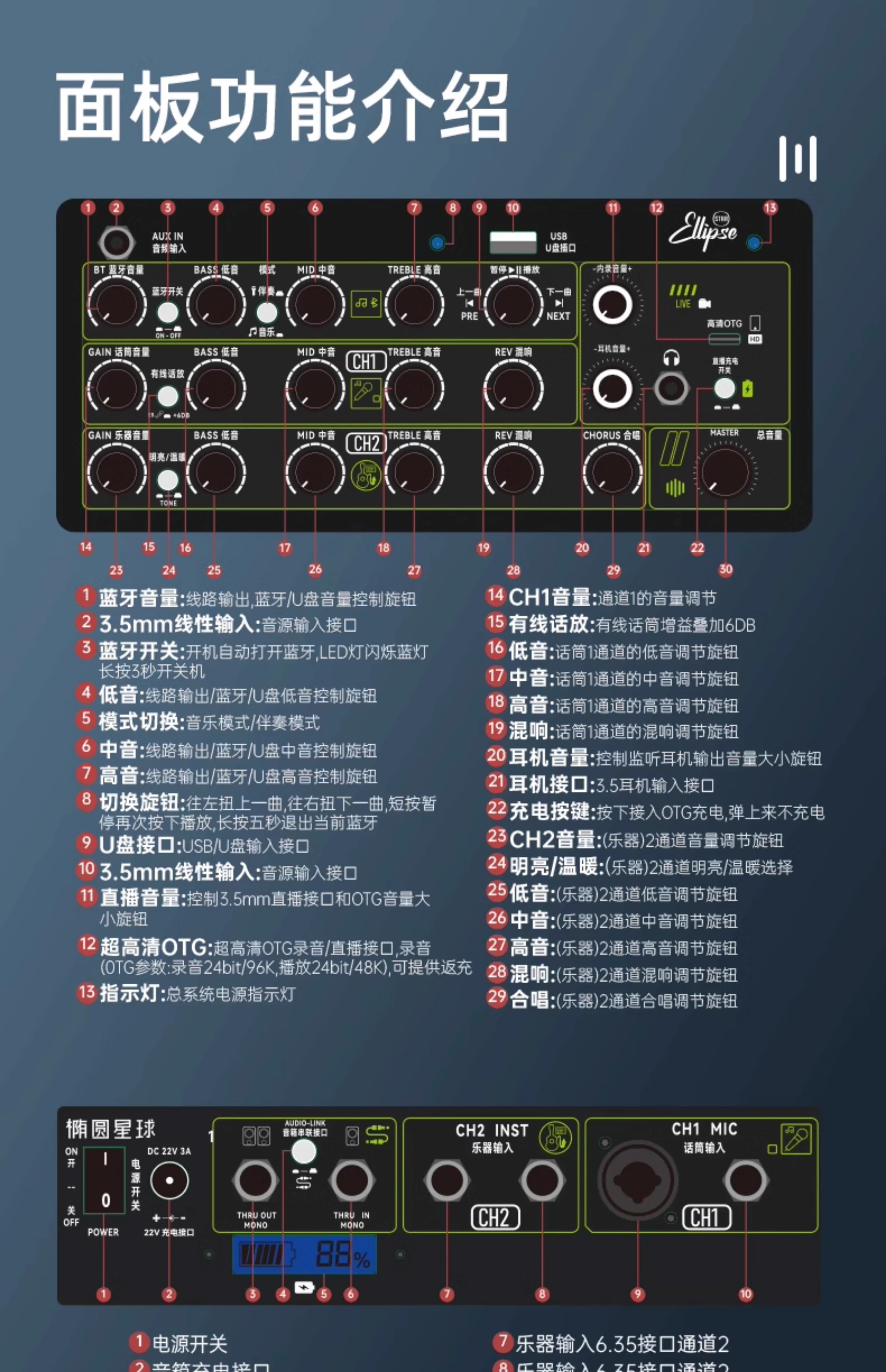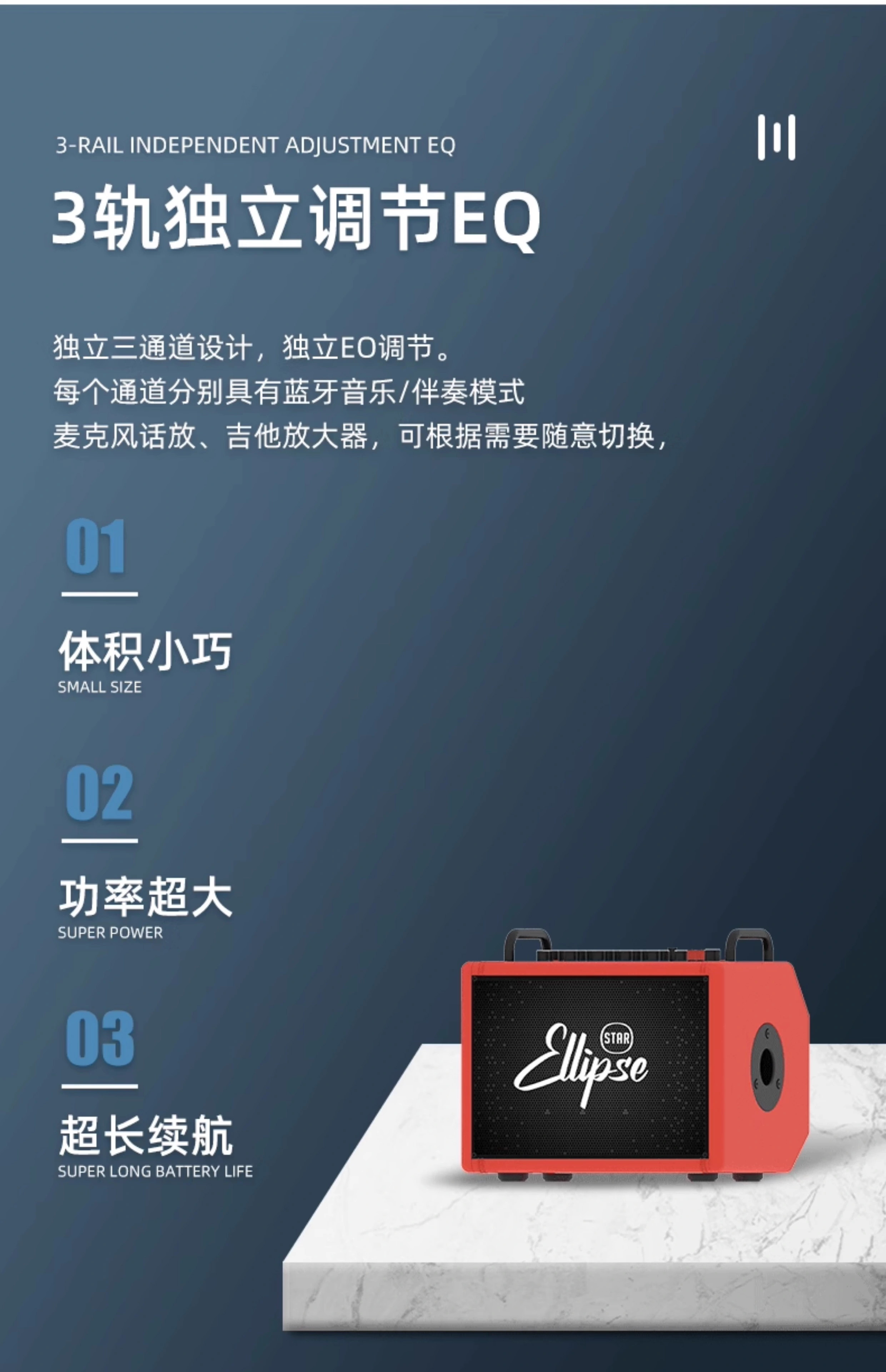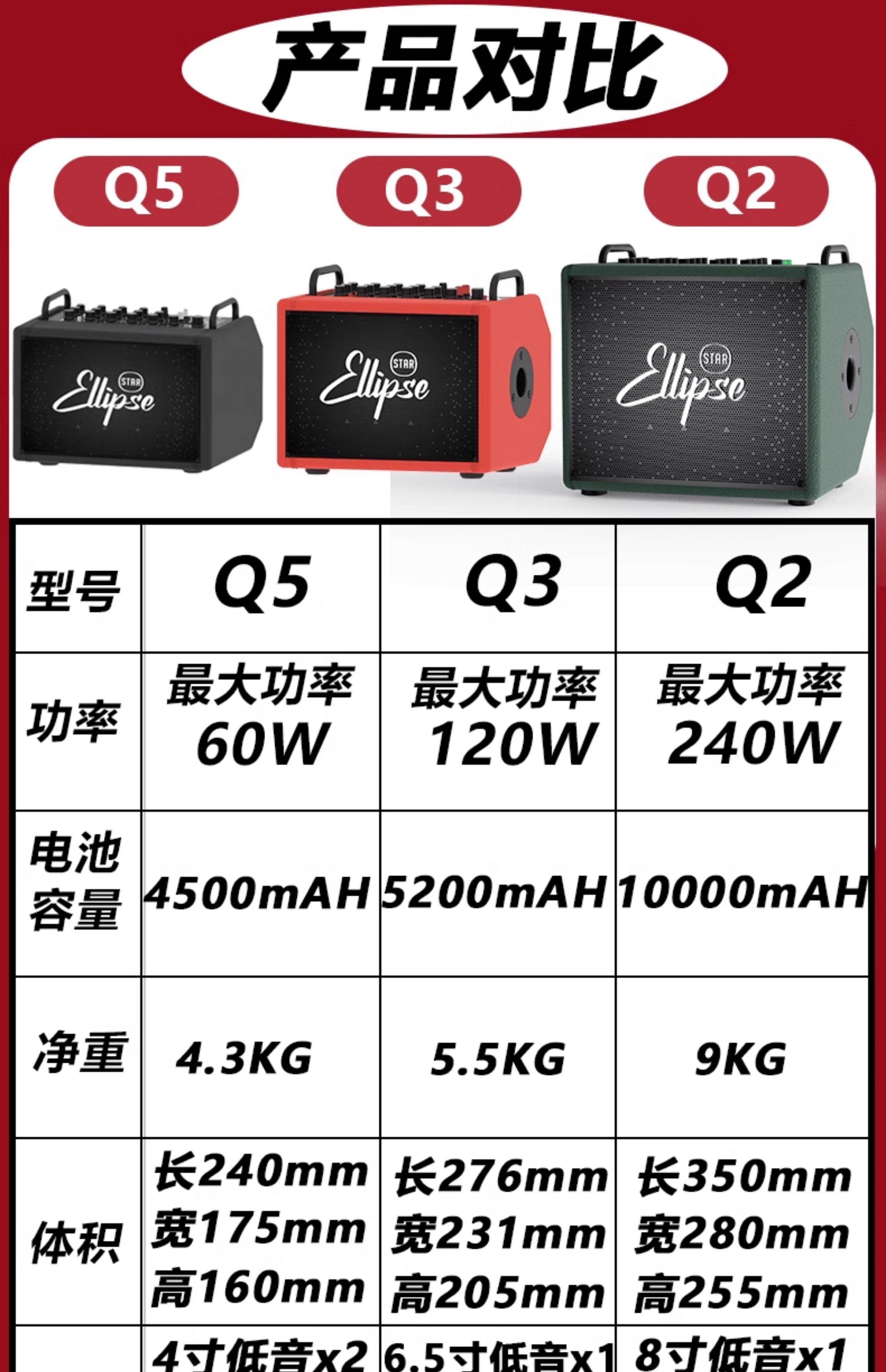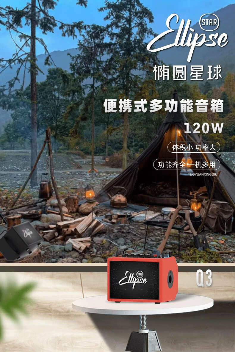 Elliptical Planet Elliptical Planet Q3 Portable Outdoor Charging Blowpipe Saxophone Acoustic Guitar Playing and Singing Bluetooth Live Singing Speaker Elliptical Planet Q5 Black + Internal Recording Sound Card