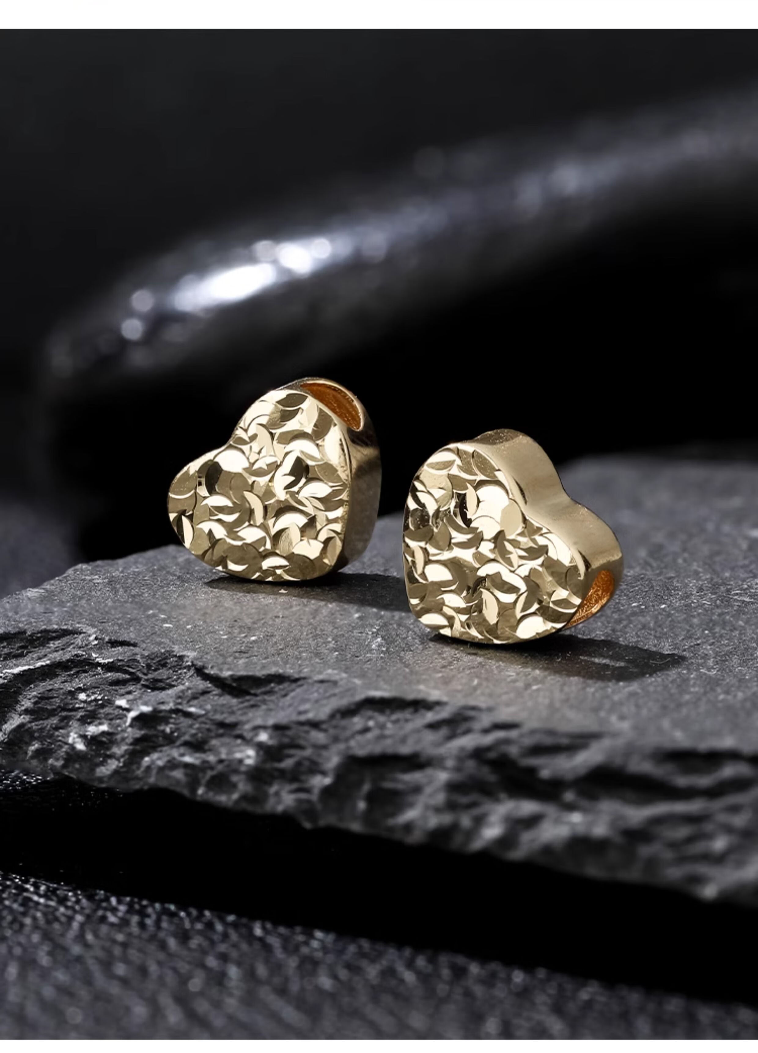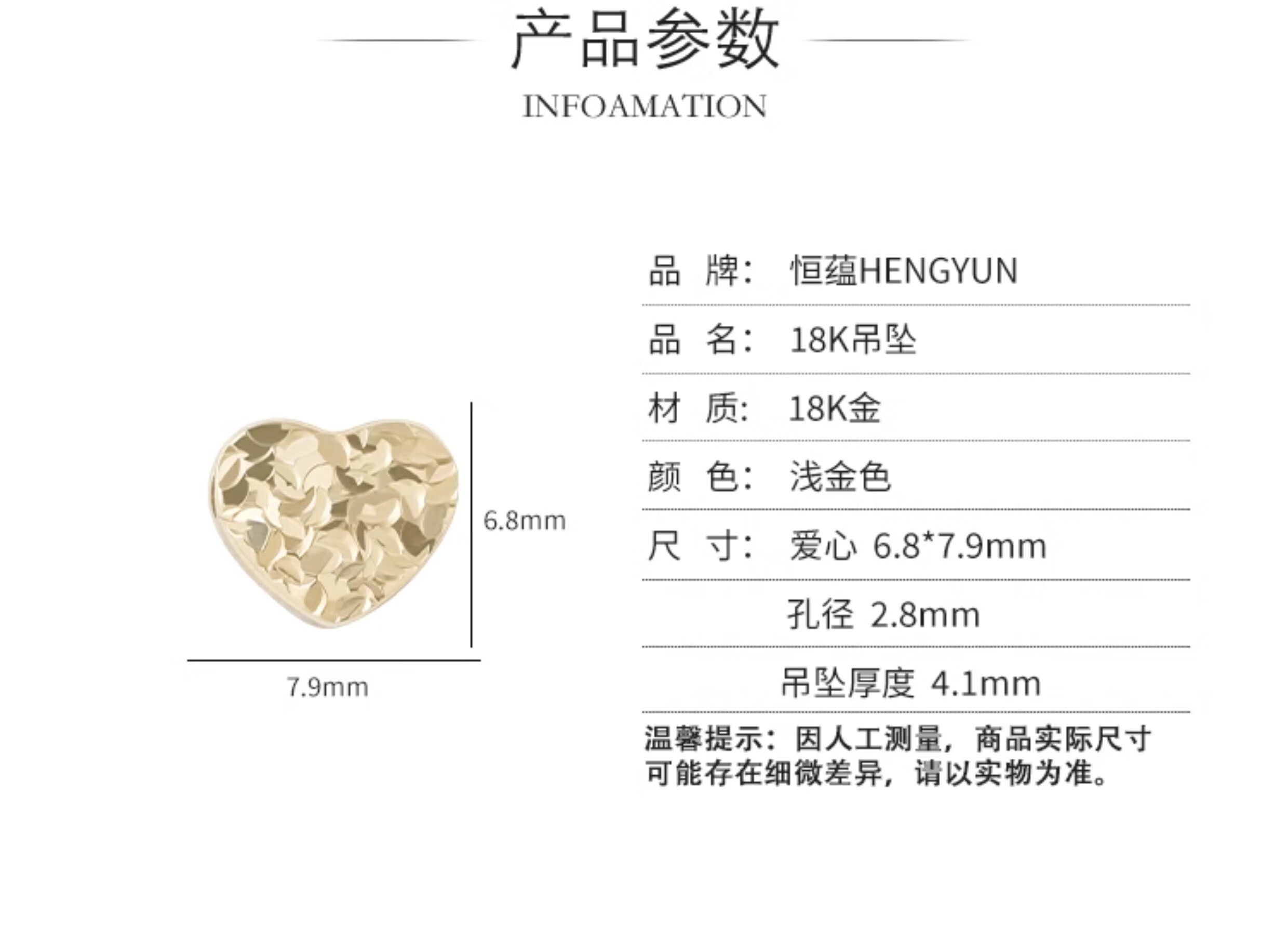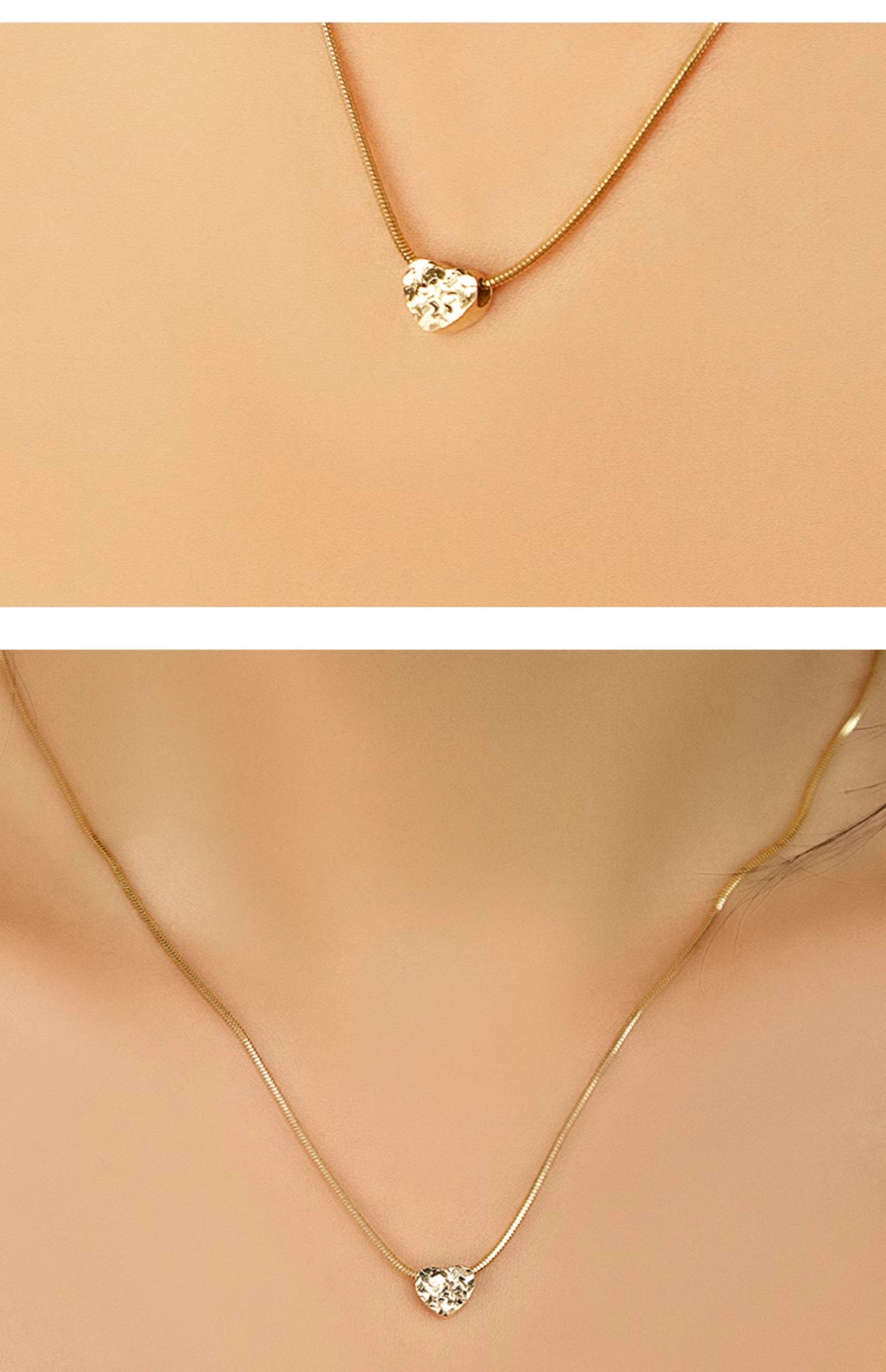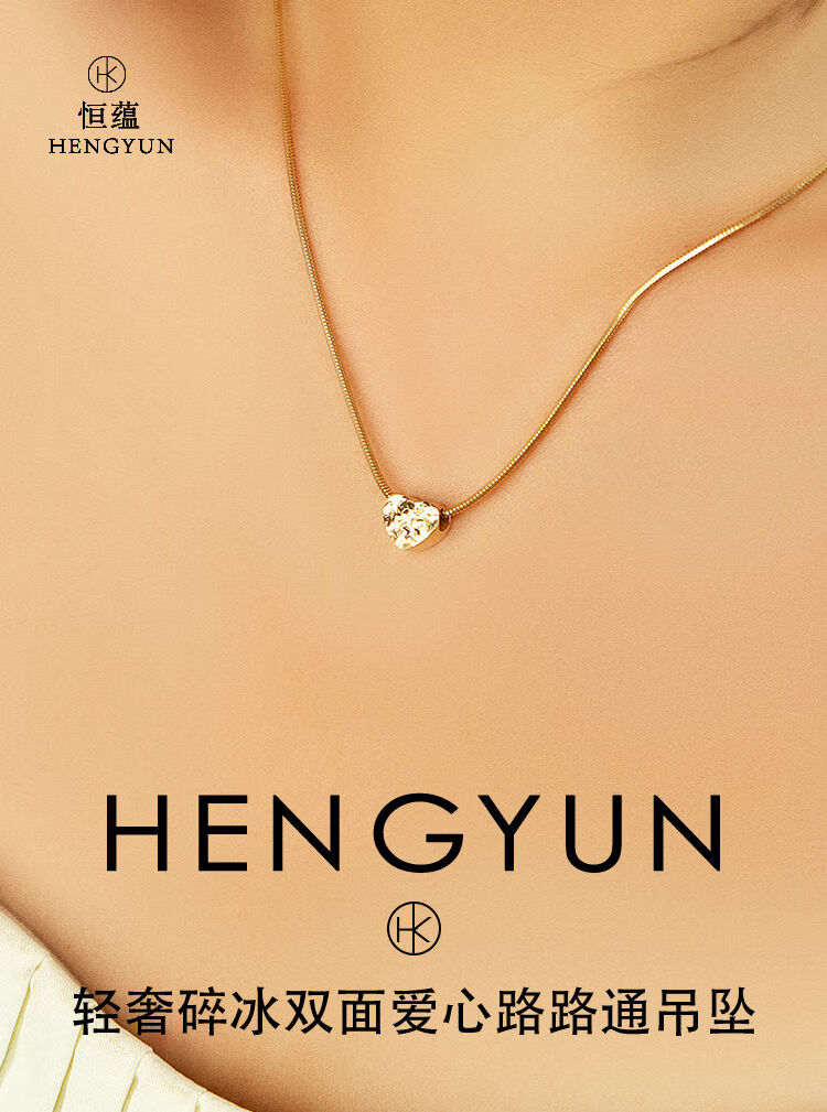Qianjun 18K plain gold crushed ice ice fish scale engraved sparkling love double-sided pendant sweet age-reducing fresh necklace pendant light gold ready stock
