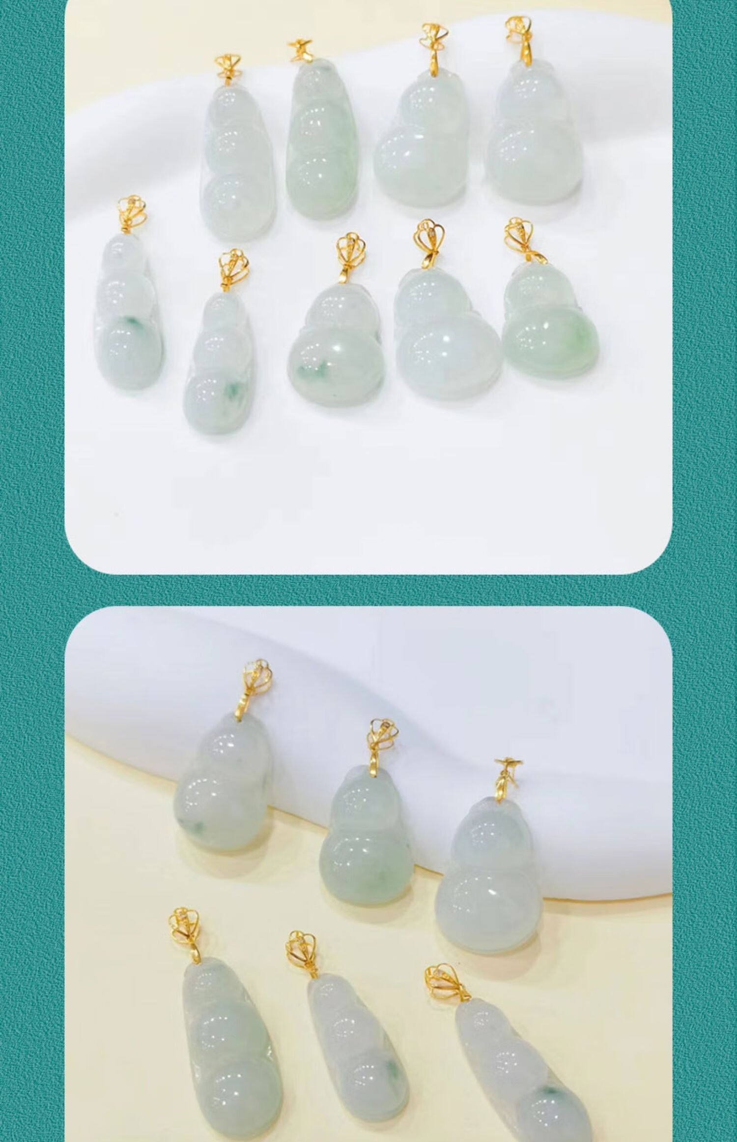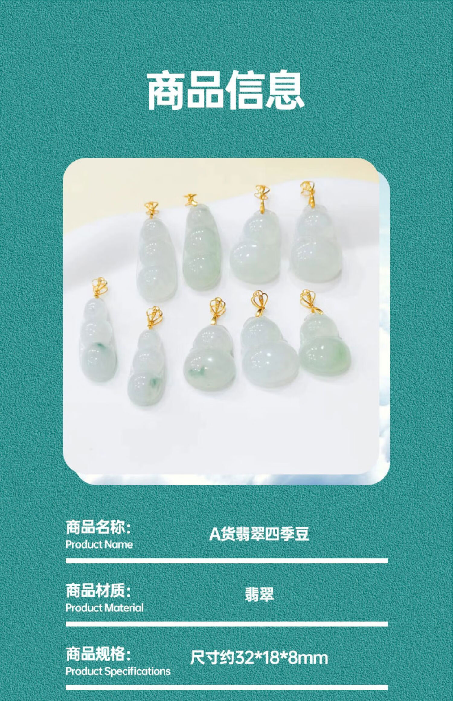 Qianjun 18K gold A-grade ice seed green bean Fushou gourd pendant, light luxury and high-end accessories, green beans