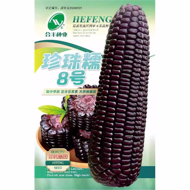 National Approval Spring Sowing Corn Seed Fruit Black Pearl Summer Sowing High Yield Early Maturity Field Eaten Raw Sweet and Sticky Color Pearl Nuo No. 8 Corn Seed 40g Original 5 Bags (Buy More for Cheap)
