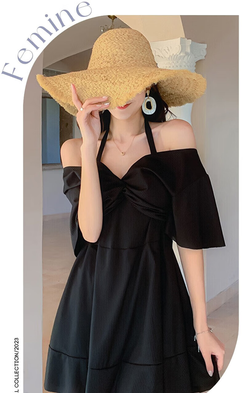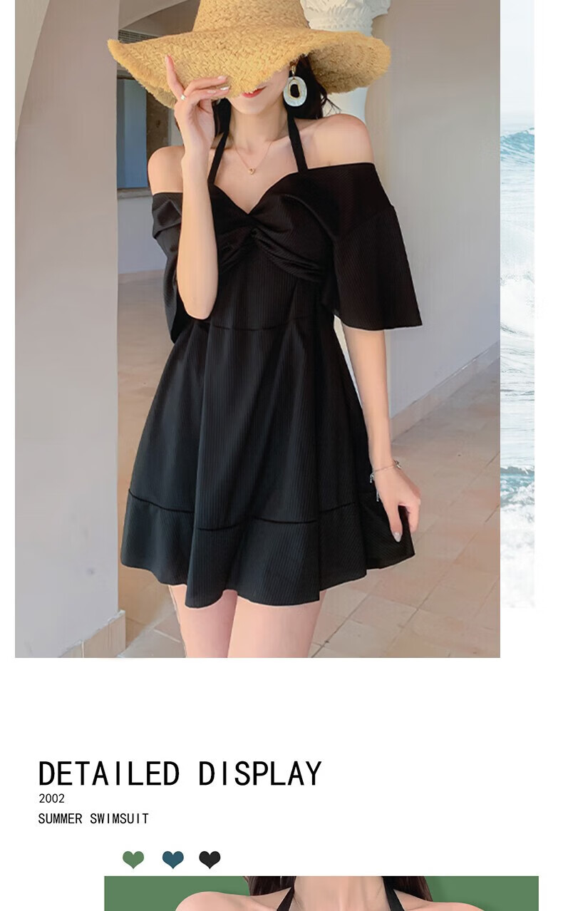 Nanmuxiong plus size swimsuit for fat girls, hot spring sports, conservative one-piece skirt, belly-covering, slimming, seaside vacation women's swimsuit, black 100-160Jin Jin is equal to 0.5 kg