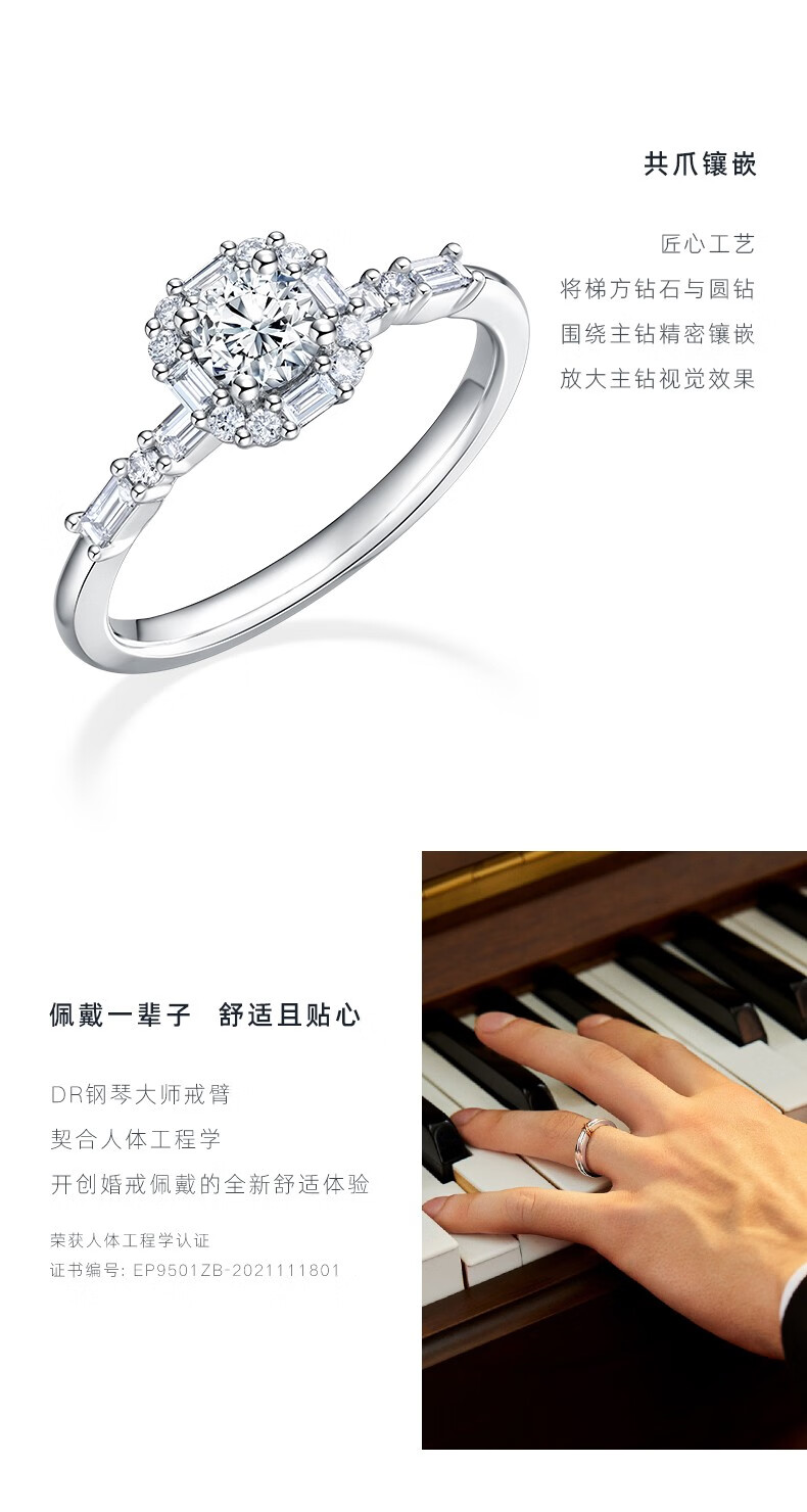 DR Proposal Diamond Ring Platinum TRUELOVE Series Simple Luxury Engagement Diamond Holiday Gift Women WJ0462 30 Points E Color VS1