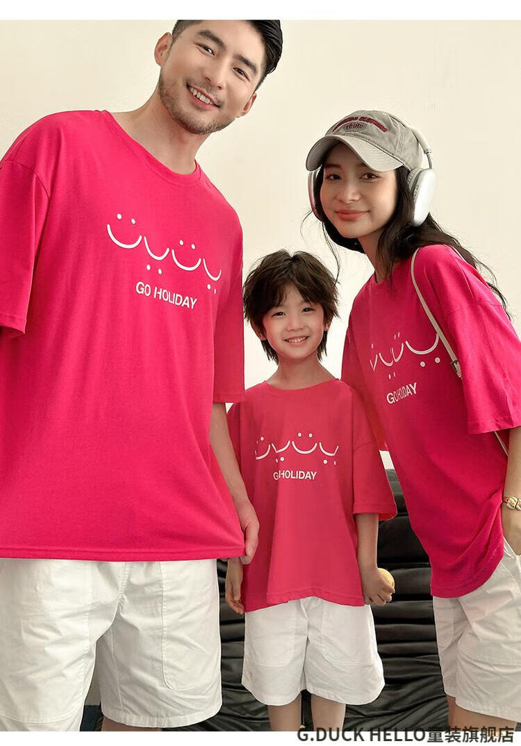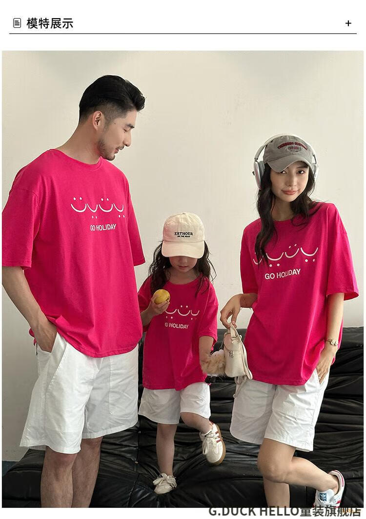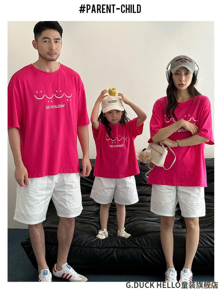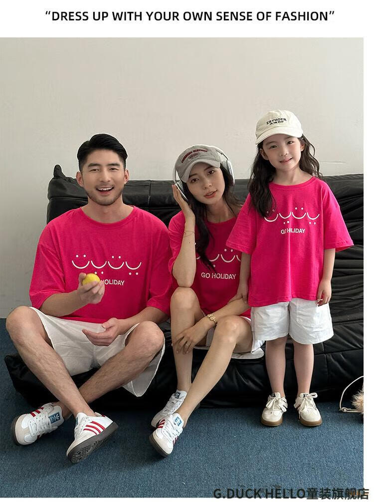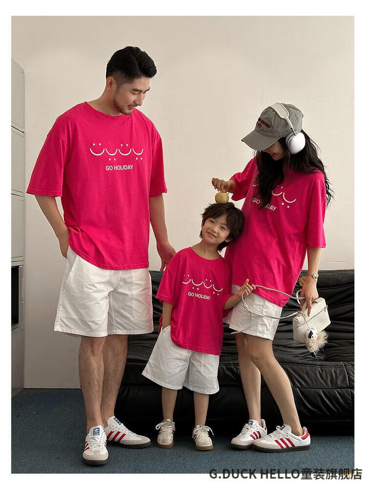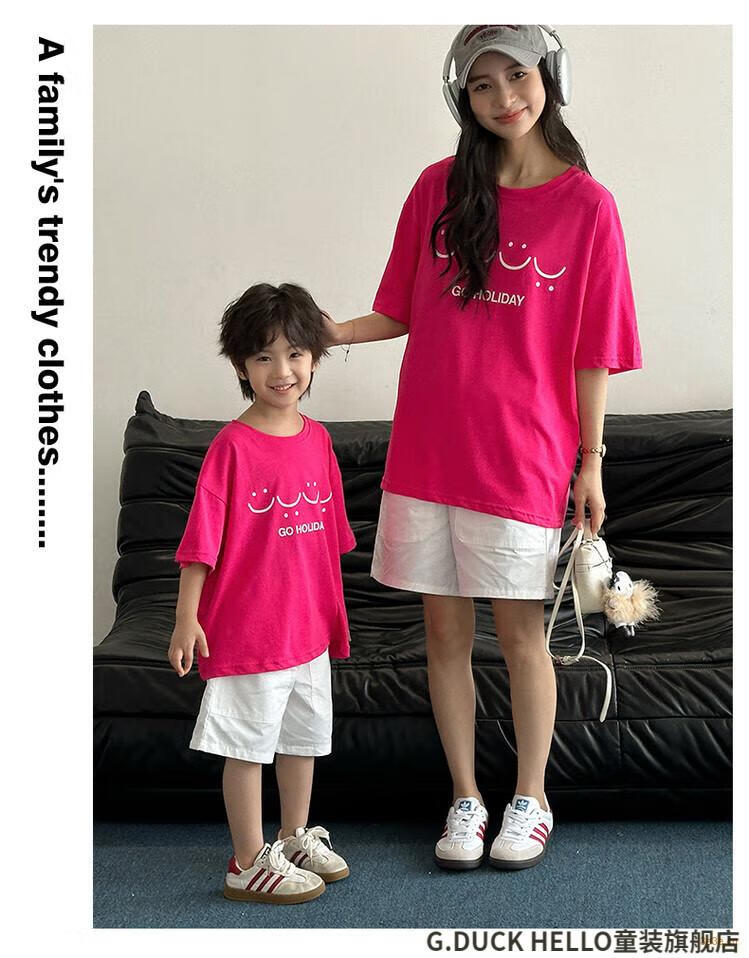 G.duck little yellow duck parent-child wear summer 2025 new style family of three or four full family wear short-sleeved T-shirt suit mother and daughter wear rose red smiling face short-sleeved 150 recommended for 11~12 years old 140-150cm cm