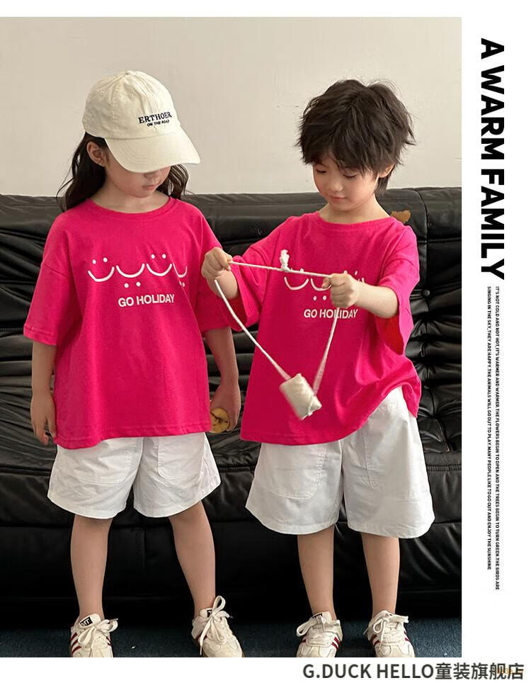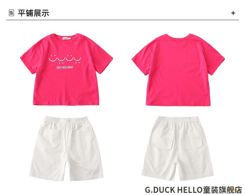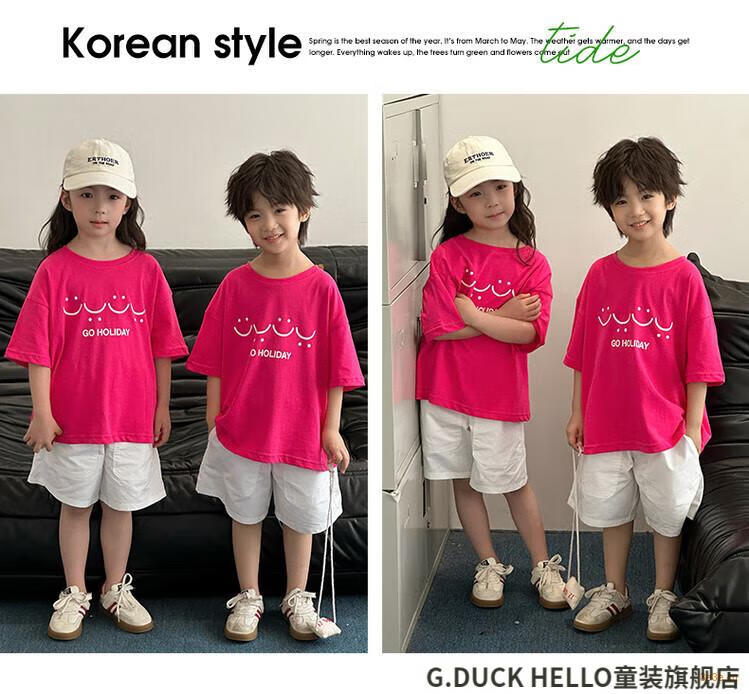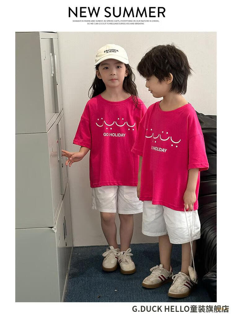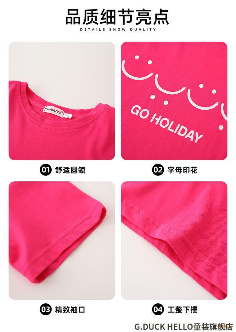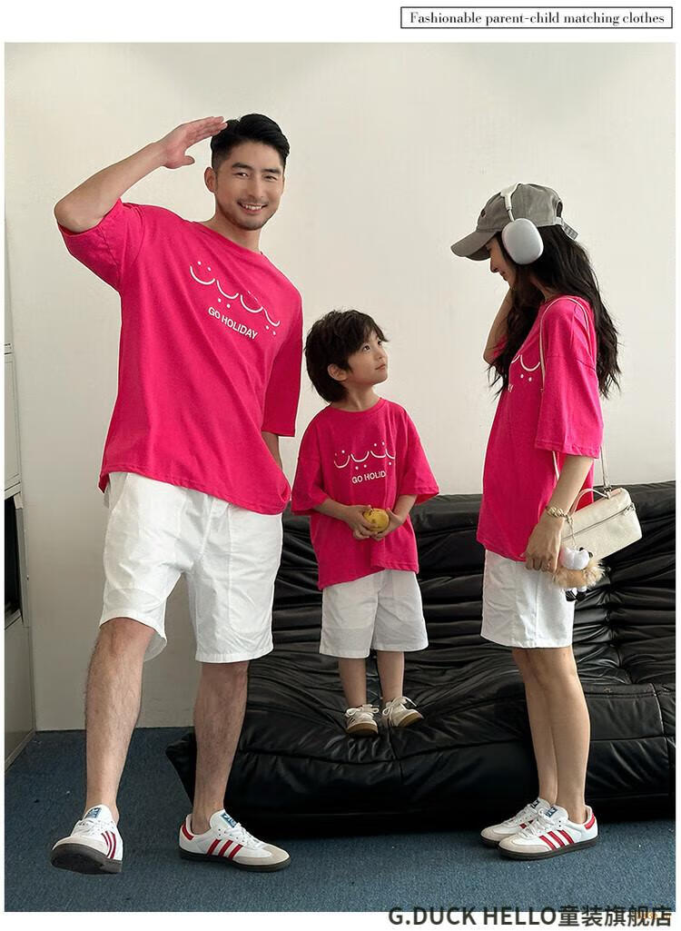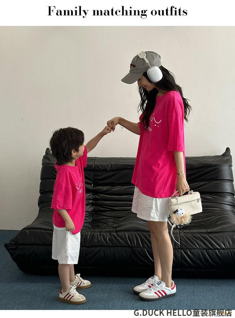 G.duck little yellow duck parent-child wear summer 2025 new style family of three or four full family wear short-sleeved T-shirt suit mother and daughter wear rose red smiling face short-sleeved 150 recommended for 11~12 years old 140-150cm cm