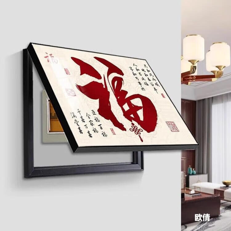 Power box cover, electric meter box, decorative painting, punch-free, dining room, living room, hanging painting, distribution box decoration, 50*40 can accommodate 42*32 flip-up black frame