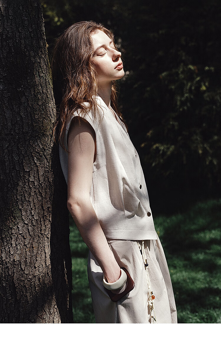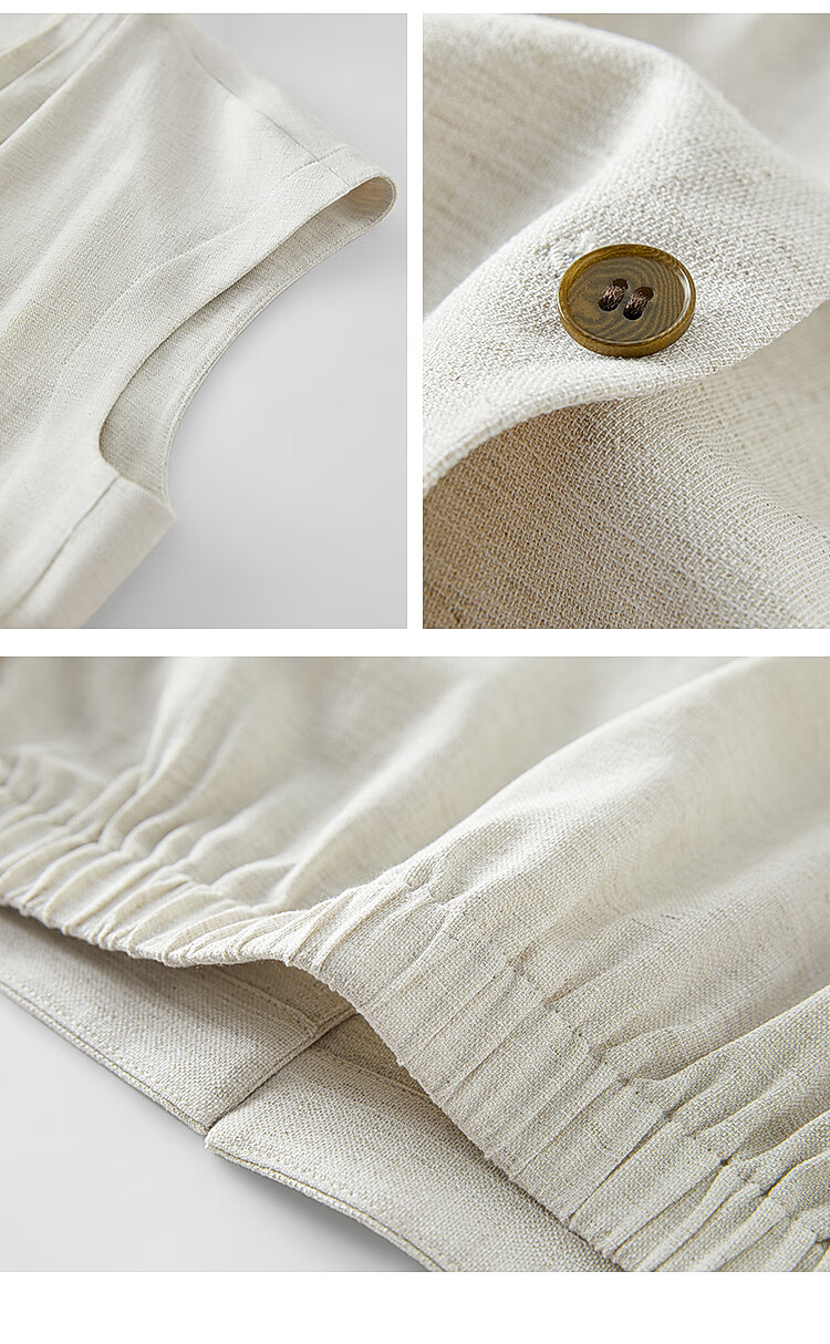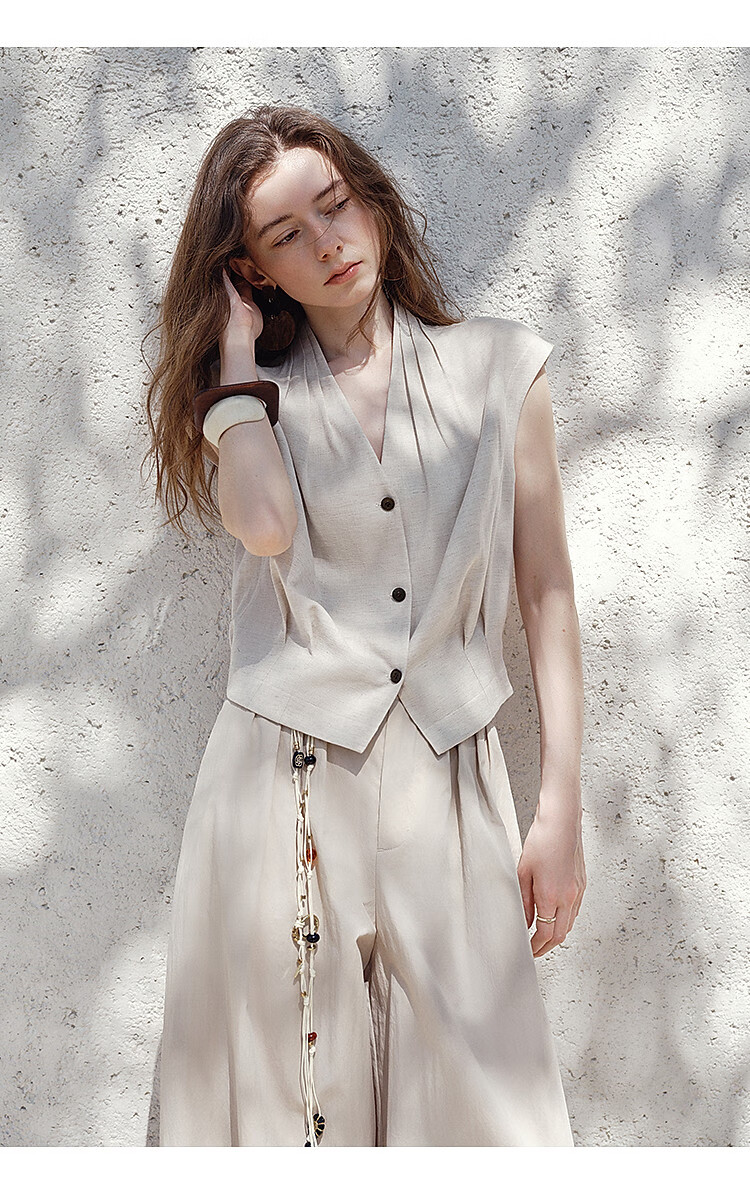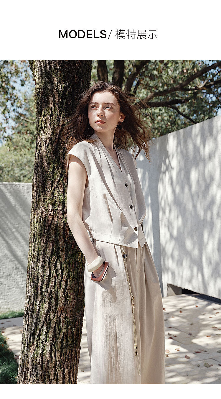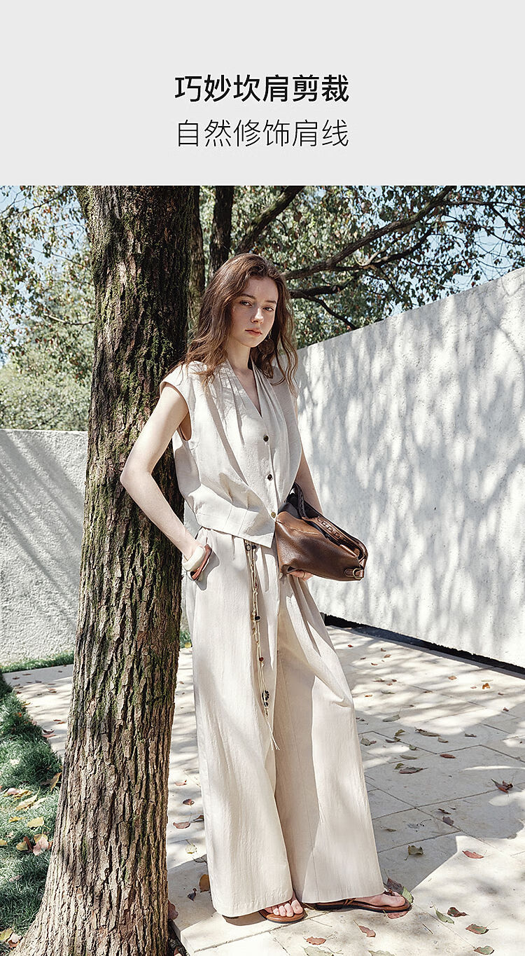Fan Silan's temperament old money style hemp natural color casual shirt women's 2025 summer new style waistcoat v-neck shirt 2390 hemp natural color M