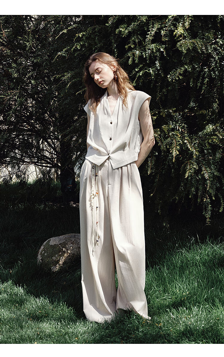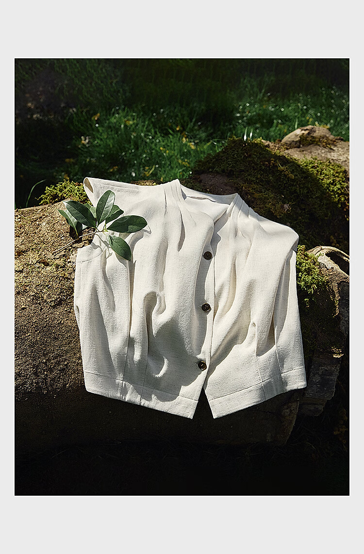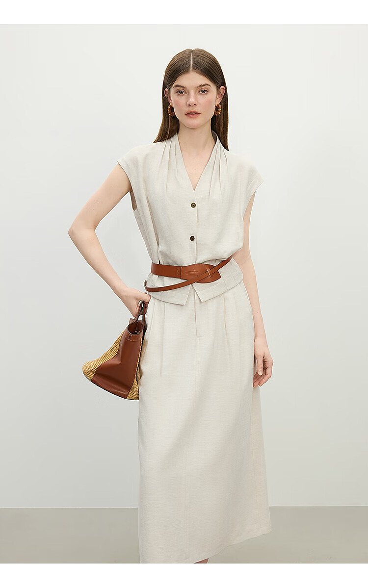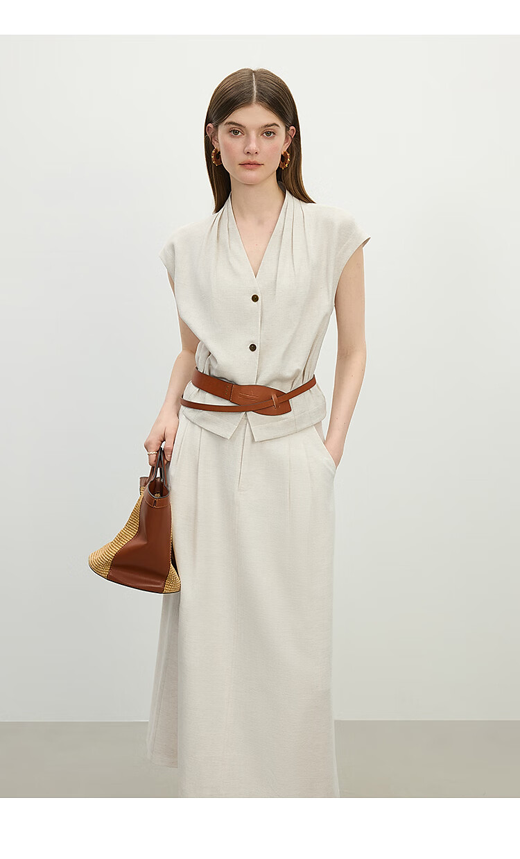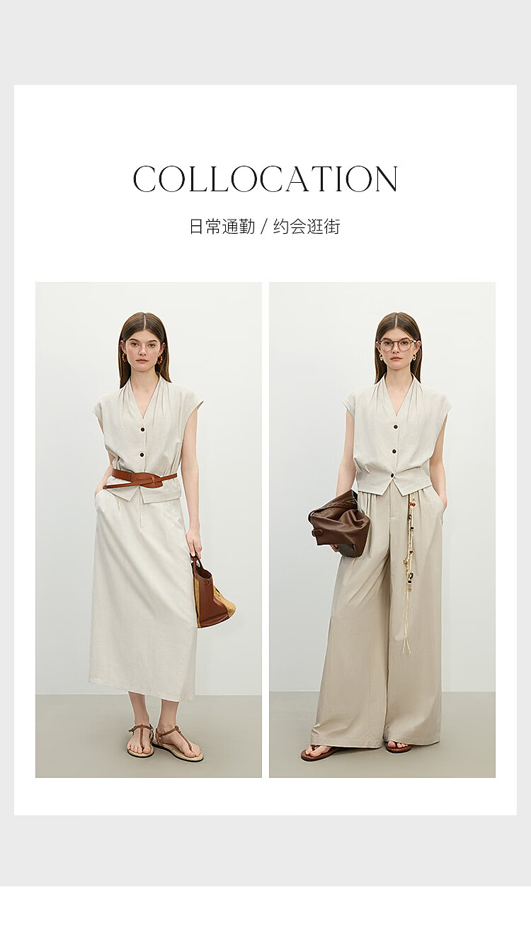 Fan Silan's temperament old money style hemp natural color casual shirt women's 2025 summer new style waistcoat v-neck shirt 2390 hemp natural color M
