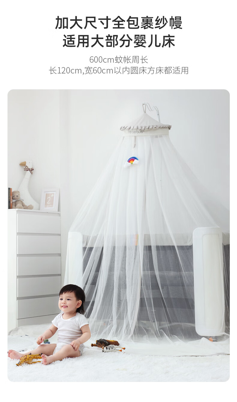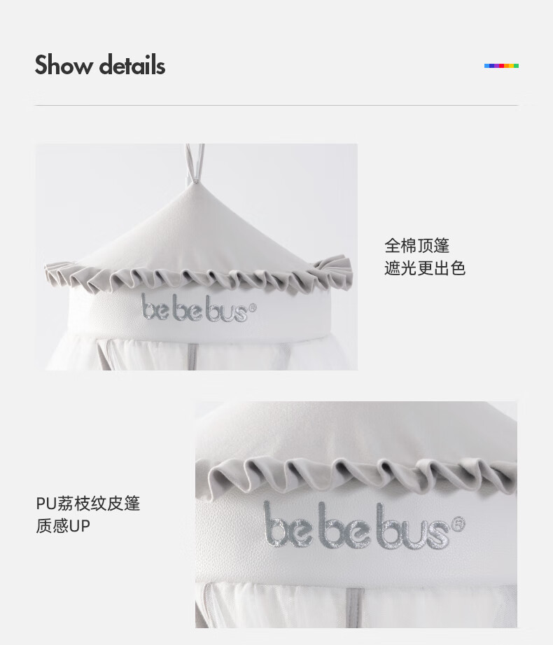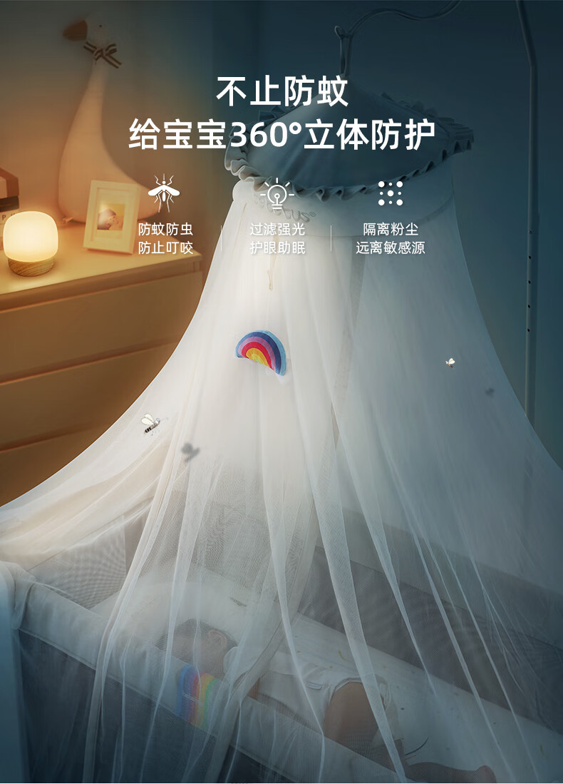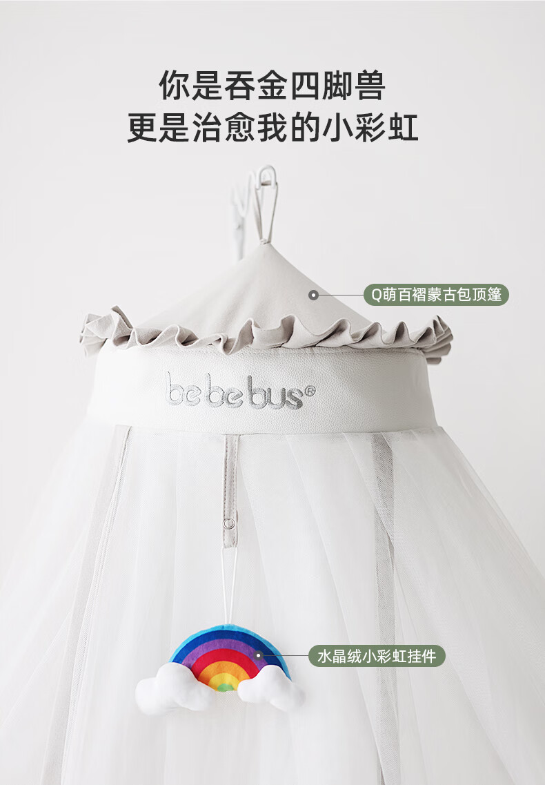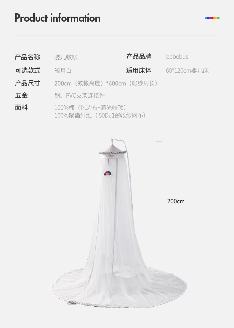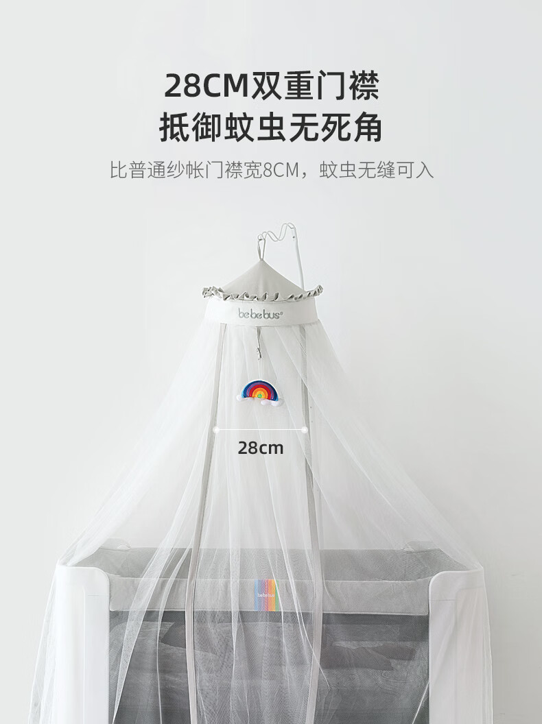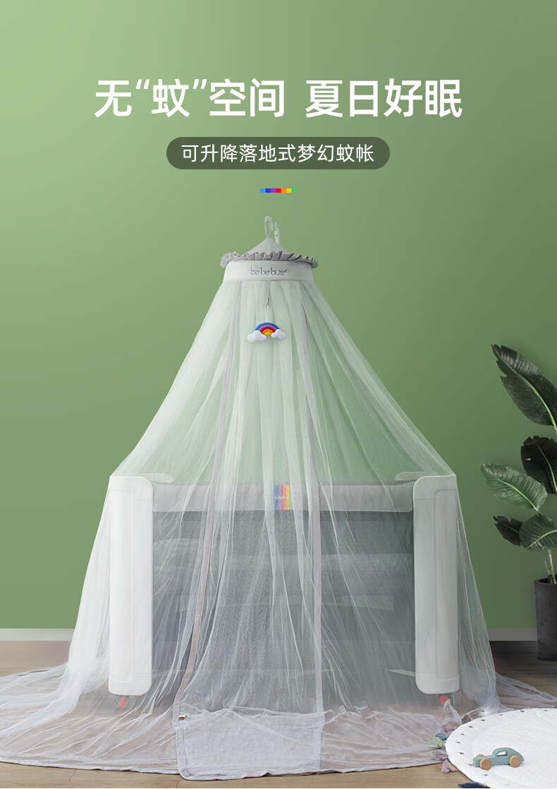 Bebebus crib mosquito net full-cover universal children's mosquito net bracket baby anti-mosquito cover floor-standing liftable bright moon white