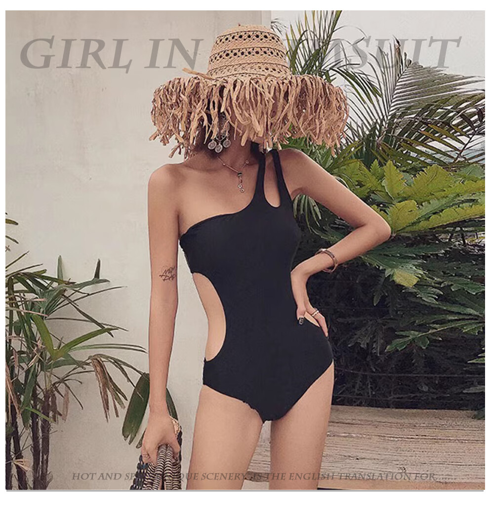 Nanmu Xiong Swimsuit Women's Summer New Sexy One-piece French Retro Bikini Small Breast Gathered Backless Hot Spring Swimsuit Black L 75-115Jin Jin is equal to 0.5 kg