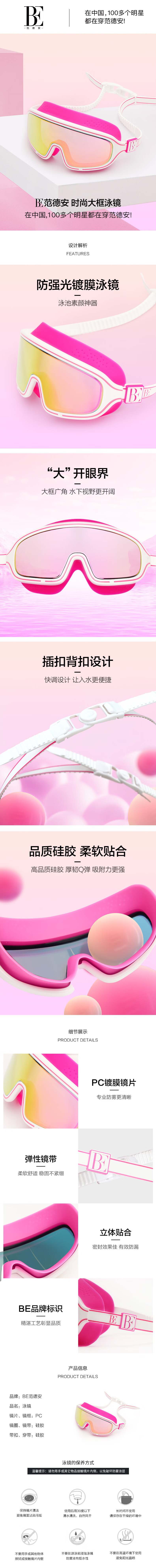 Fan De'an (BALNEAIRE) Ye Qing's same style 2025 unisex swimming goggles anti-fog and anti-glare dopamine color BYJ080 hot pink flat light