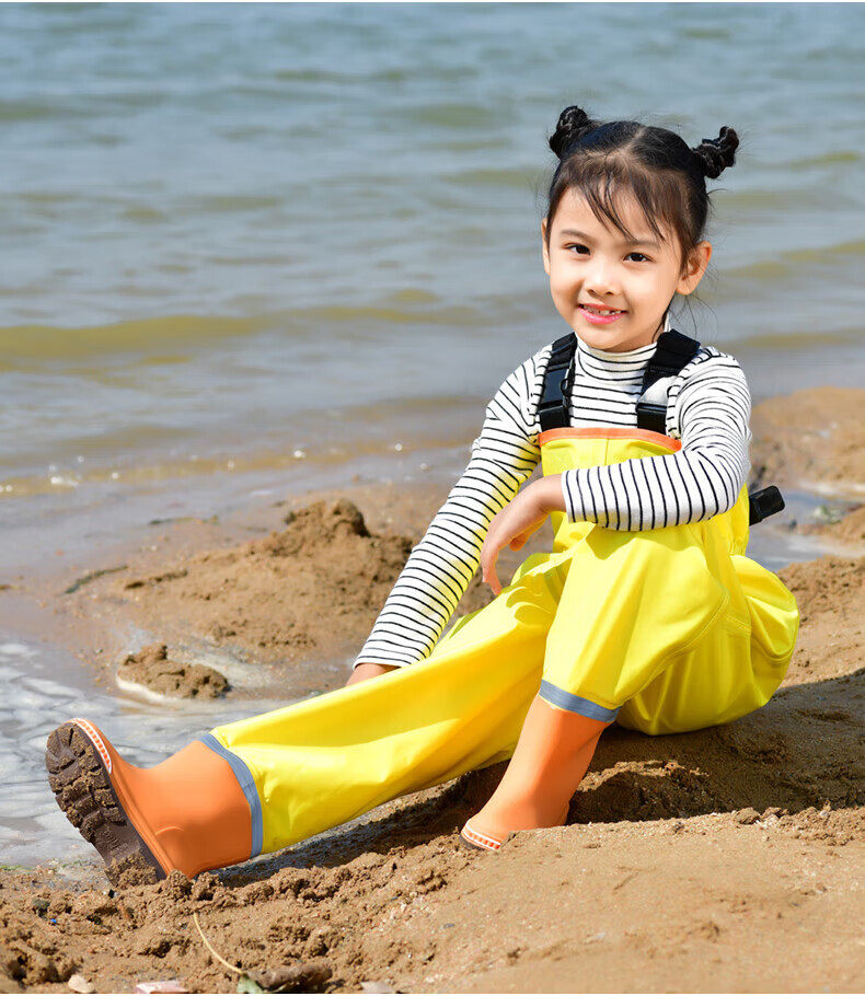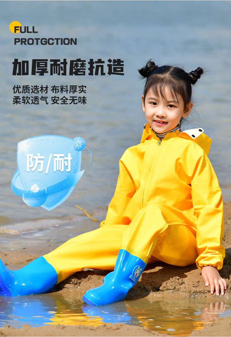 Shantou Lincun children's water play one-piece waders kindergarten waterproof clothes and sea equipment for men and women children's yellow overalls thickened special model - with size 22 (shoe inner length 13cm) one size