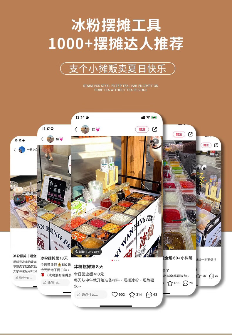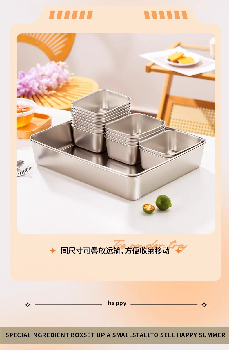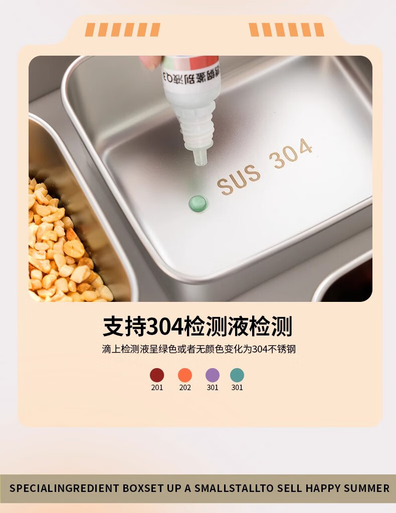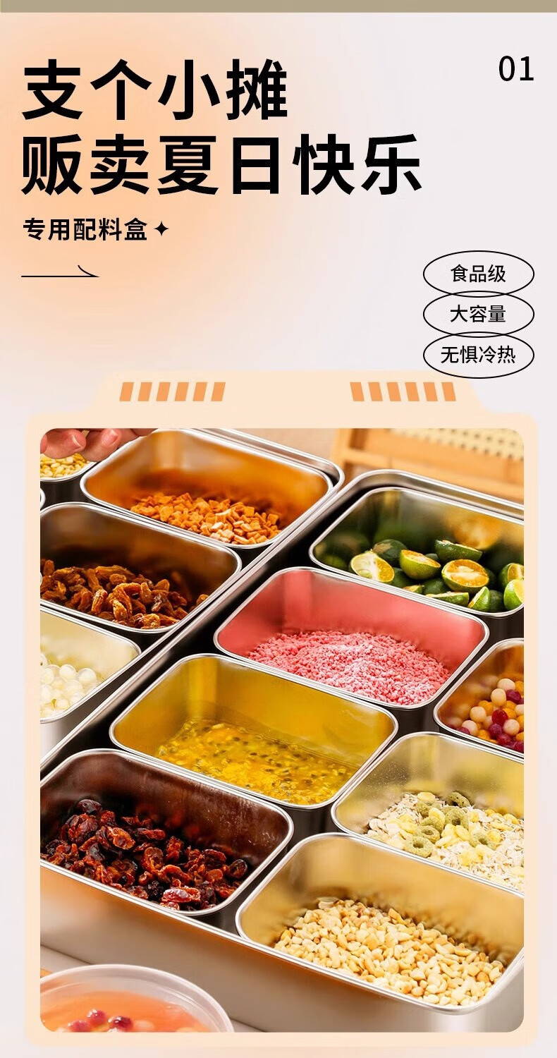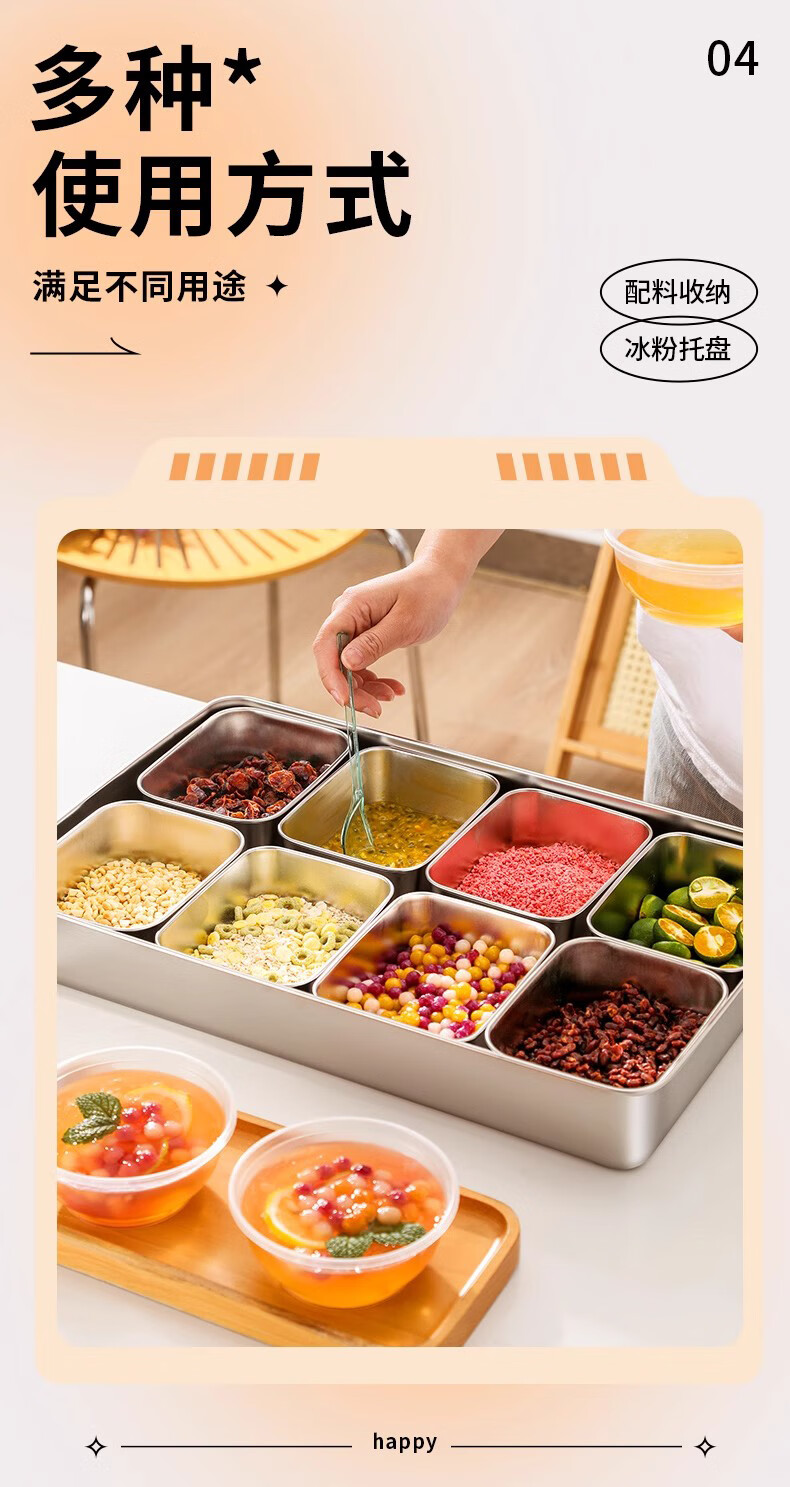 Haidi 304 stainless steel ice powder ingredient box stall seasoning box set commercial all-in-one multi-compartment seasoning and small ingredient storage box Bawei-seasoning box with lid all steel (8 spoons included)