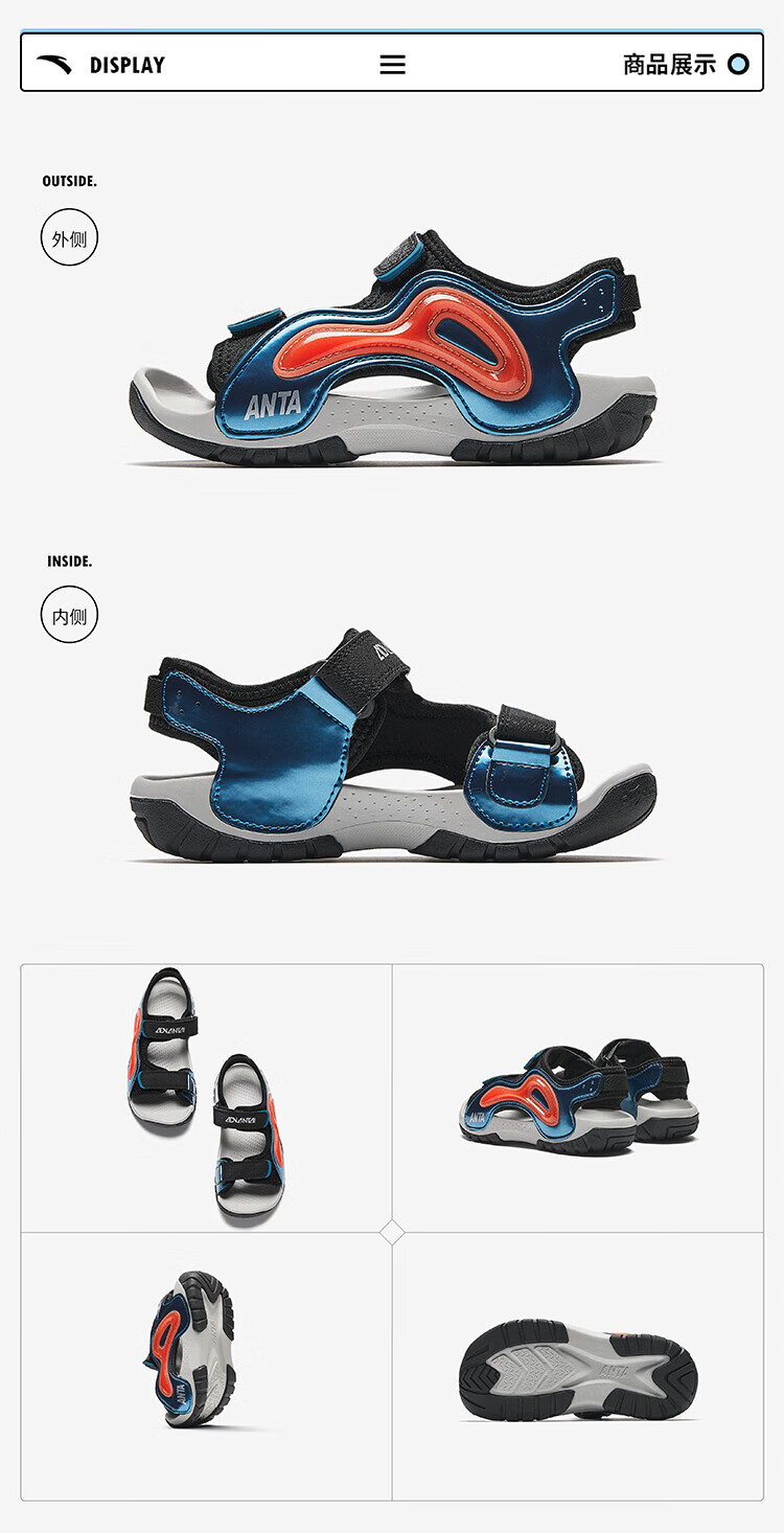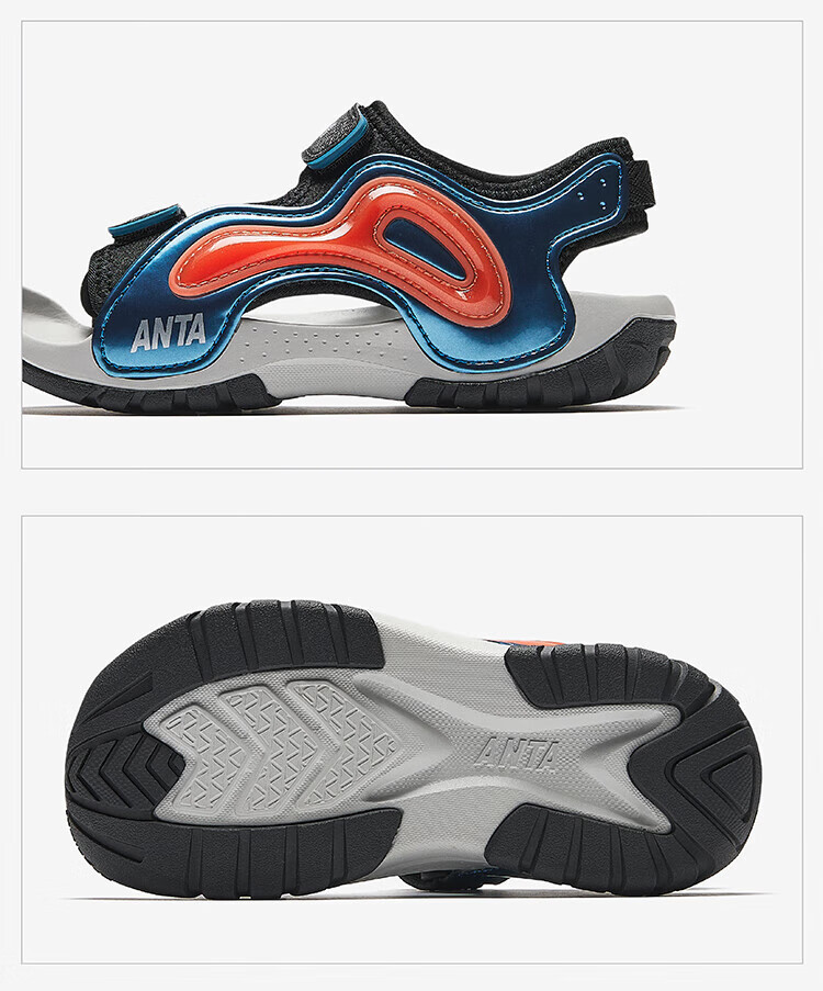 ANTA Children's Sandals Universal Children's Shoes 2025 Summer New Phantom Bullet Technology Outdoor Beach Shoes Black/Magma Orange-2 28