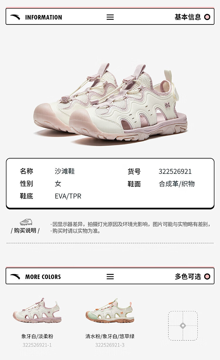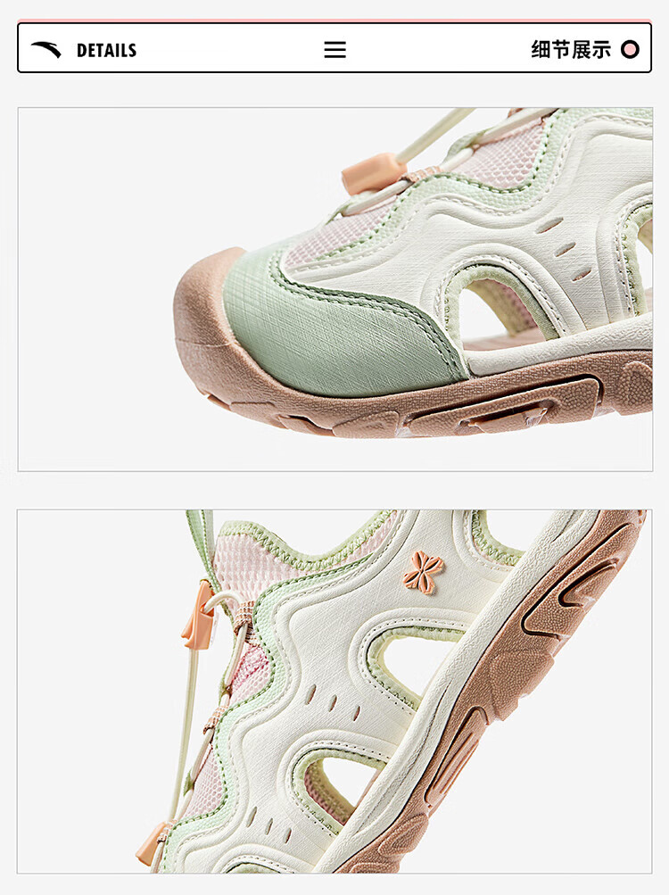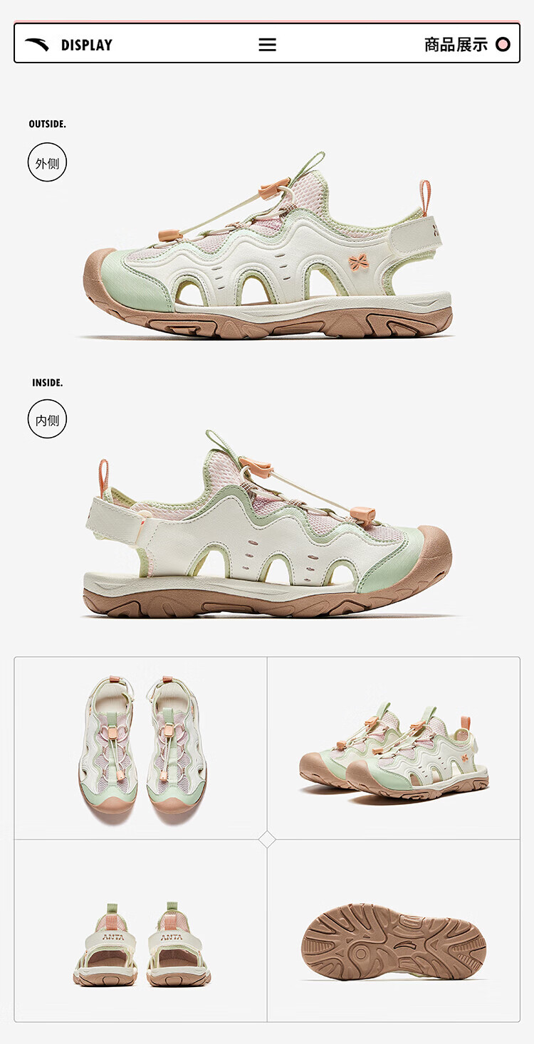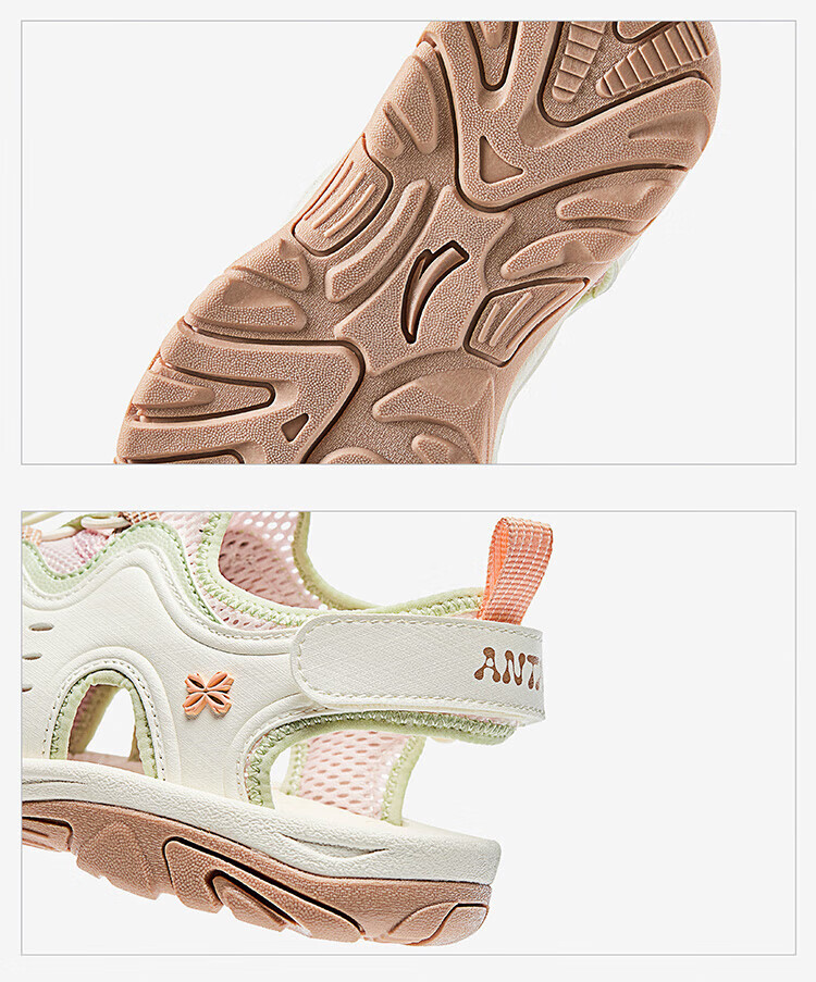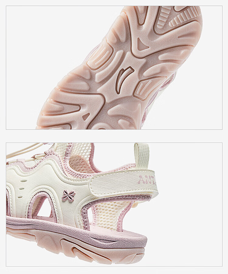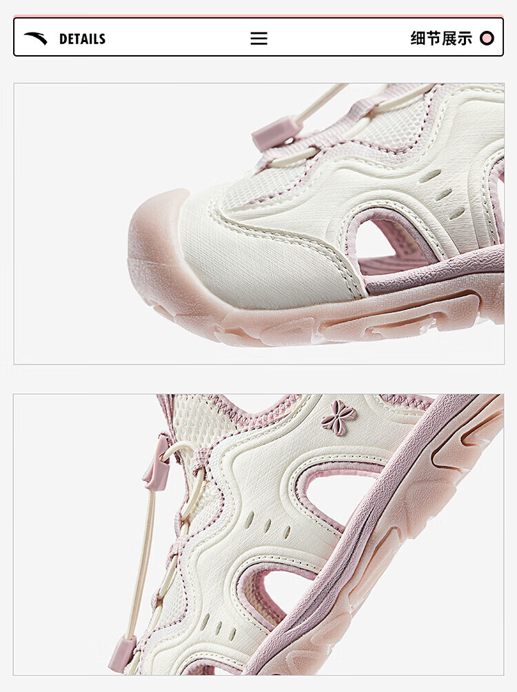ANTA children's shoes, children's sandals, girls' shoes, 2025 summer new outdoor Baotou outdoor sports beach shoes for girls, ivory white/light pink-1 36