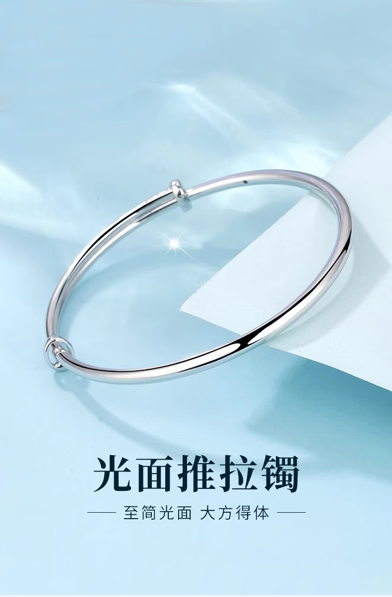Lao Fengxiang PT950 platinum bracelet for women, platinum bracelet with plain ring, glossy surface, anniversary birthday gift for girlfriend and wife, platinum glossy push-pull bracelet, about 13g