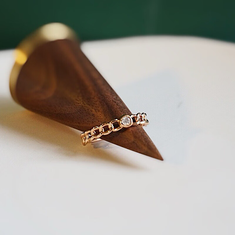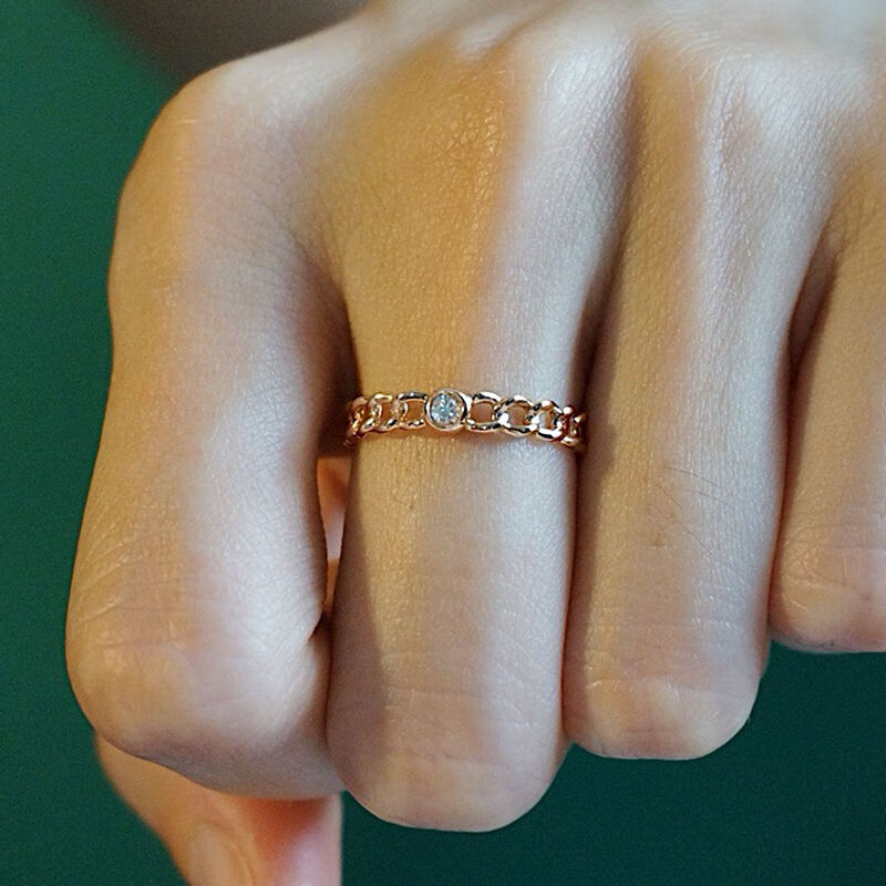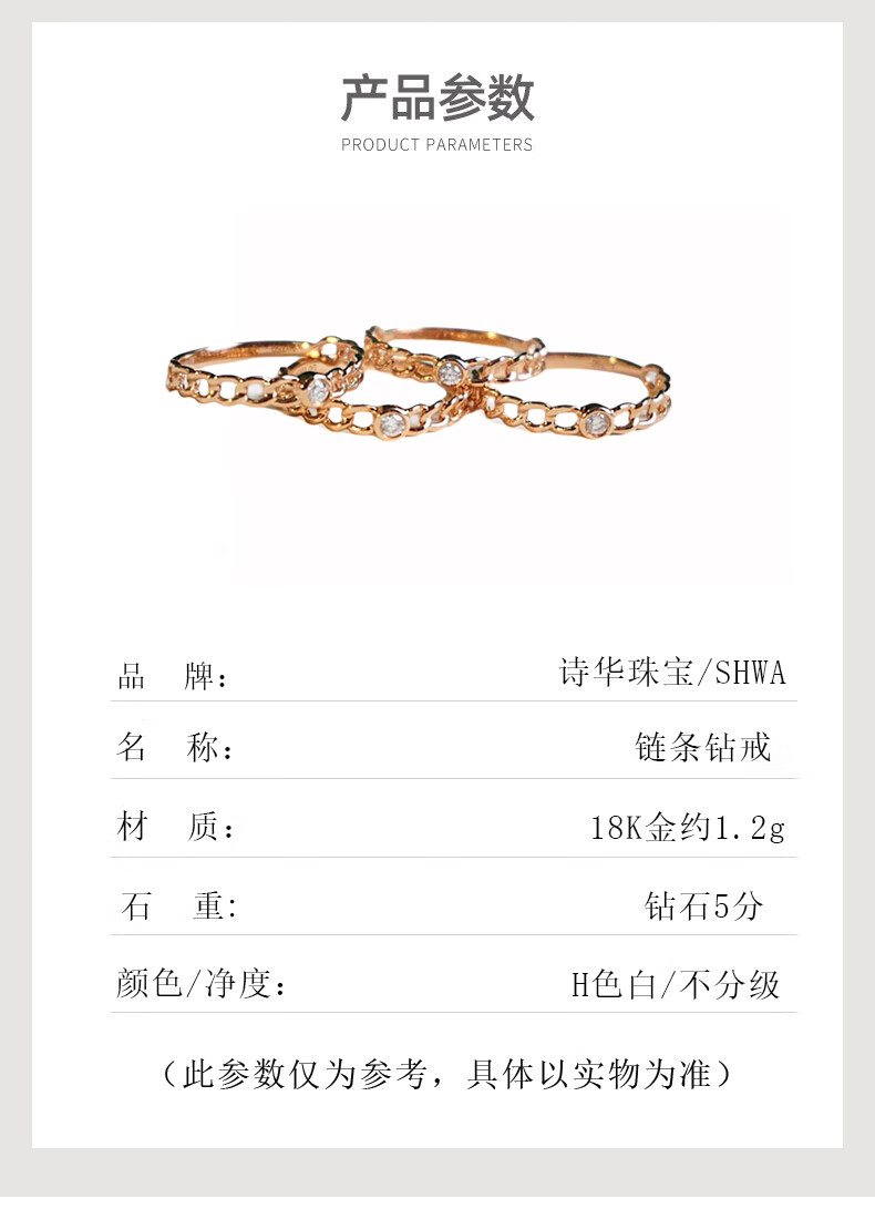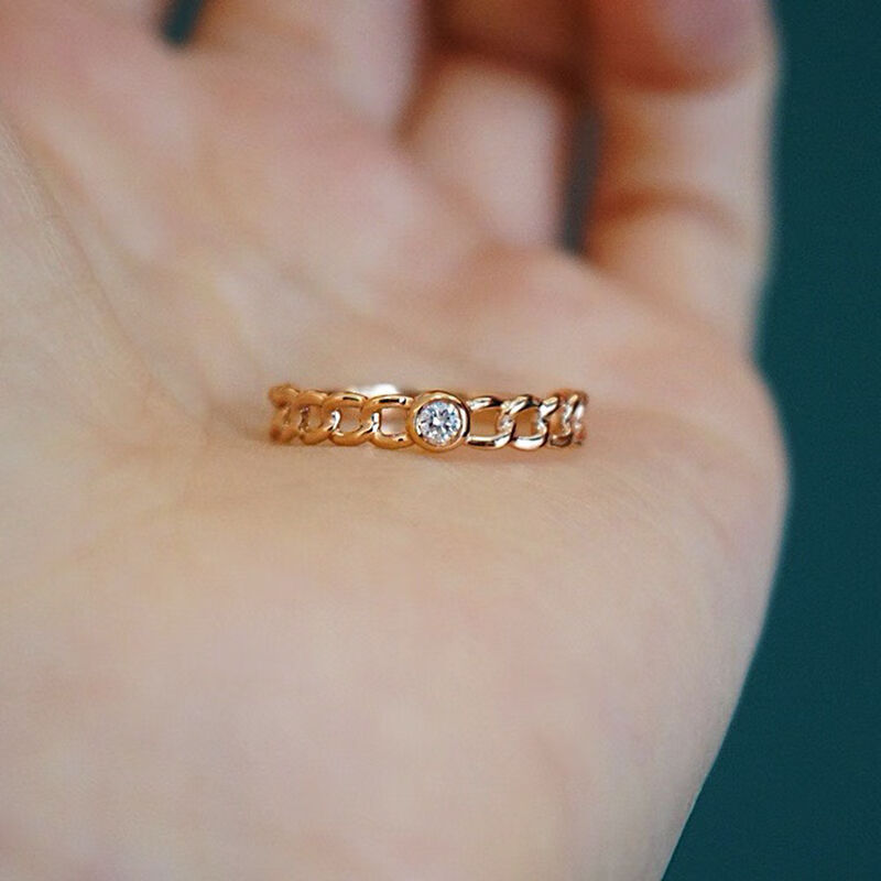 Hunter 18K gold chain diamond ring women's rose gold row ring AU750 light luxury niche design diamond ring 18K gold chain ring 5 points diamond (please place an order