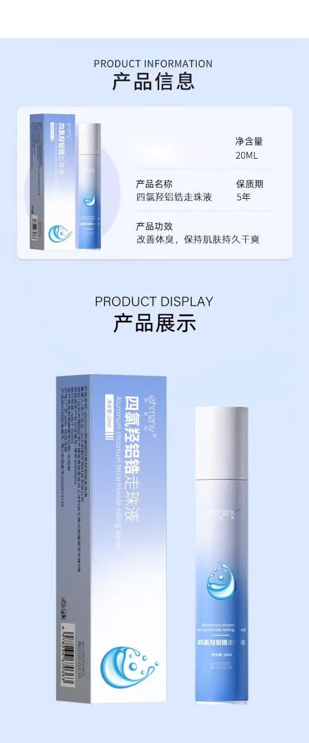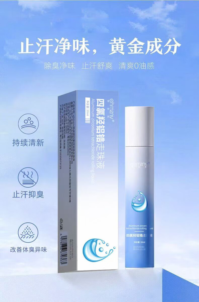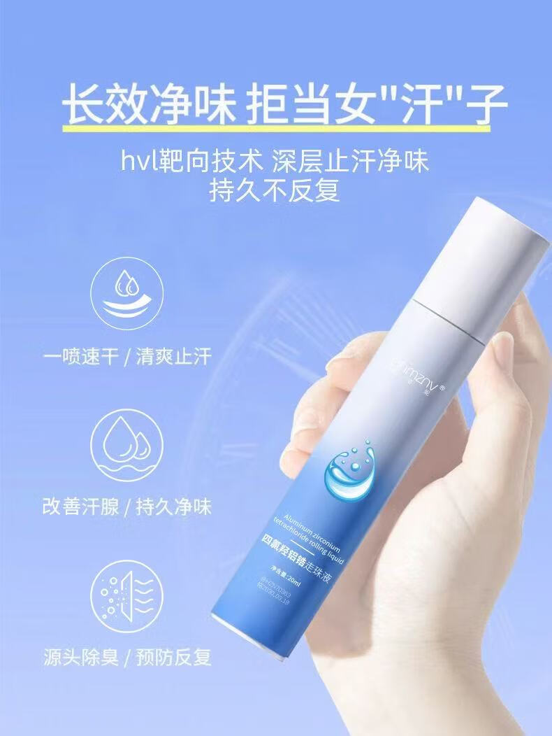 Aluminum tetrachlorohydroxyzirconium body odor spray aluminum hydroxychloride antiperspirant for sweaty hands and armpits deodorizing water for men and women only 20ml*1 bottle