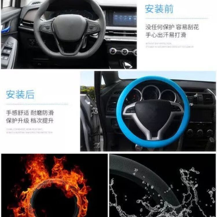 Universal silicone steering wheel cover, sports steering wheel cover, car four-season truck, men's and women's car non-slip silicone, silicone leather pattern, black