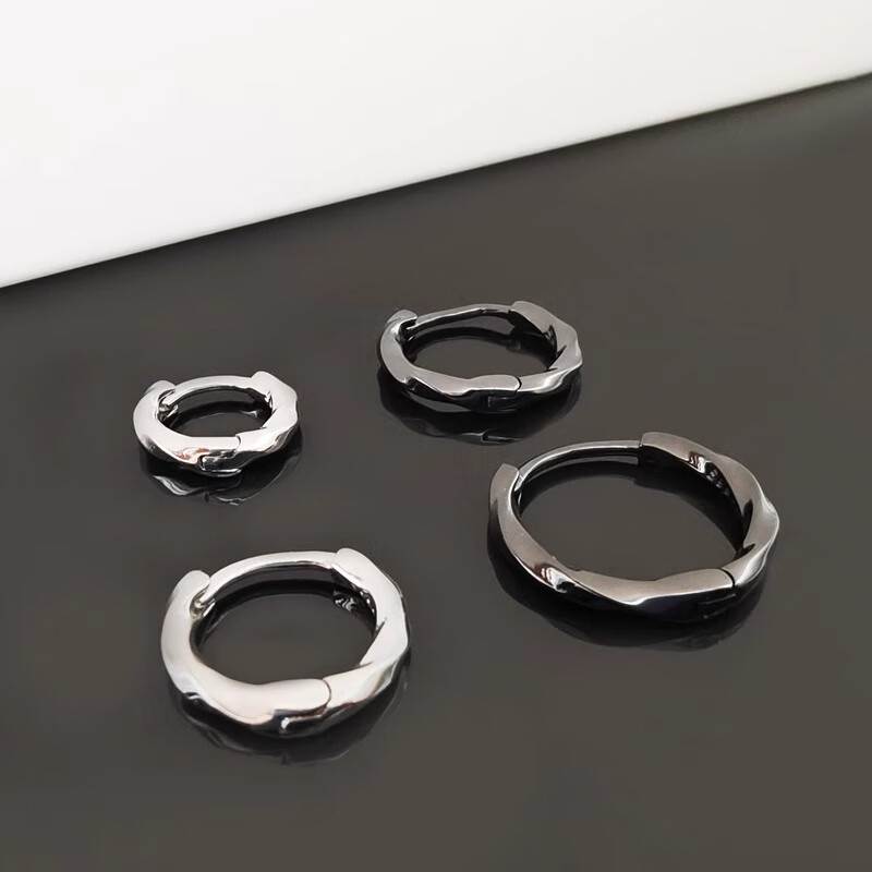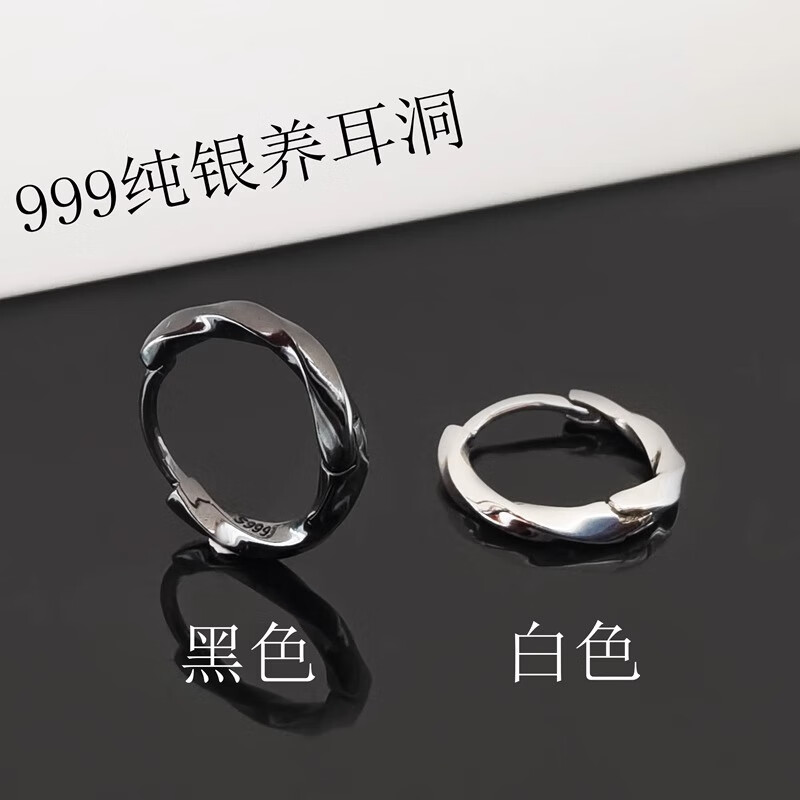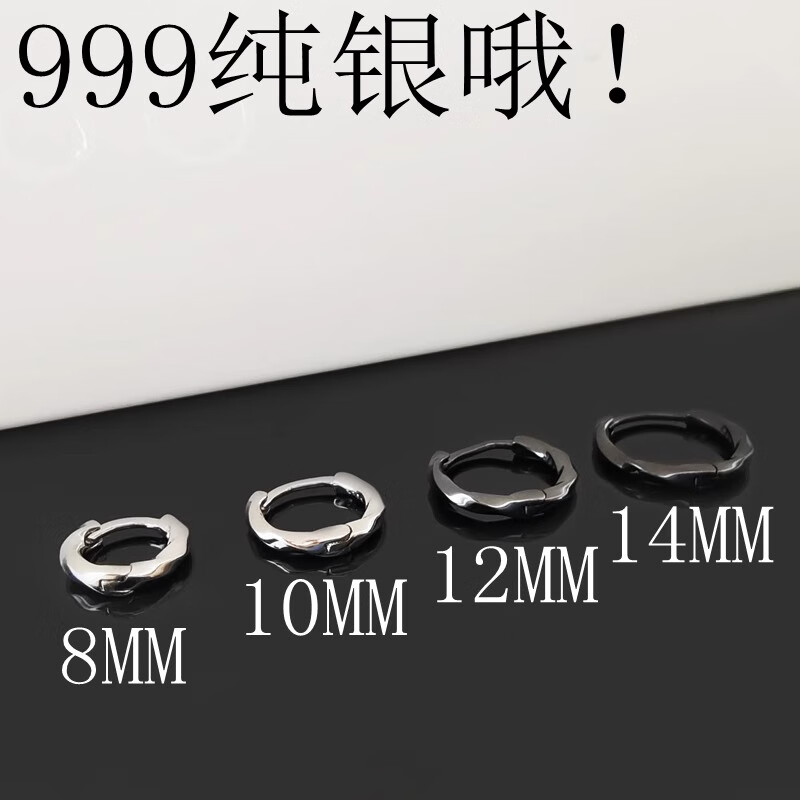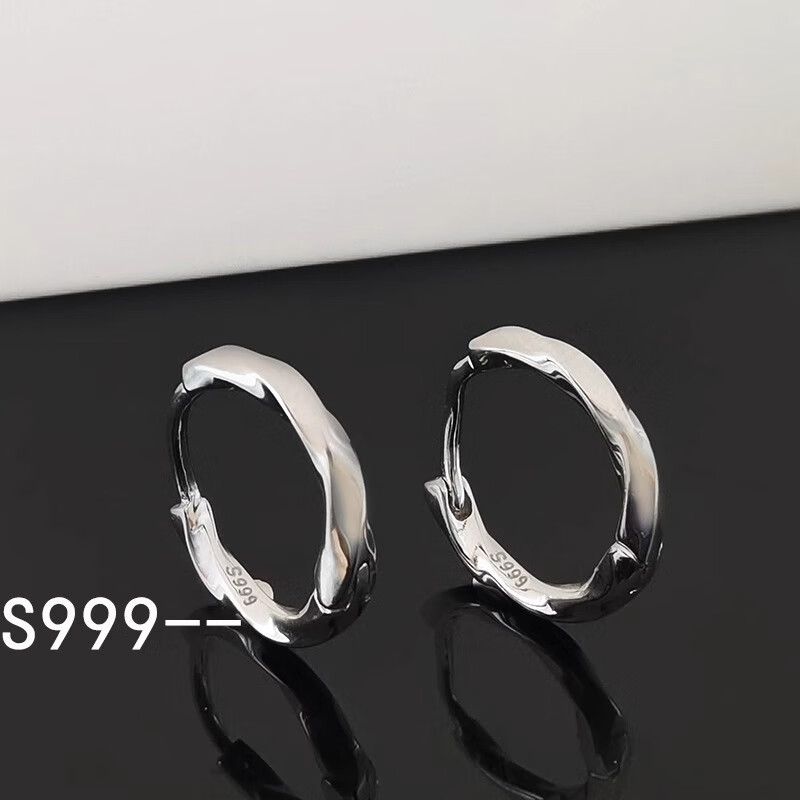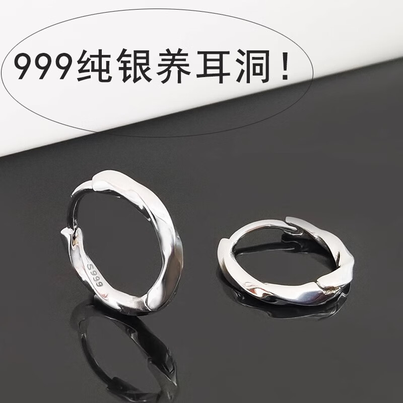 Ruanyi S999 sterling silver earrings men's ear piercing plain hoop earrings earrings 2025 new hot style trendy women's single earrings 999 sterling silver twisted earrings white (2 pieces) 10mm (gift box + certificate)
