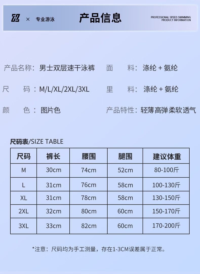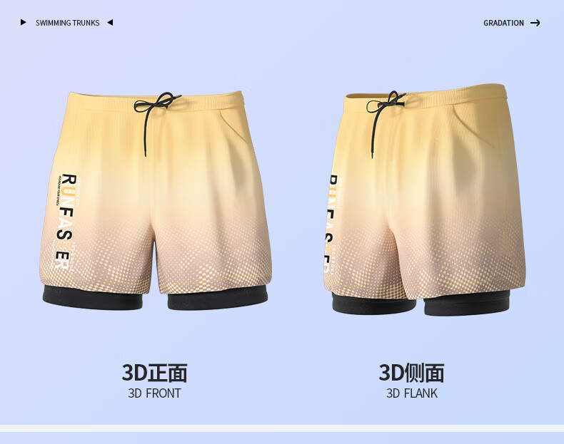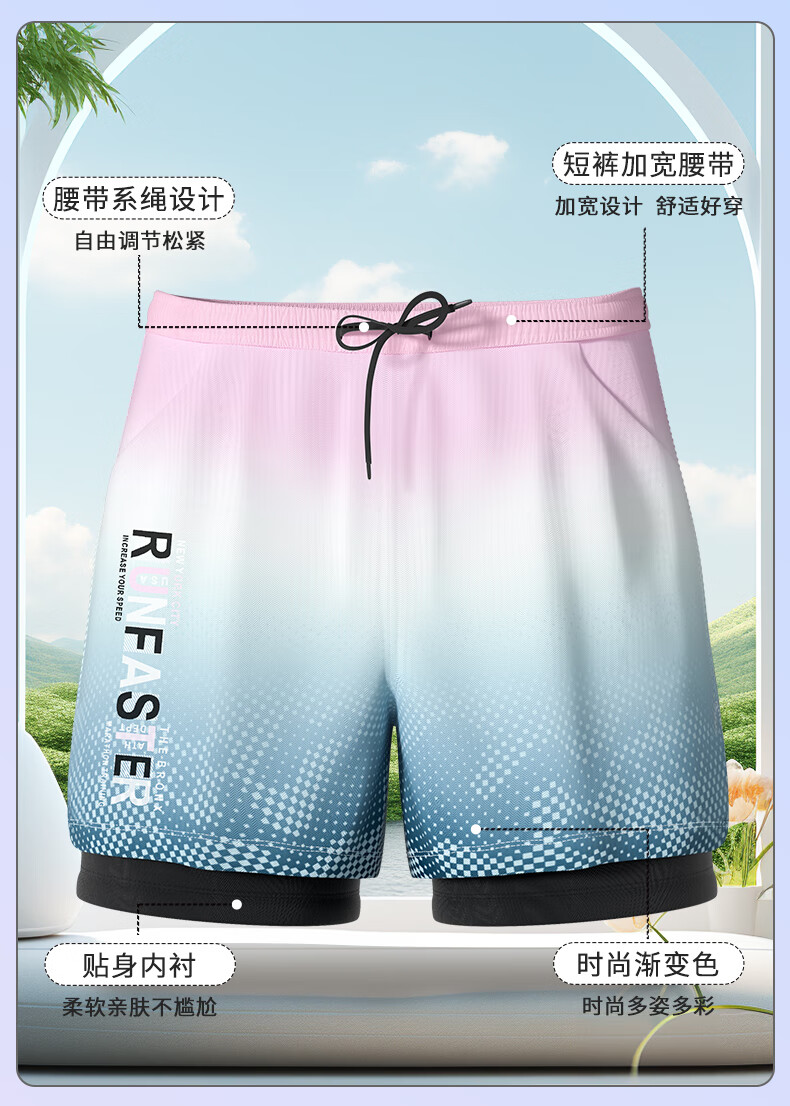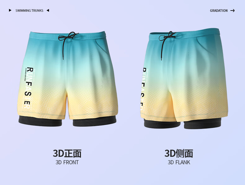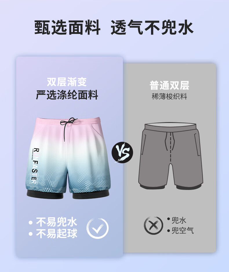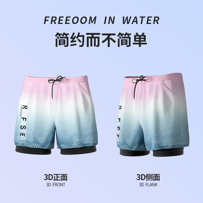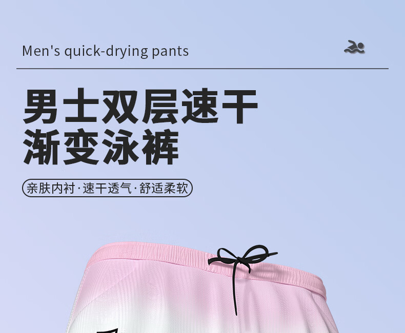 Junkiss swimming trunks, men's swimming equipment, full set of adult swimsuits, goggles, and caps, three-piece set, flat-angle double-layer hot spring suit, upgraded gradient purple, double-layer pocket style, M. Recommended weight: 80-100 Jin Jin equals 0.5 kg