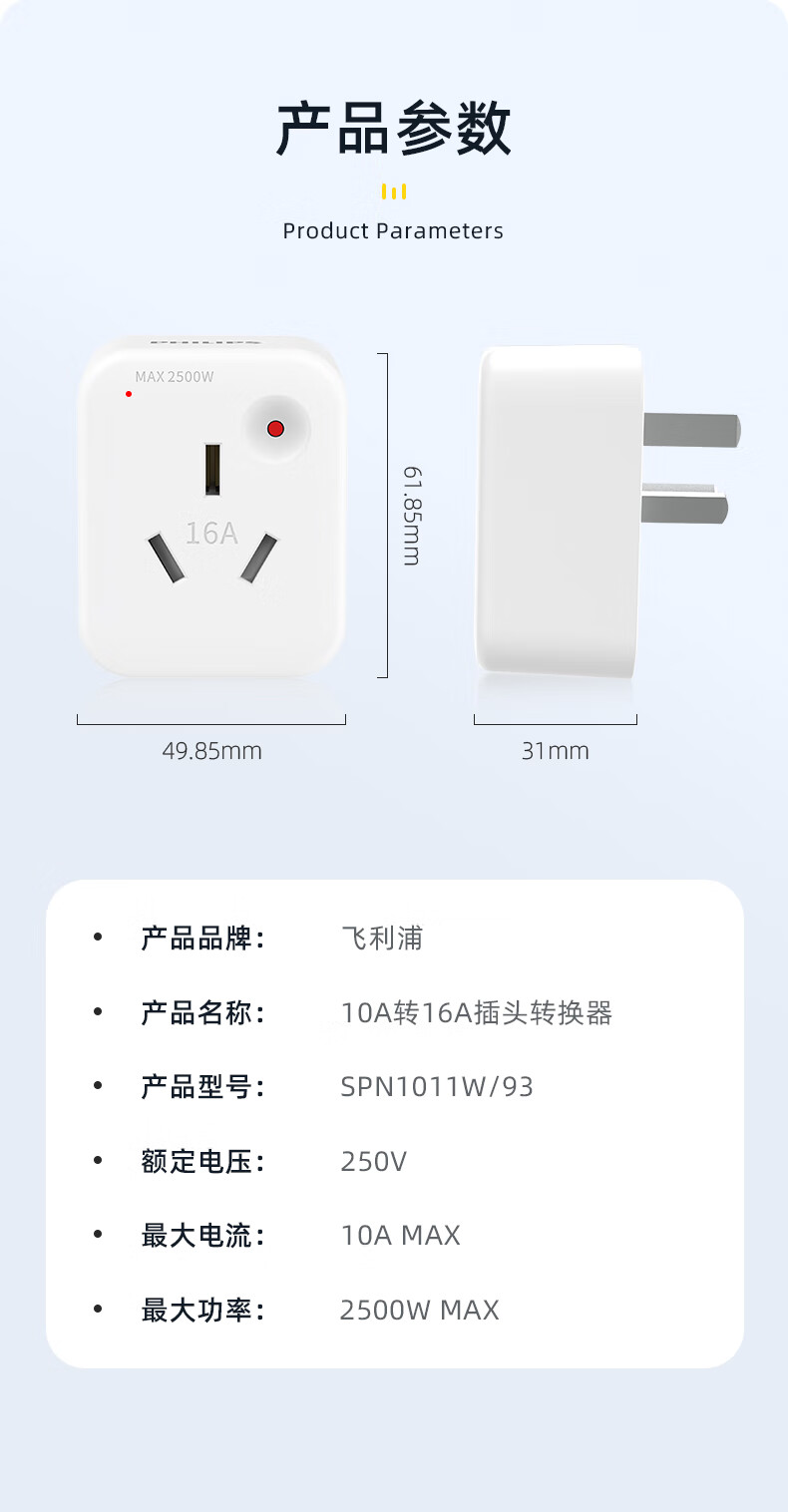 Philips 10a to 16a socket air conditioning converter conversion plug 16 amp adapter water heater dedicated 250v conversion socket ten amp to 16 amp plug 10a to 16a socket