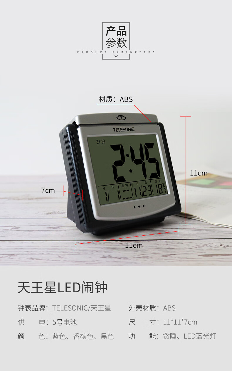 Uranus new product electronic alarm clock smart clock multifunctional bedside clock luminous clock wake-up artifact black 4 inches