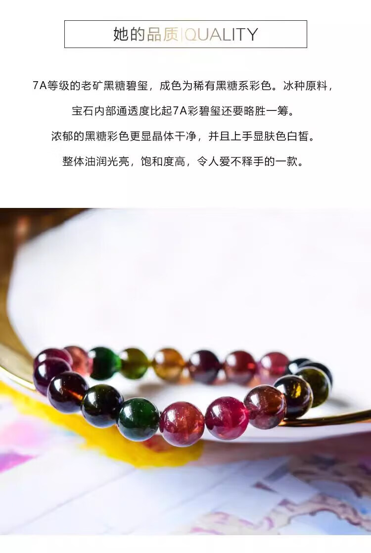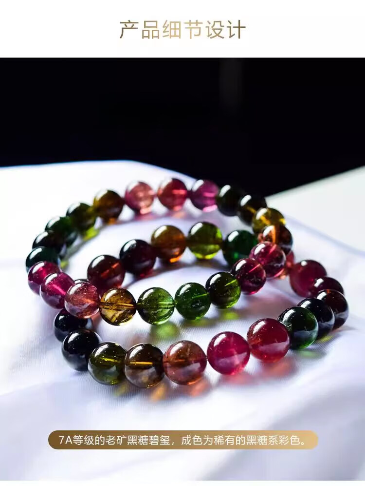 Eternal Symbol Brand Natural Crystal Brazilian 7A Black Rose Old Mine Brown Sugar Tourmaline Bracelet Women's Gift Jewelry Grade Approximately 8mm Brown Sugar Tourmaline