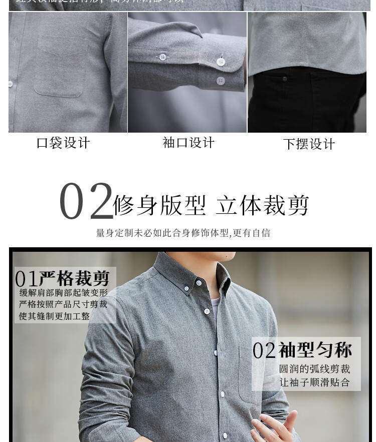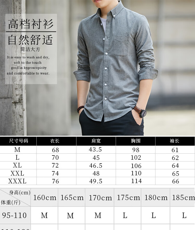 DICIFY Guangdong Puning shirt men's long-sleeved iron-free Oxford casual shirt Korean version gray L