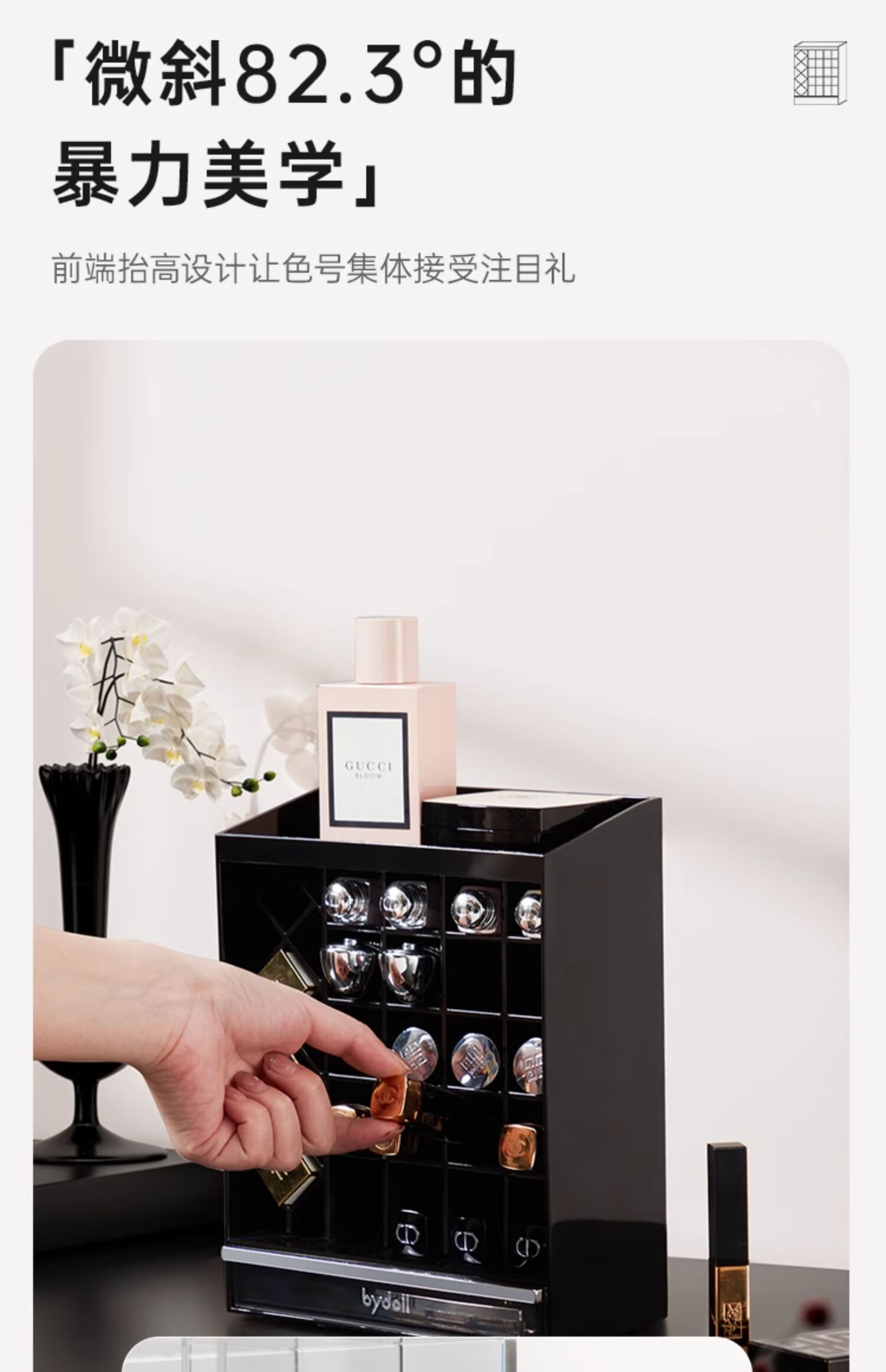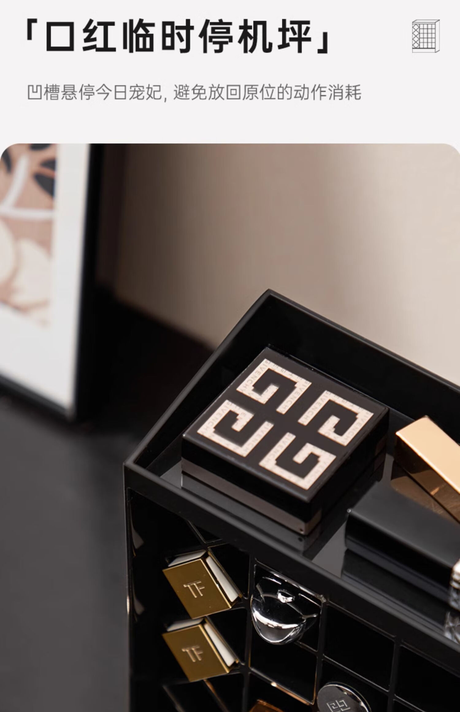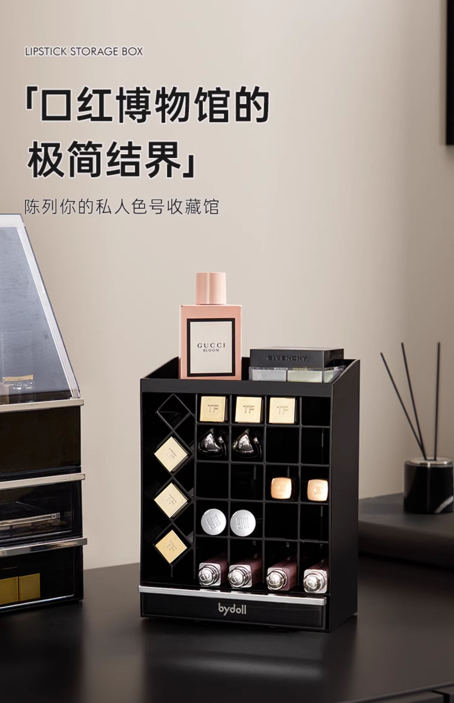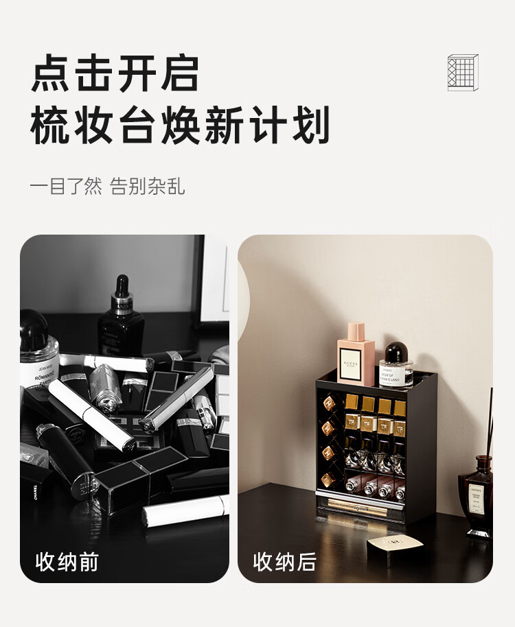 Lipstick storage box desktop high-end cosmetics powder puff lip glaze lip balm dressing table compartment display stand for children lipstick storage box 24 compartments with drawer at the bottom