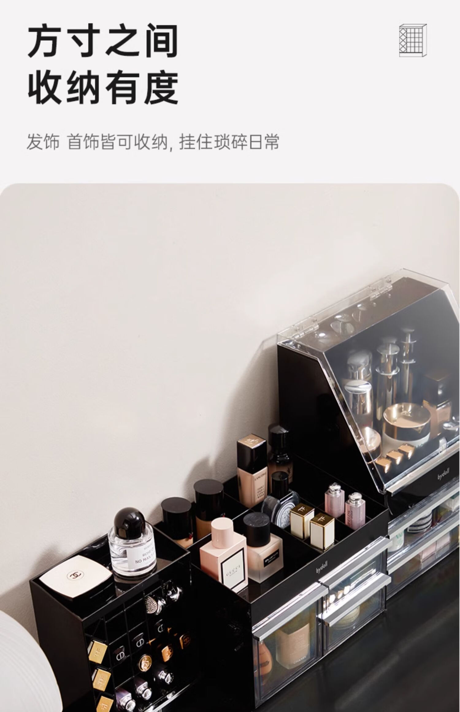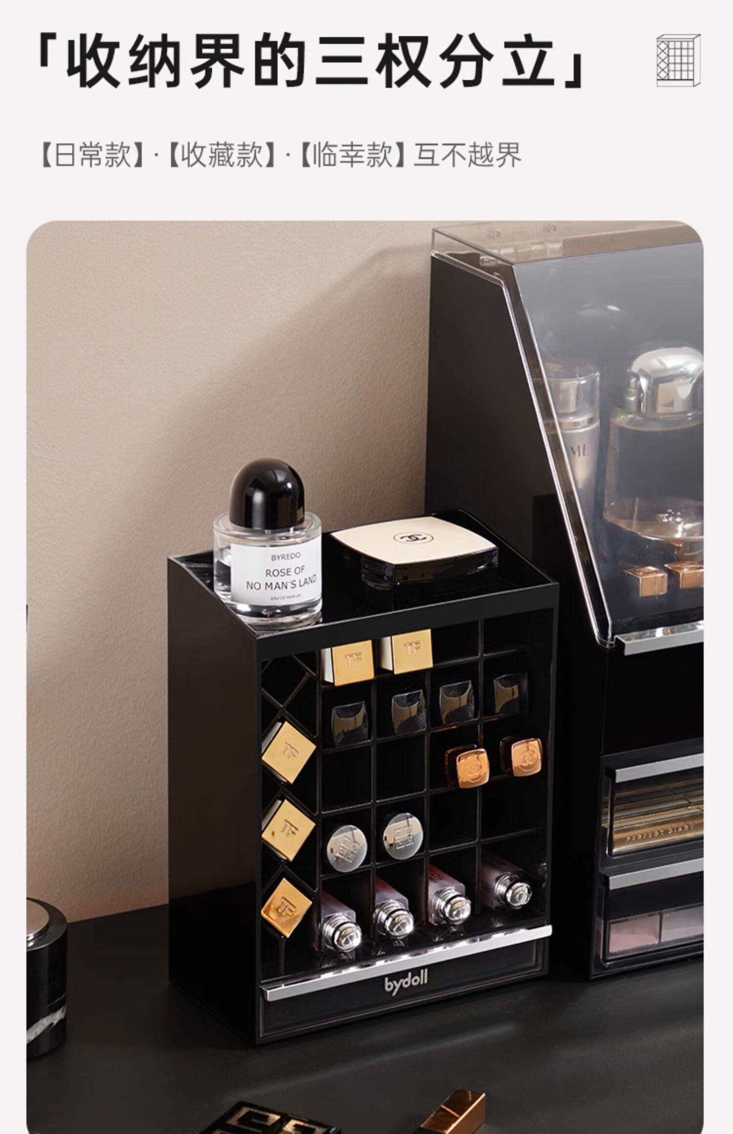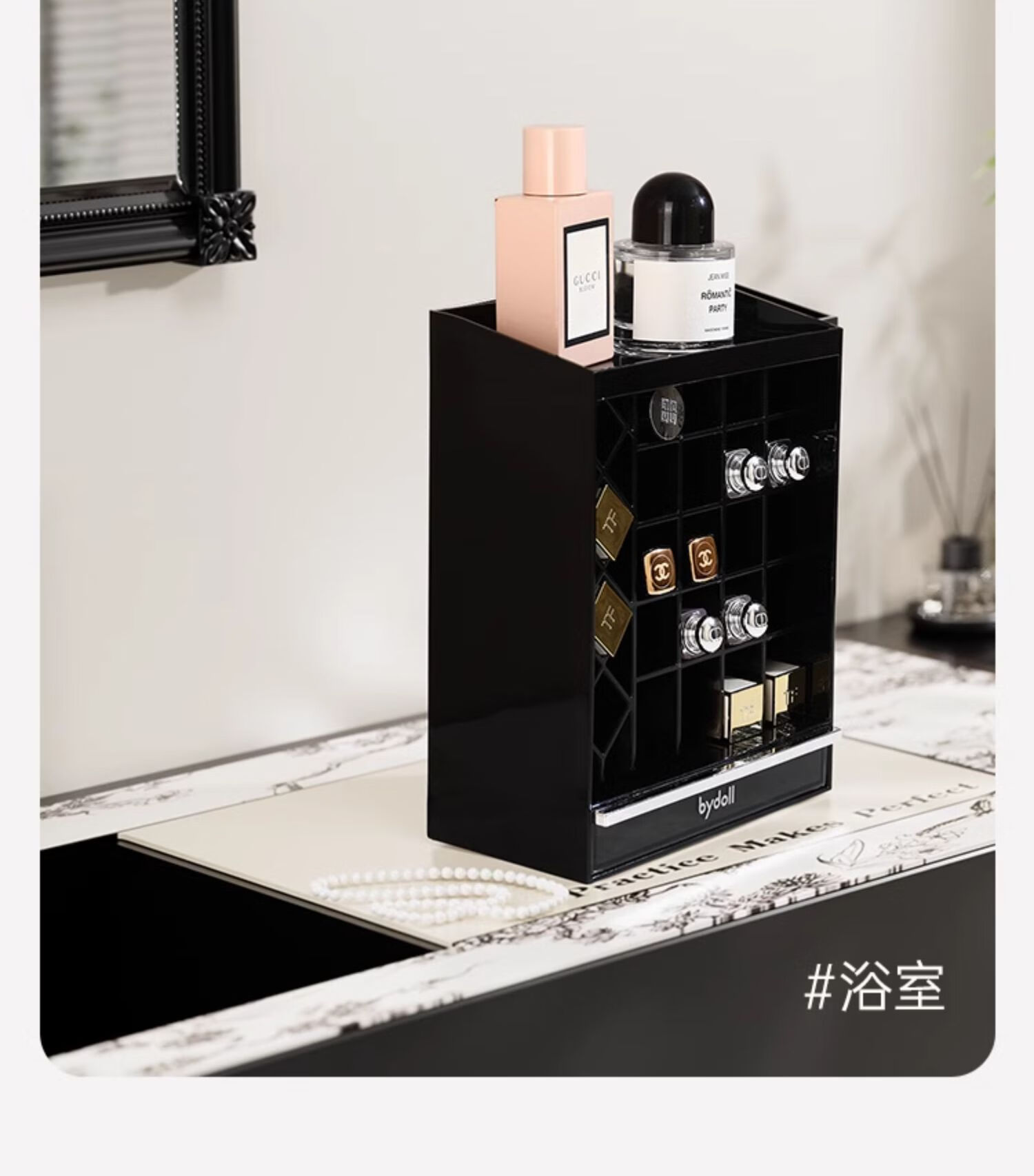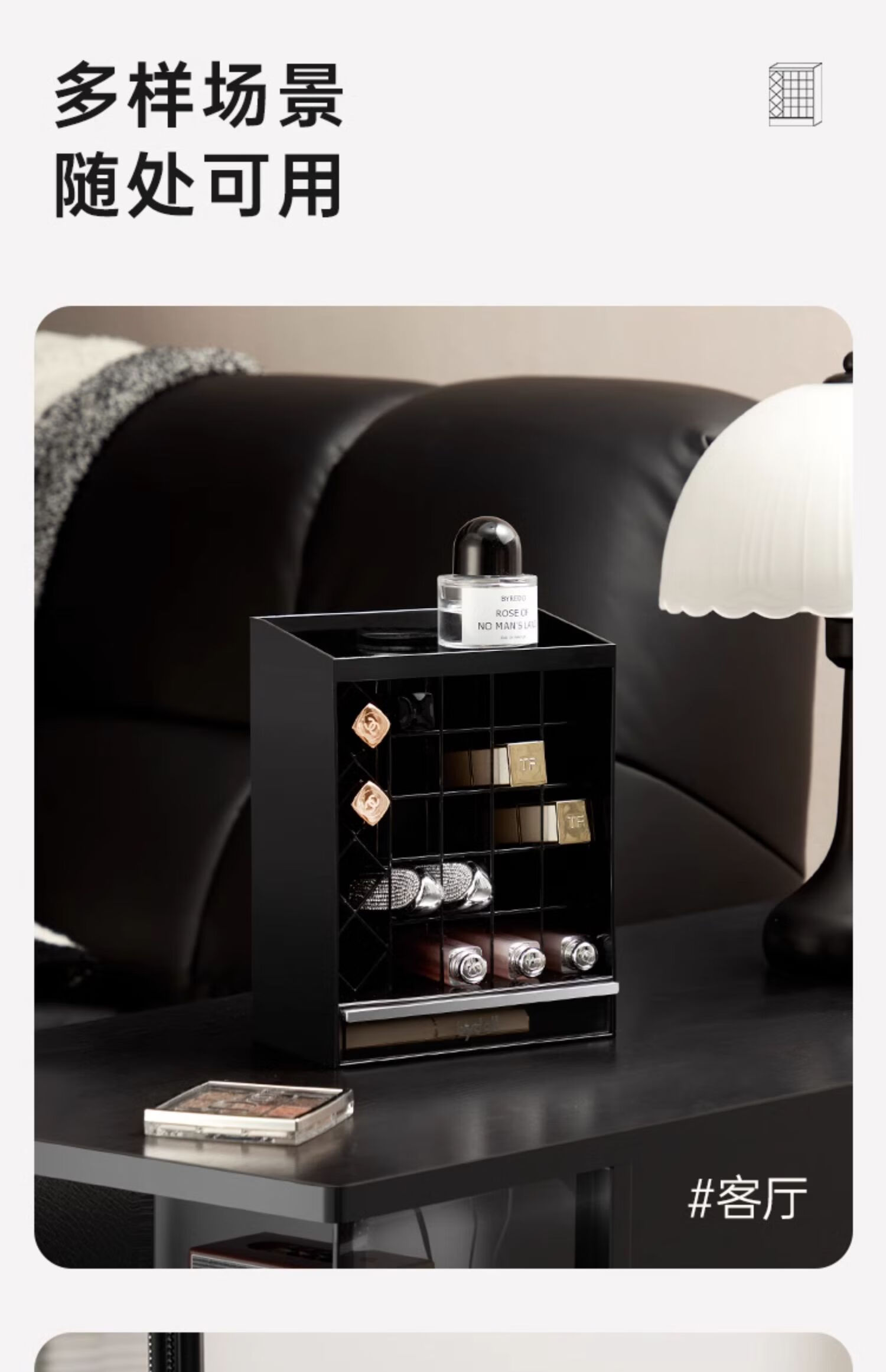 Lipstick storage box desktop high-end cosmetics powder puff lip glaze lip balm dressing table compartment display stand for children lipstick storage box 24 compartments with drawer at the bottom