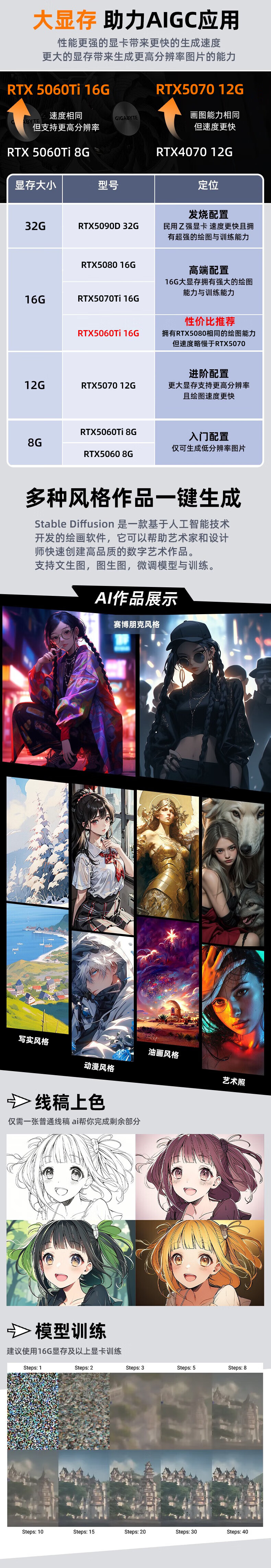 Gigabyte i5/RTX5060Ti 16G large memory AI drawing Stable Diffusion design rendering model training neural network deep learning desktop computer host three i5 14600KF丨5060Ti 16G