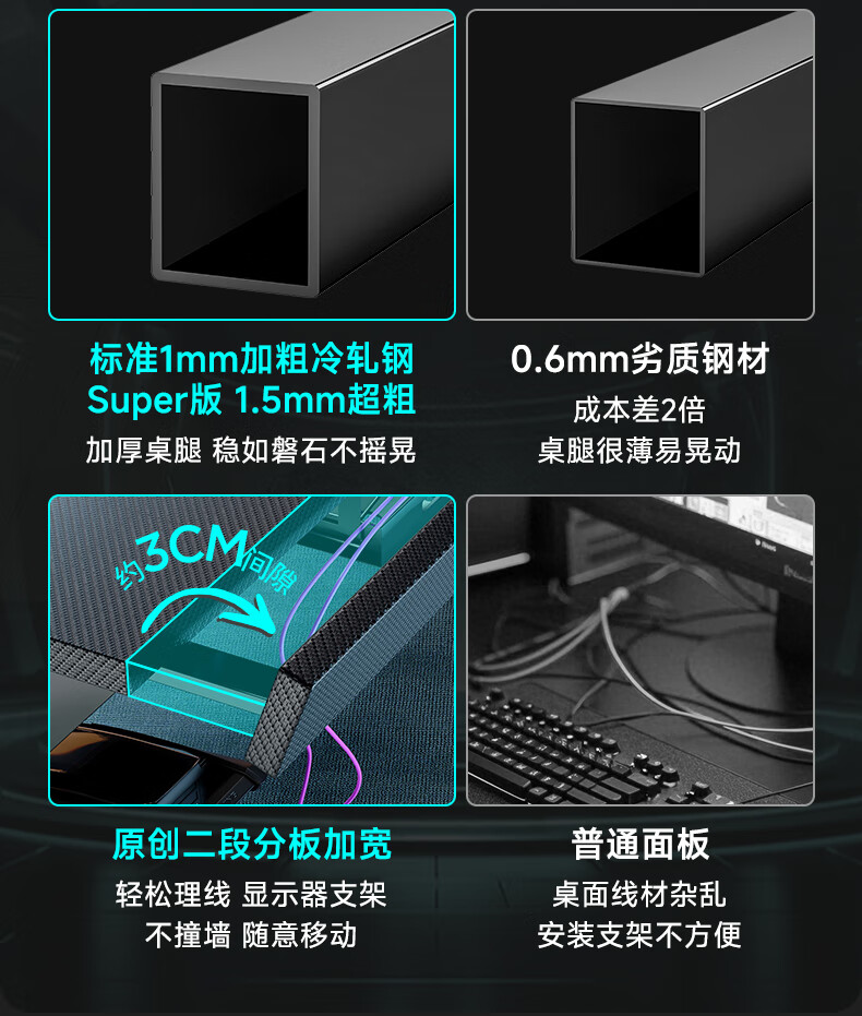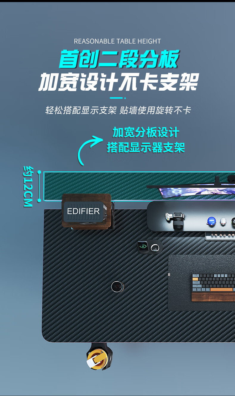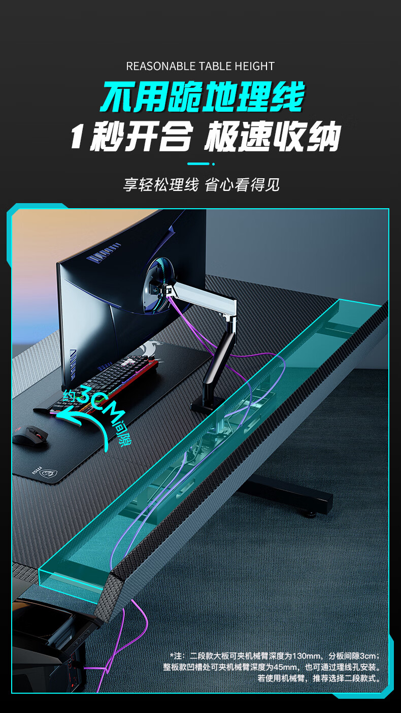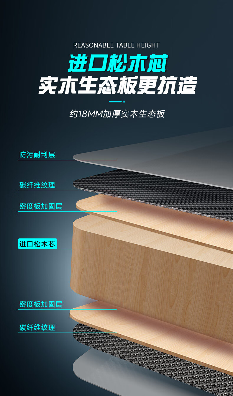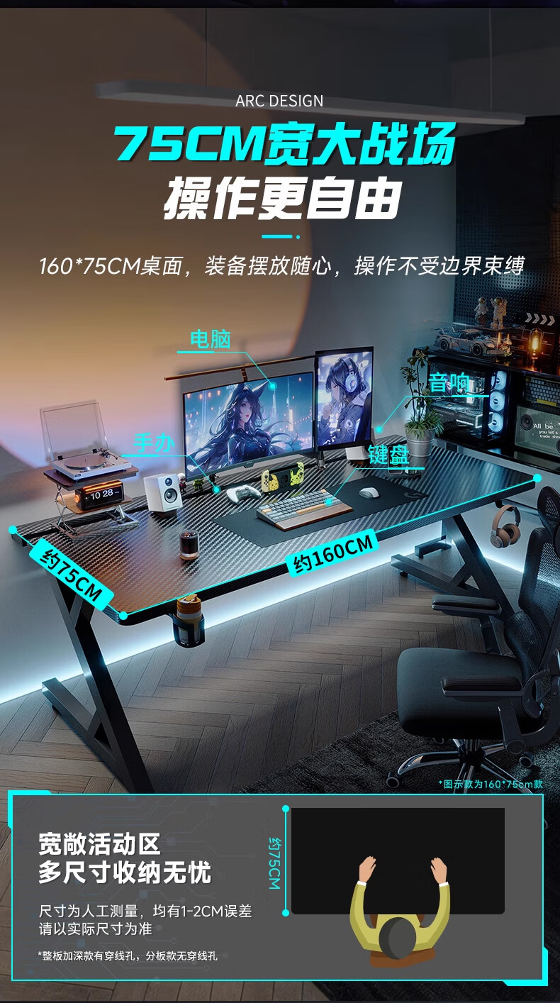 Jichuang AGKey-Titanium Ji S3 gaming desk desktop computer table solid wood home desk can be equipped with mechanical arm carbon fiber S3 black carbon fiber pattern ENF grade environmental protection 160*75*75cm two-section split board