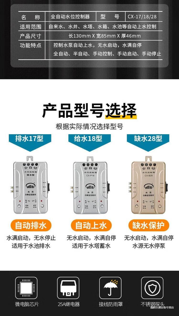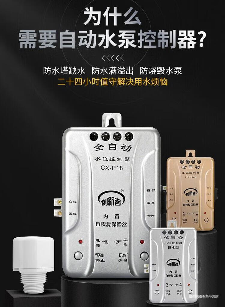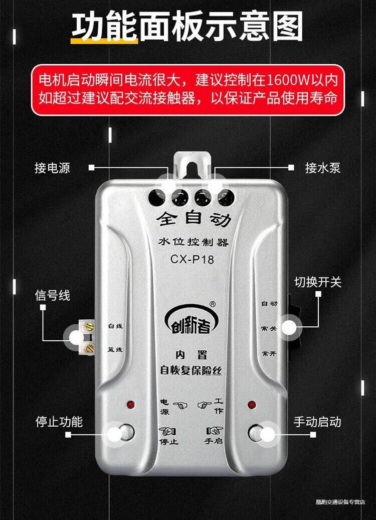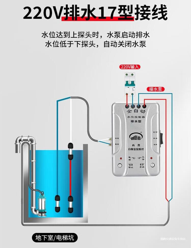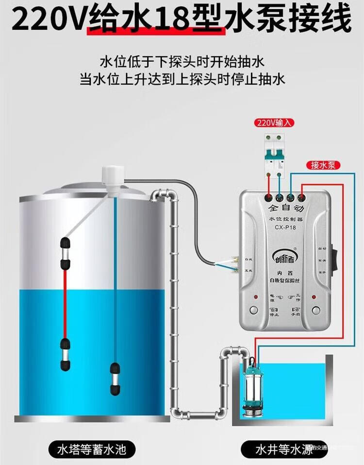 Automatic pumping sensor drainage controller basement water pump water tank pool switch water level liquid level probe electronic induction 18 water type + 1 meter probe + waterproof cover extension wiring 50 meters