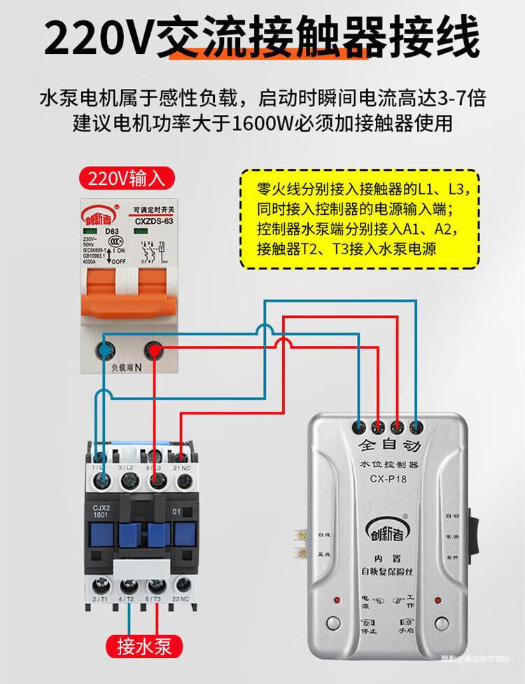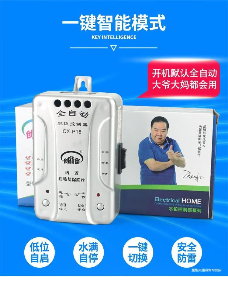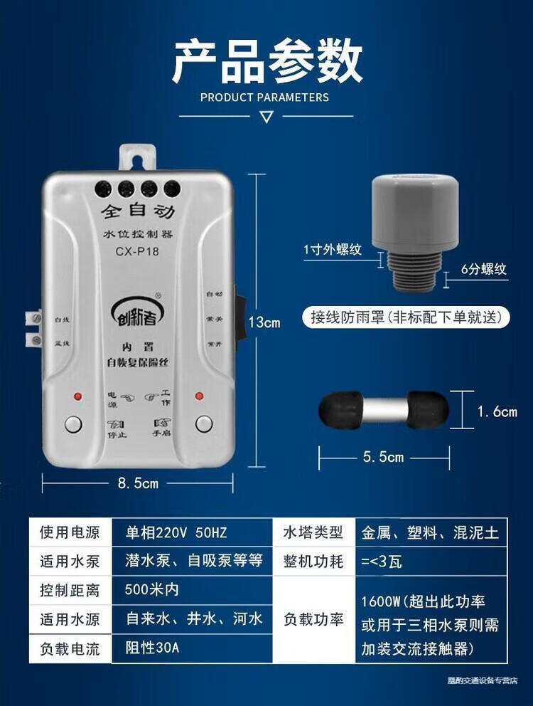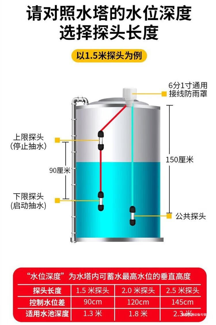 Automatic pumping sensor drainage controller basement water pump water tank pool switch water level liquid level probe electronic induction 18 water type + 1 meter probe + waterproof cover extension wiring 50 meters