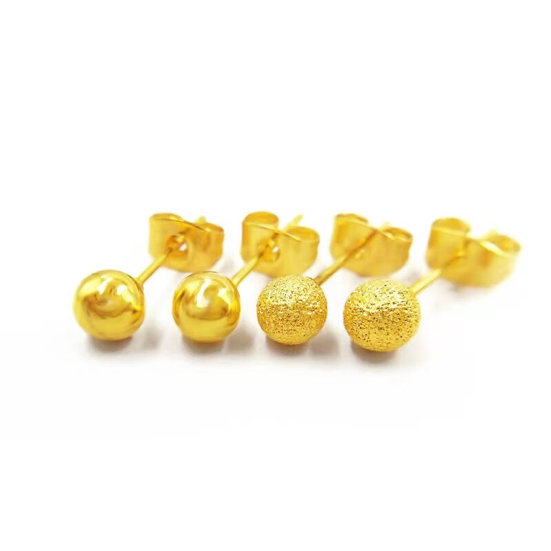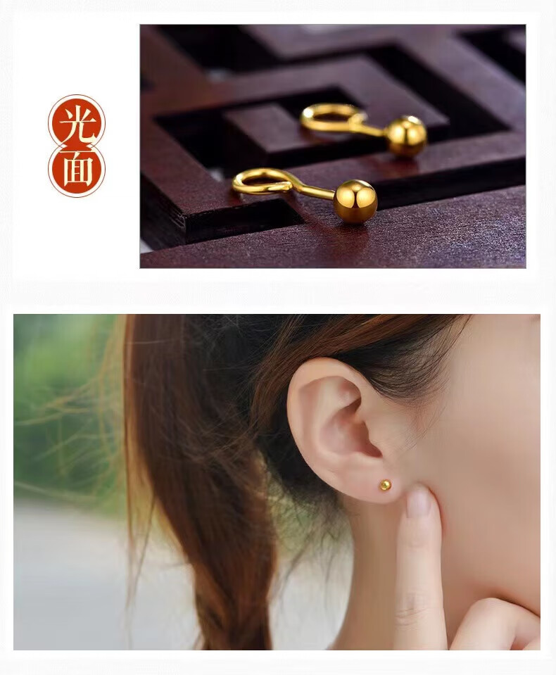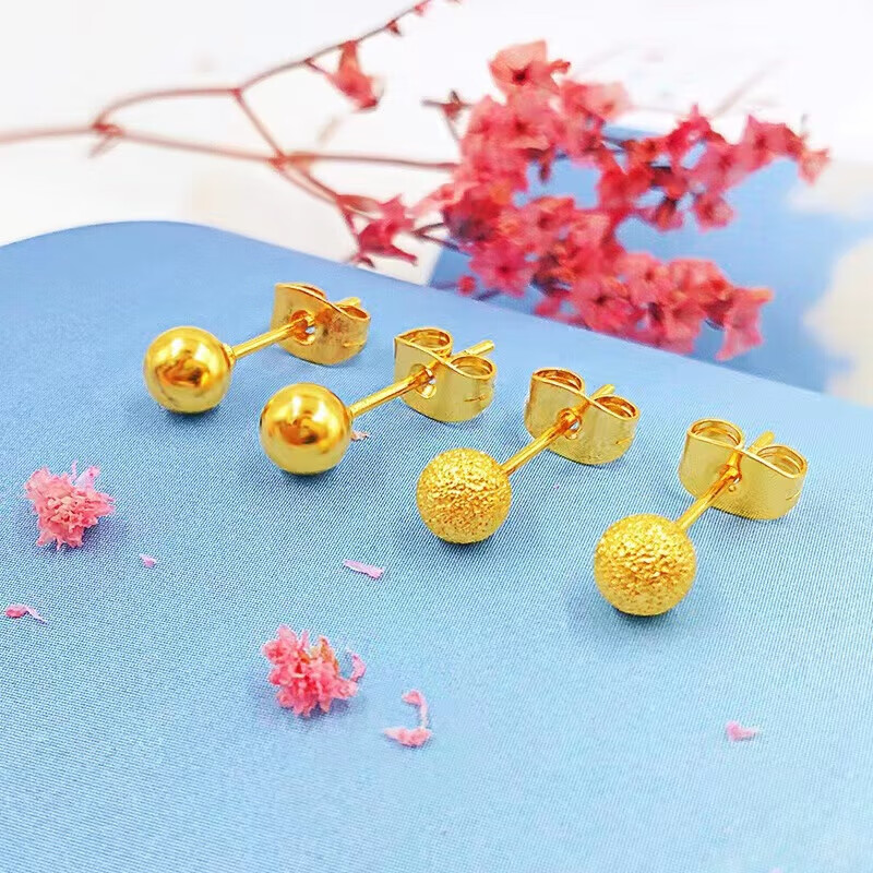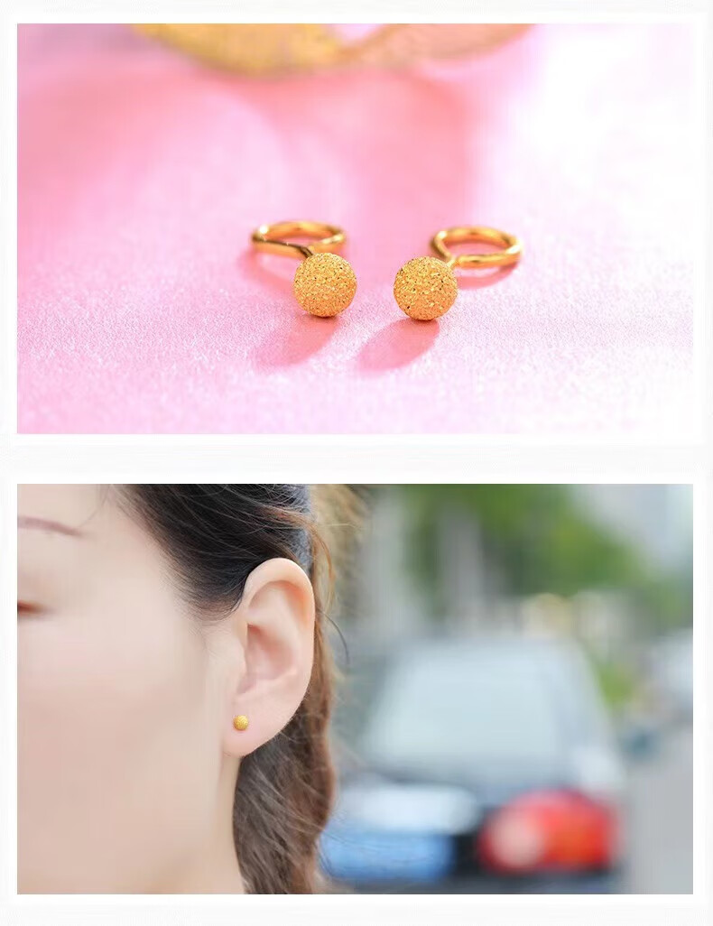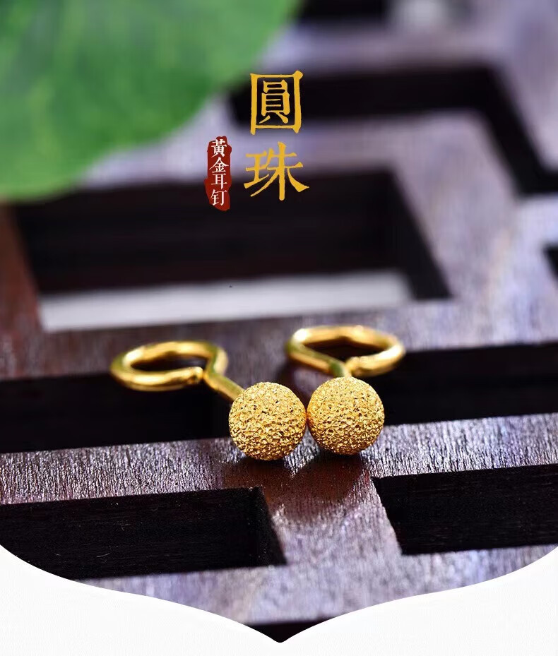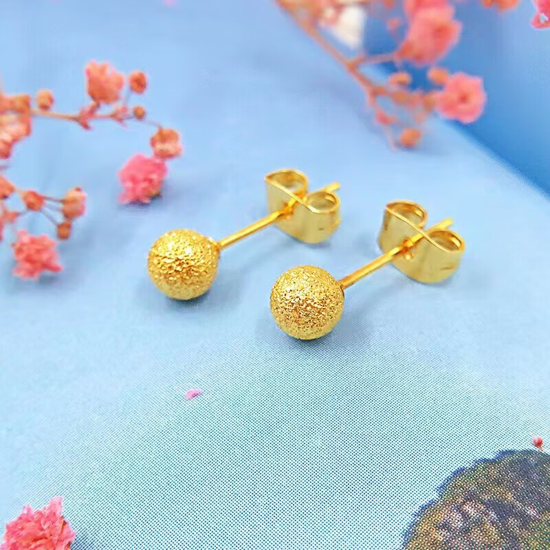 RSRDDY Old Phoenix 999 ear studs and ear sticks for women, plated earrings, small ear studs, plated frosted round bead stars, 18k gold, straight needle frosted beads + Song Xiao love 2g
