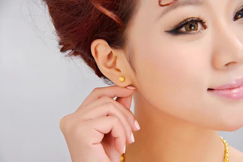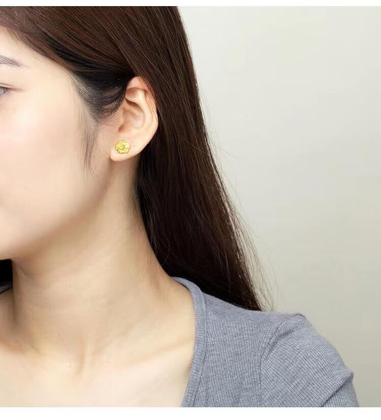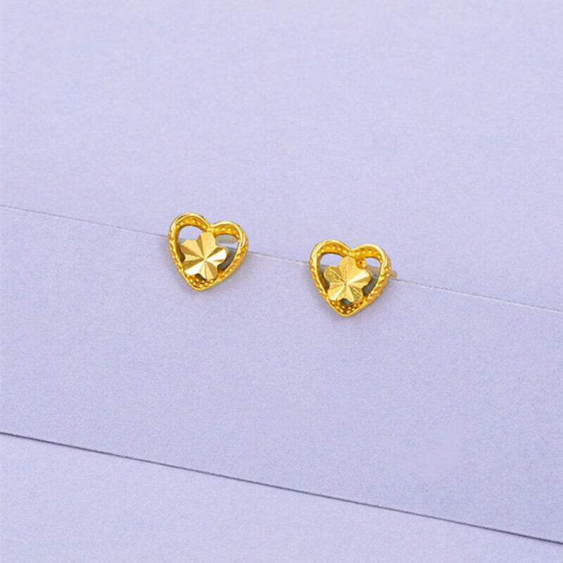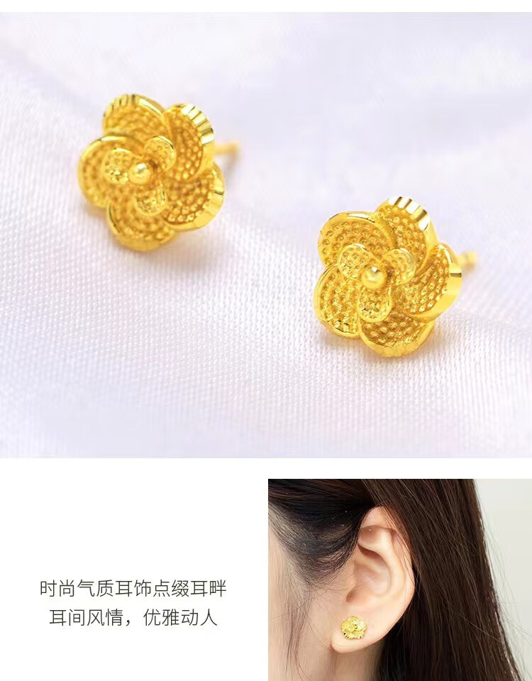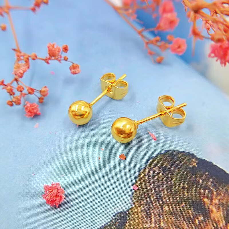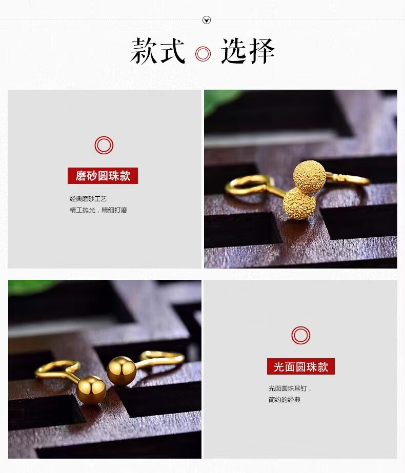 RSRDDY Old Phoenix 999 ear studs and ear sticks for women, plated earrings, small ear studs, plated frosted round bead stars, 18k gold, straight needle frosted beads + Song Xiao love 2g