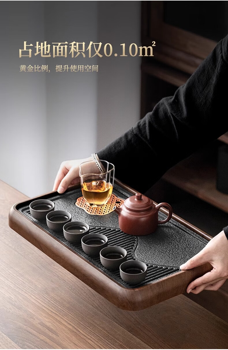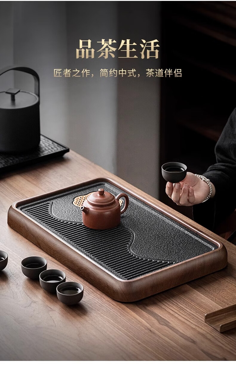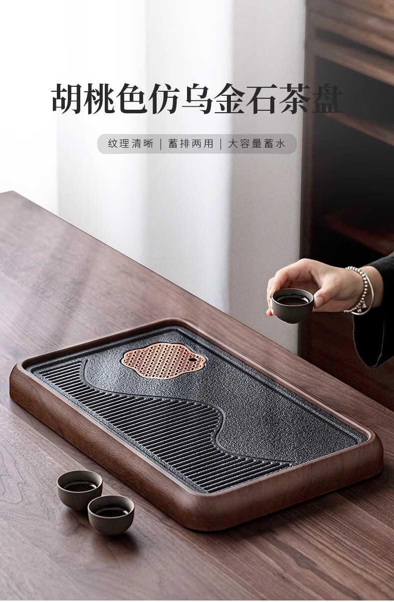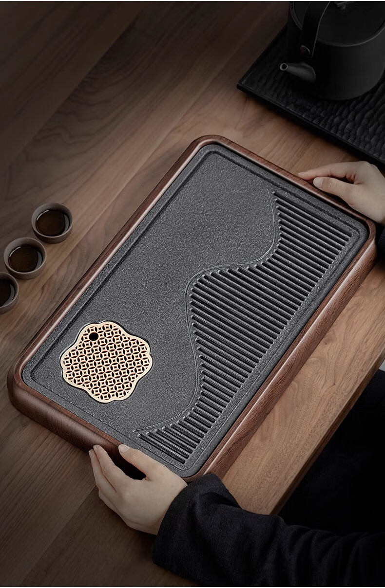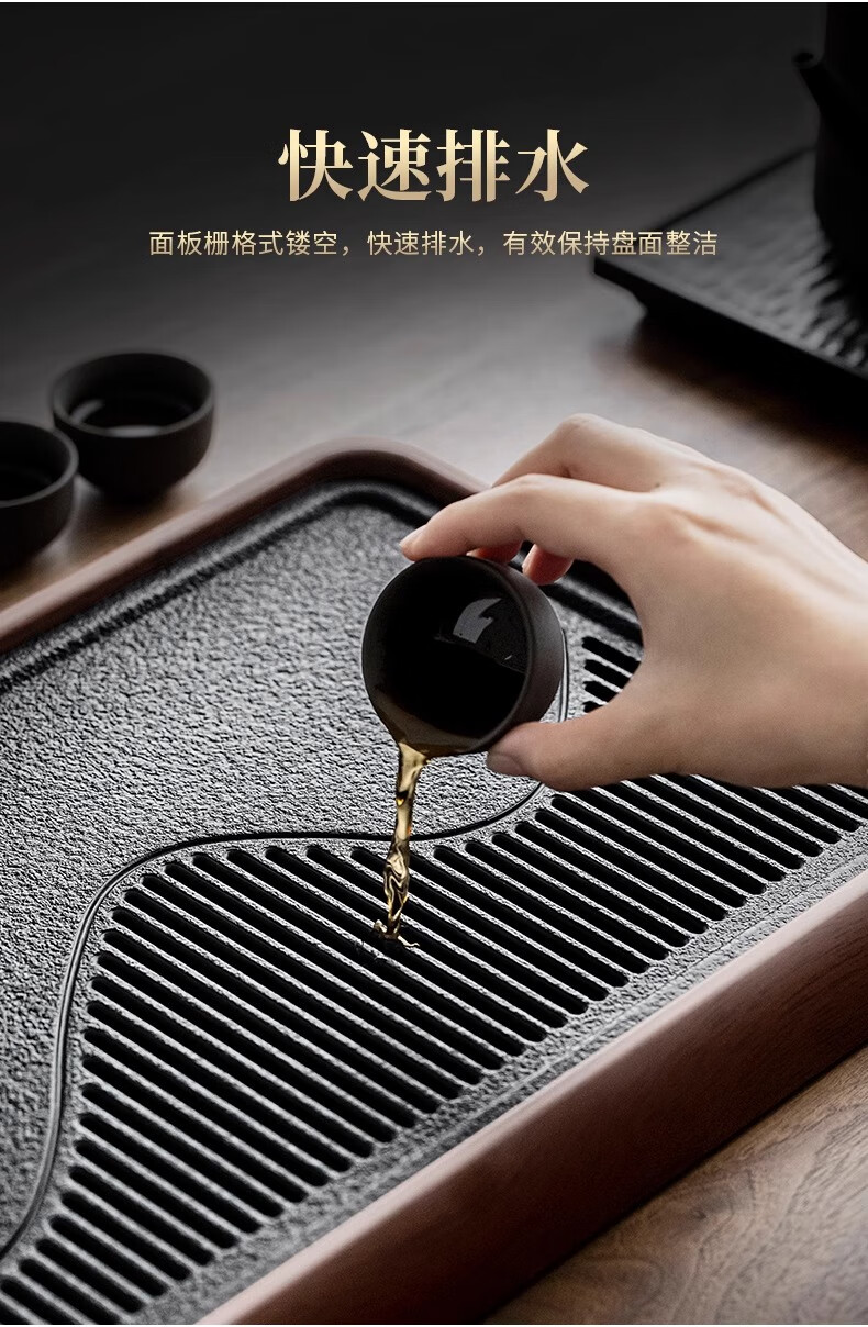 Tea tray for home use 2025 new imitation black gold stone office small tea set tea set drain dry tea tea tray medium long rhyme tea tray 45x28cm
