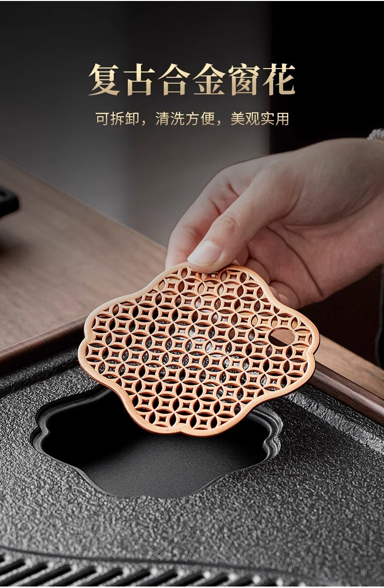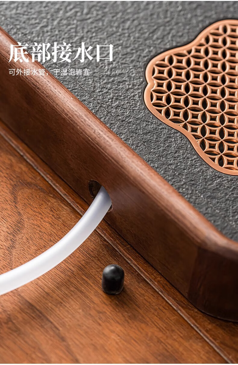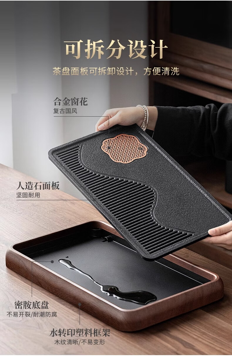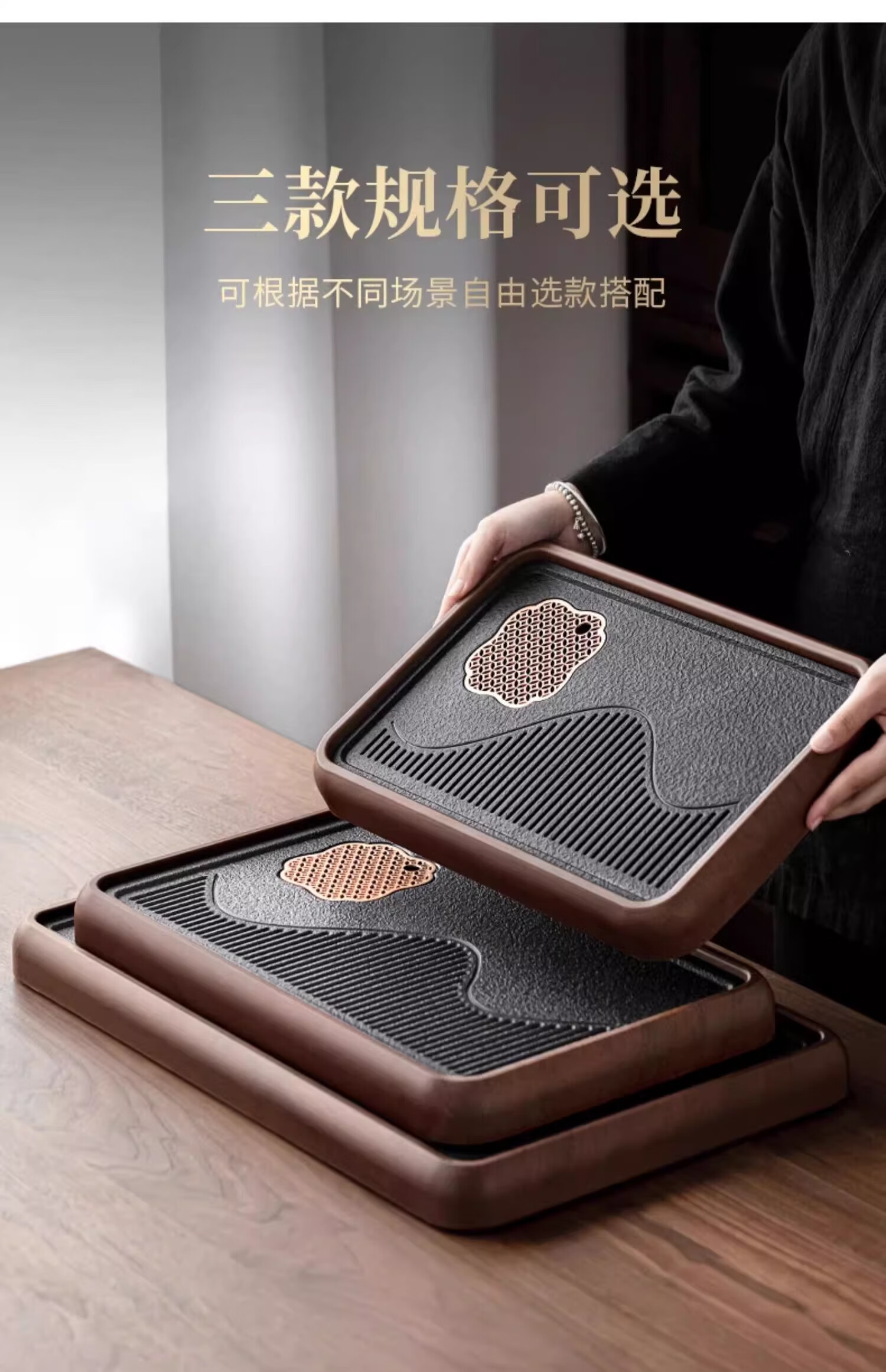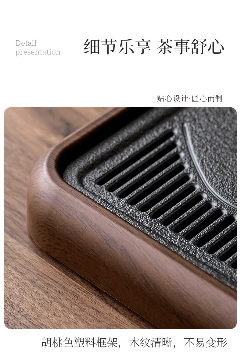 Tea tray for home use 2025 new imitation black gold stone office small tea set tea set drain dry tea tea tray medium long rhyme tea tray 45x28cm