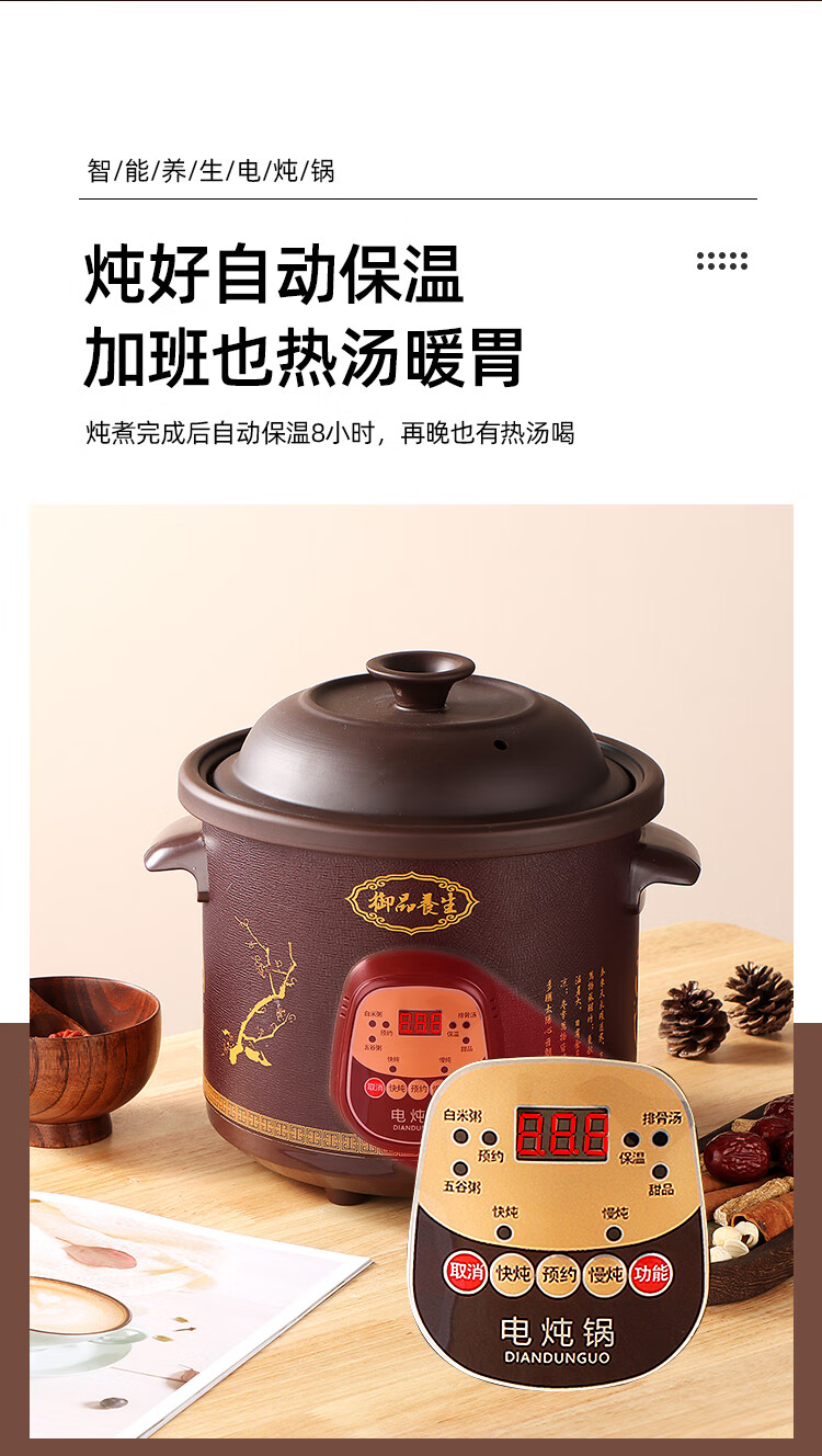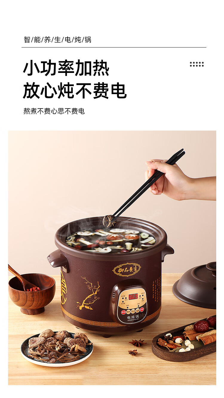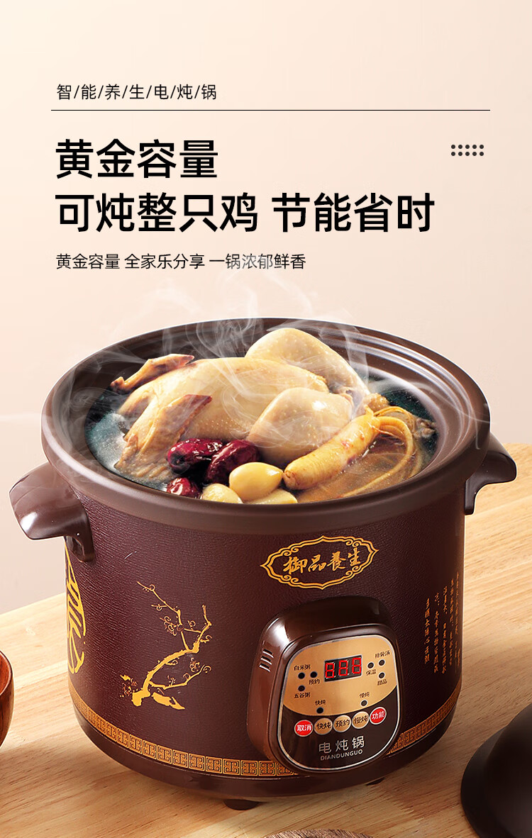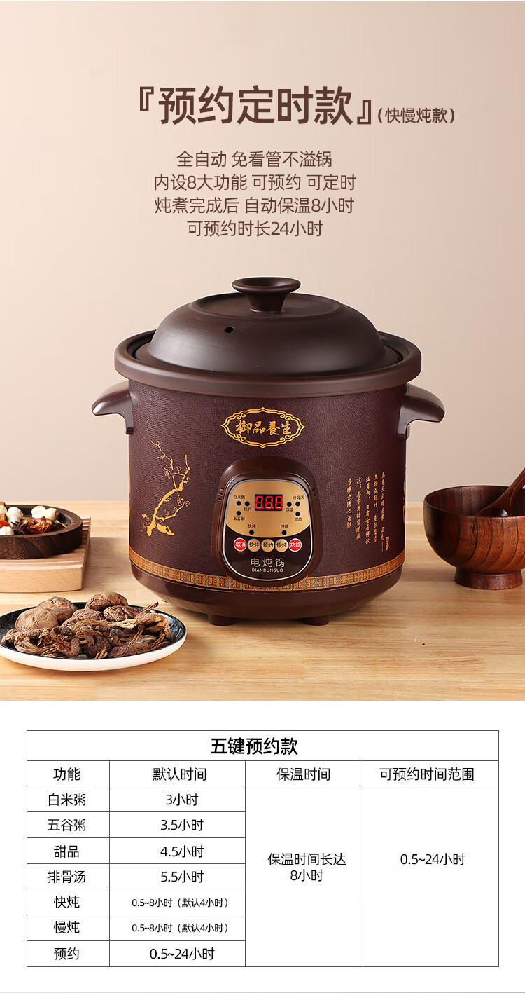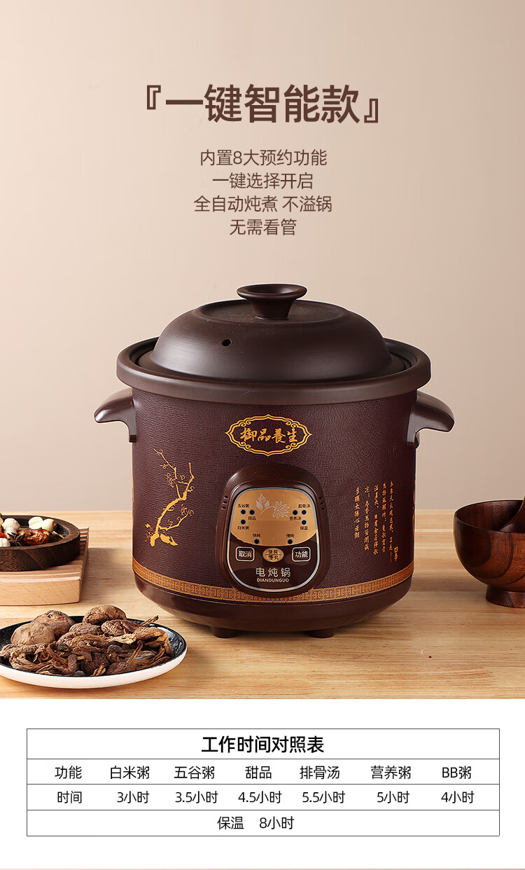 Electric stew pot, steamer, electric cooking pot, stew pot, casserole pot, stew and steam, all-in-one food supplement pot, stew soup cup, electric stew pot, electric casserole pot, soup pot, stew pot, water-proof porridge, multi-function, brown 6L smart reservation model