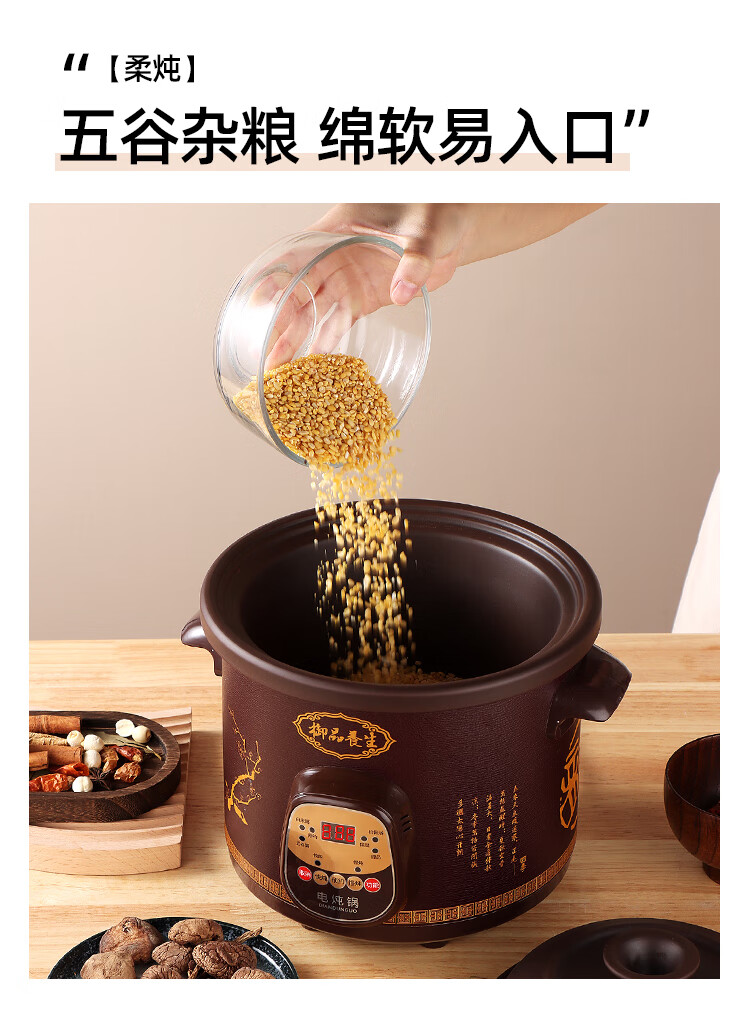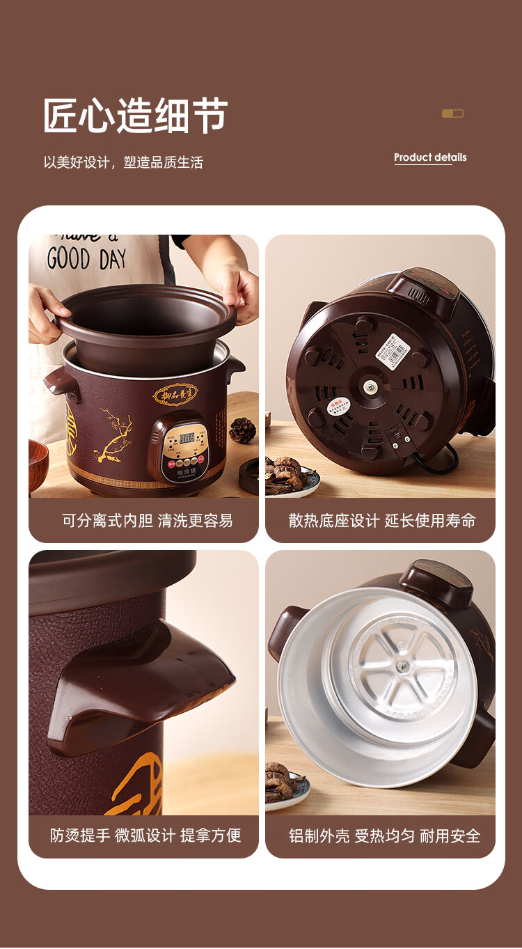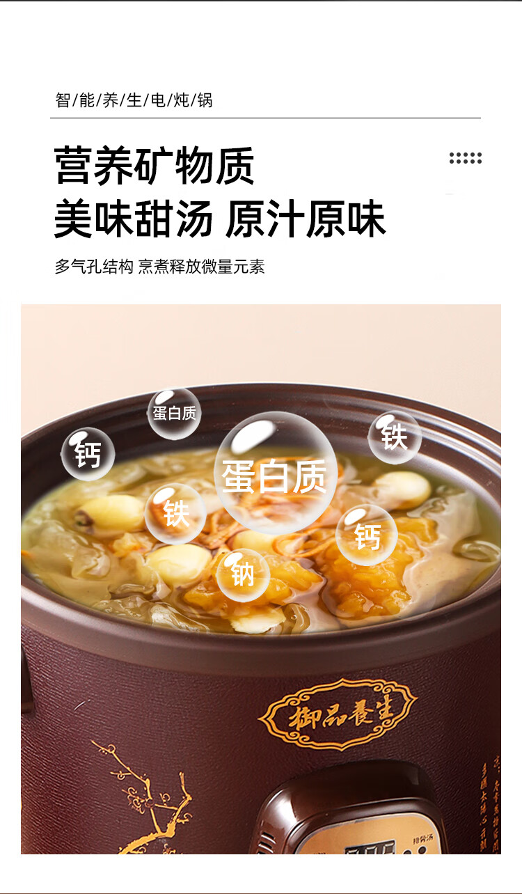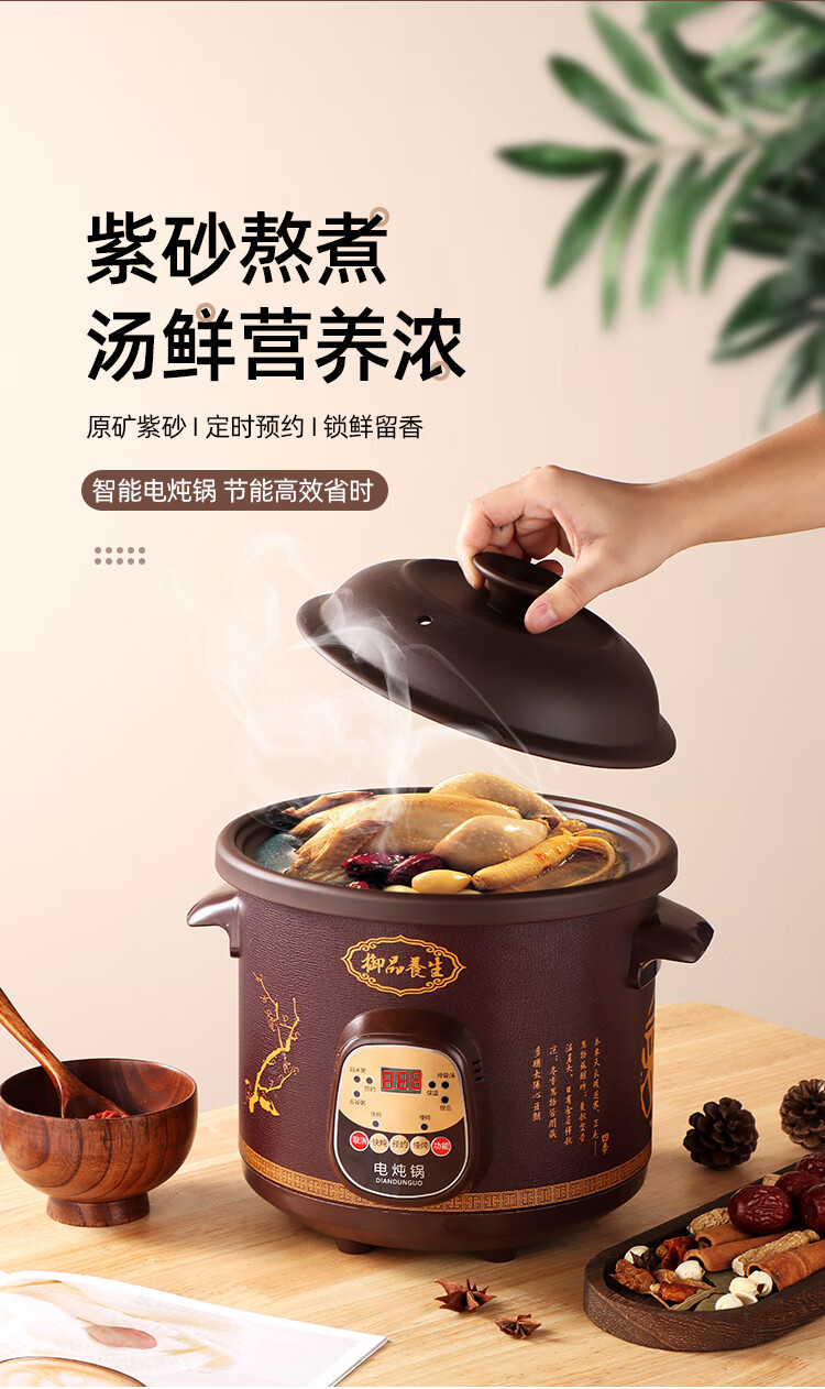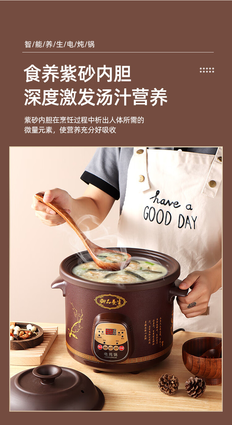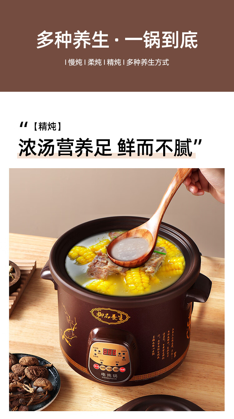 Electric stew pot, steamer, electric cooking pot, stew pot, casserole pot, stew and steam, all-in-one food supplement pot, stew soup cup, electric stew pot, electric casserole pot, soup pot, stew pot, water-proof porridge, multi-function, brown 6L smart reservation model