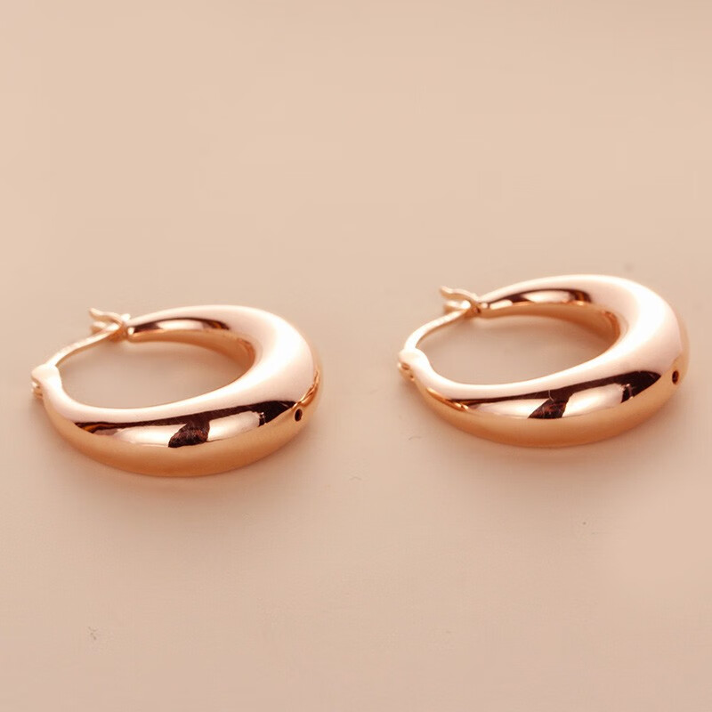 QUAMER585 purple gold earrings plated with 18K color gold glossy round earrings fashionable new ladies glossy earrings (pair of rose gold)