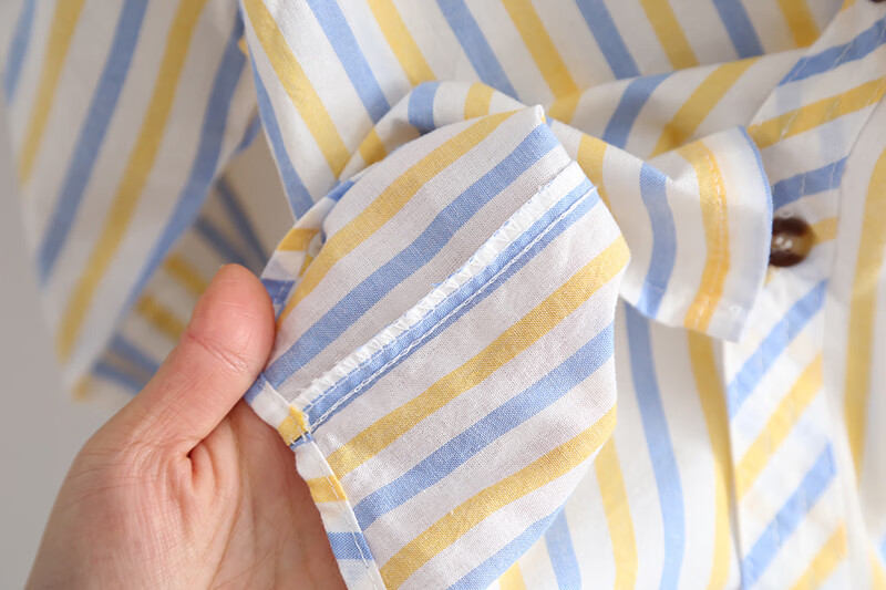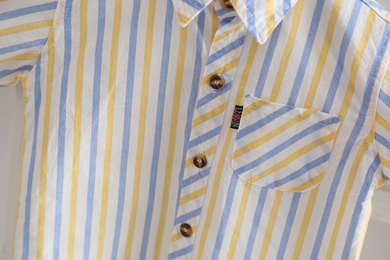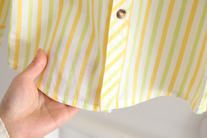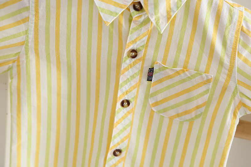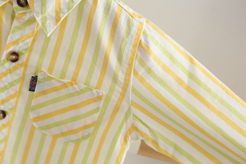 Mumuwu (mumuwu) 2025 new spring and summer boys striped shirt tops baby boy jacket 1-15 years old children summer thin lining yellow and green stripes 90 size 4 recommended height 80-85cm23Jin Jin is equal to about 0.5 kg