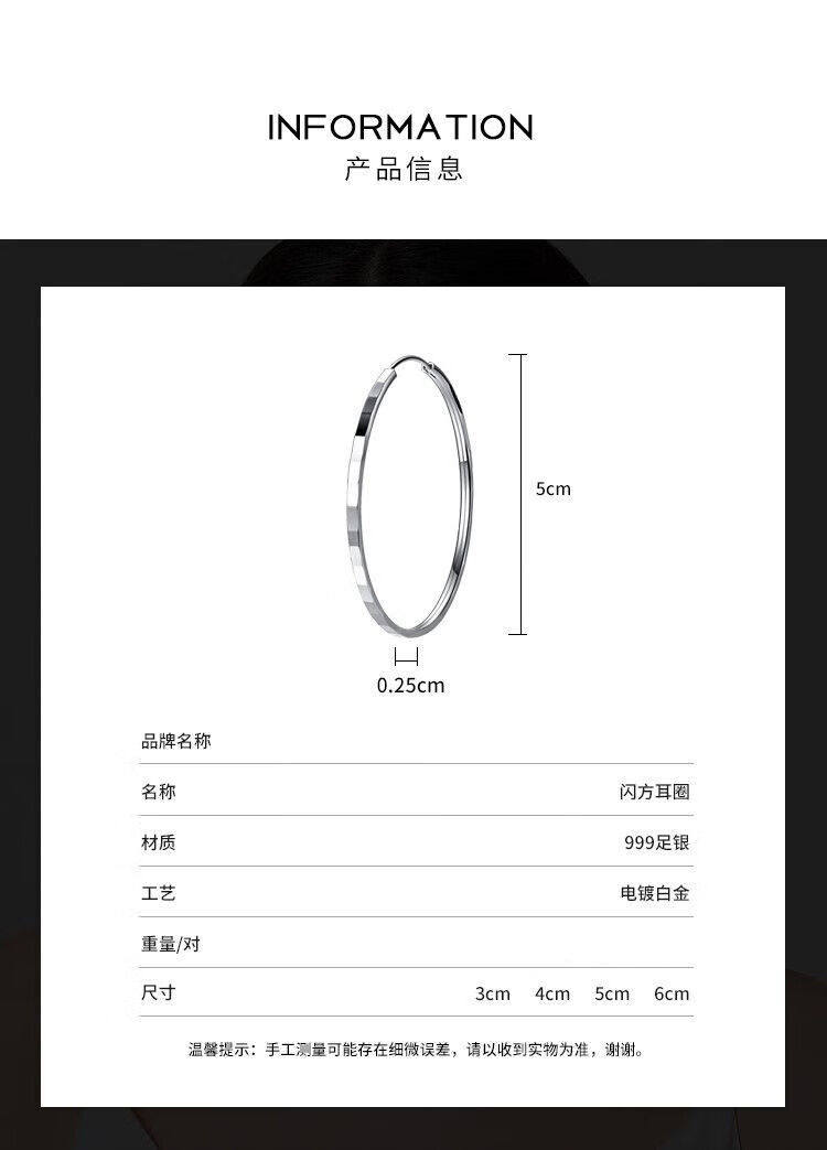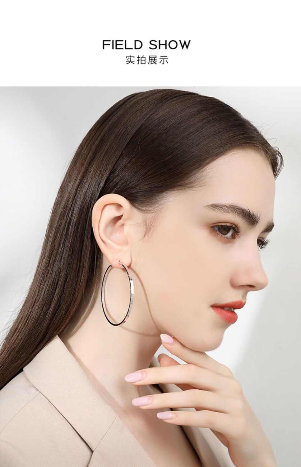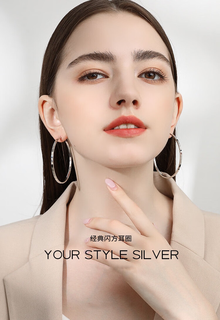 S999 pure silver earrings for women, pure silver hoop earrings, large hoops, plain hoops, 2025 new hot style high-end earrings, diameter 5.0 cm, sterling silver flash square large earrings