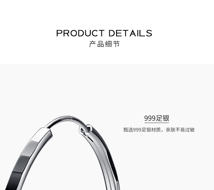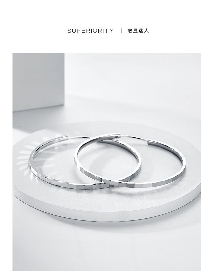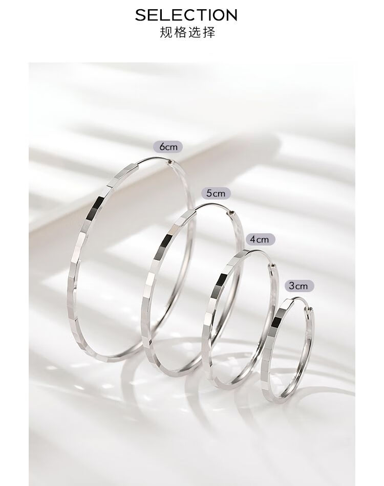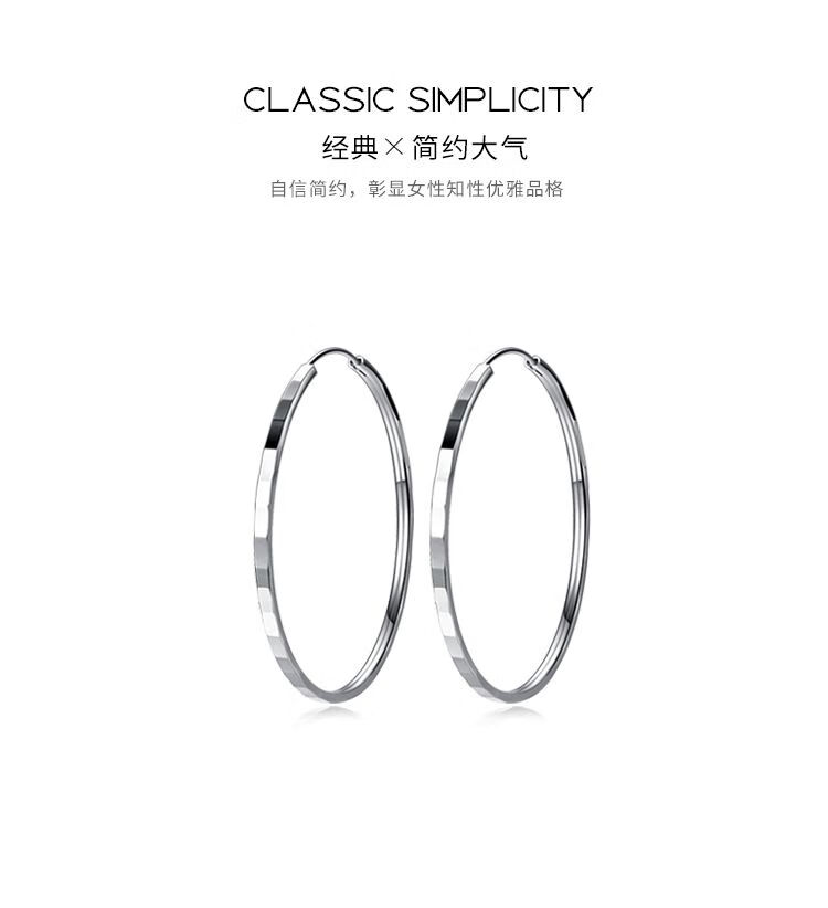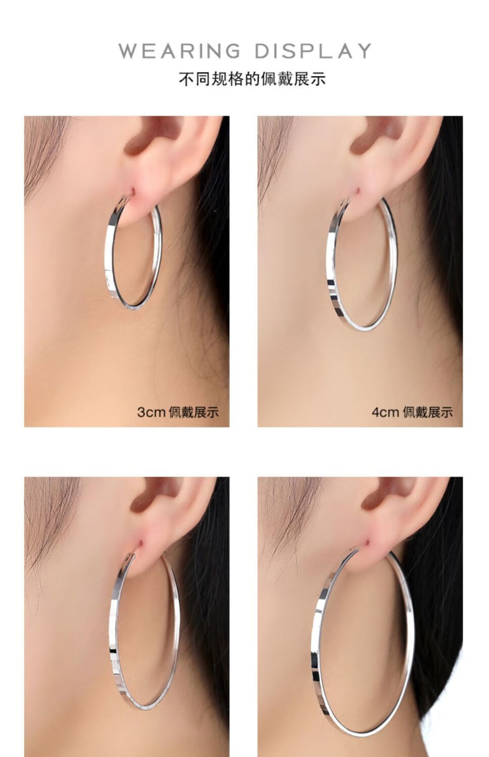 S999 pure silver earrings for women, pure silver hoop earrings, large hoops, plain hoops, 2025 new hot style high-end earrings, diameter 5.0 cm, sterling silver flash square large earrings