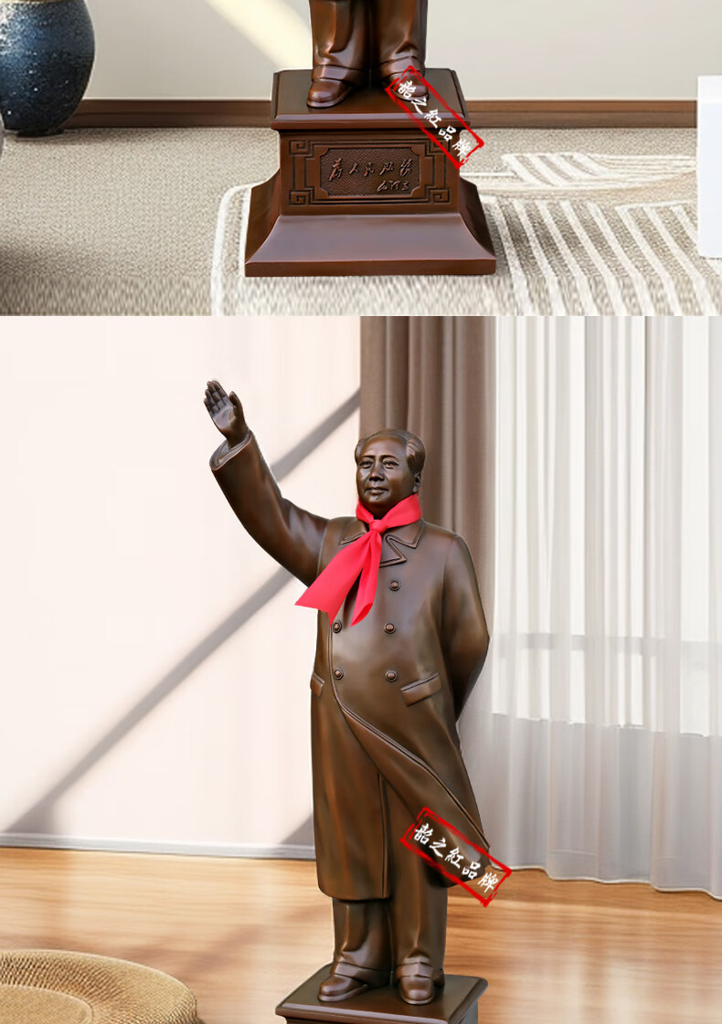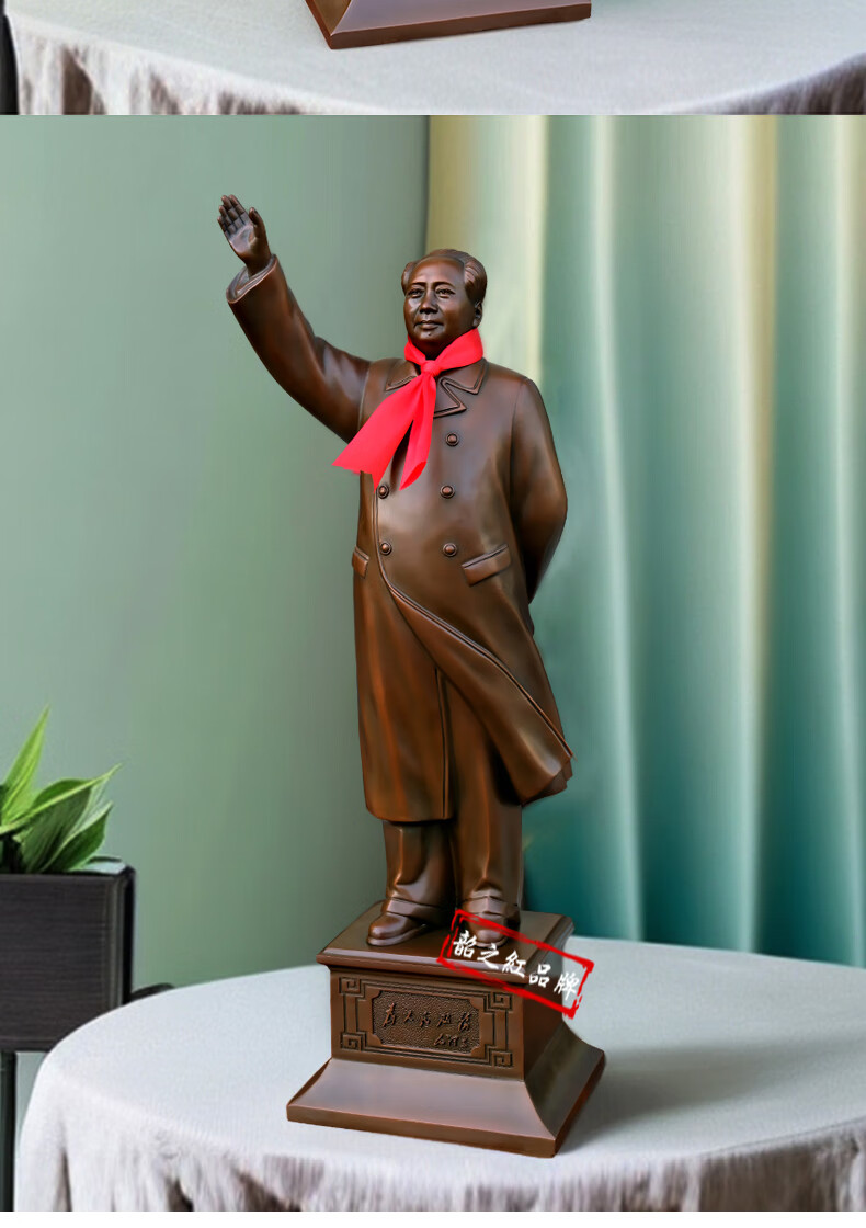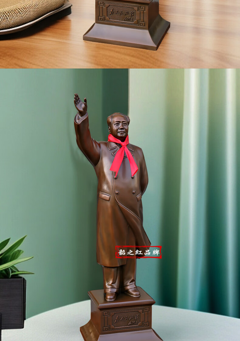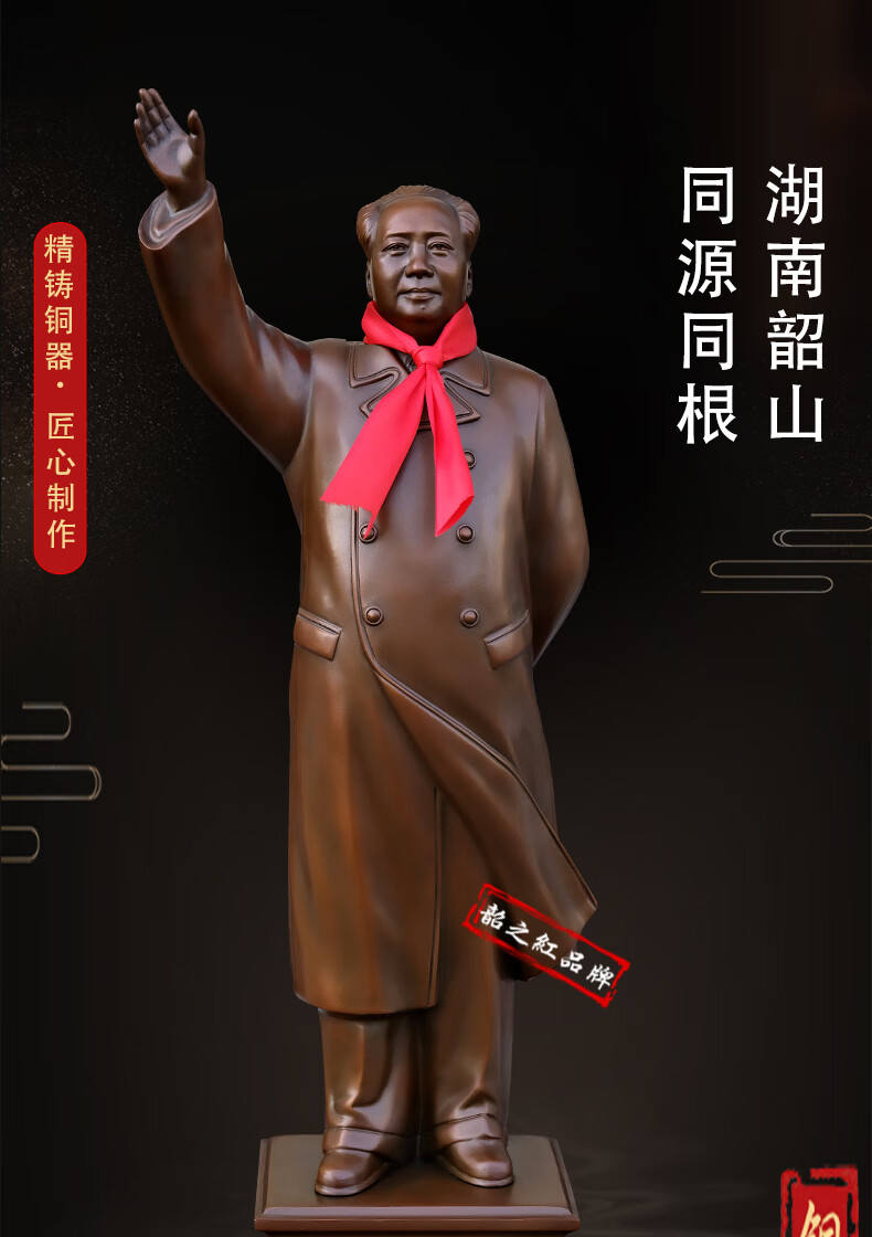 Shaozhihong H01 Official Chairman Mao Bronze Statue Purely Waving Mao Zedong Full Body Sculpture Living Room Entrance Office Ornament Authentic 21cm 131 Edition Commemorative Copper Color
