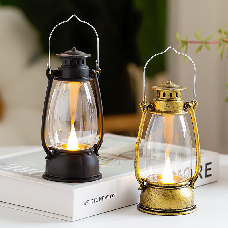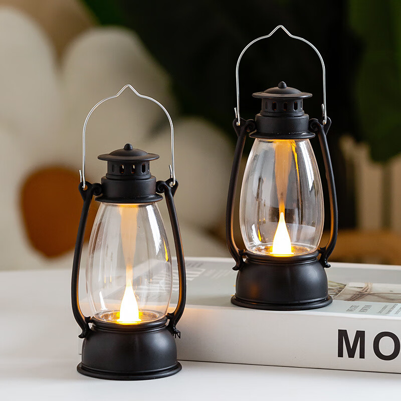 Camping lamp, creative retro portable night light, Internet celebrity mini atmosphere pony lamp, desktop posing oil lamp, retro portable night light, black 1 pc