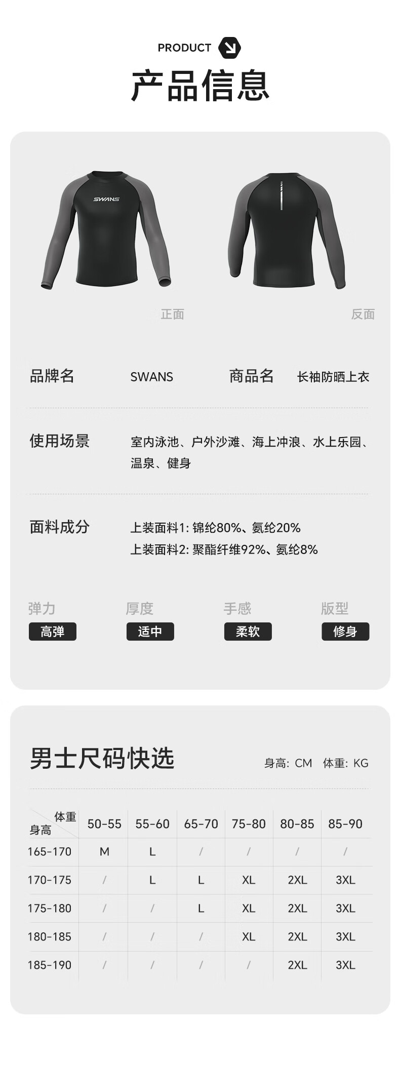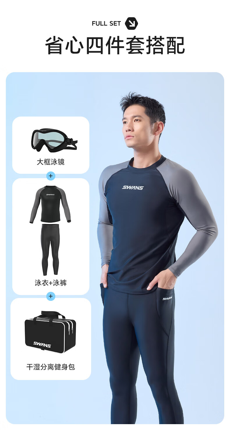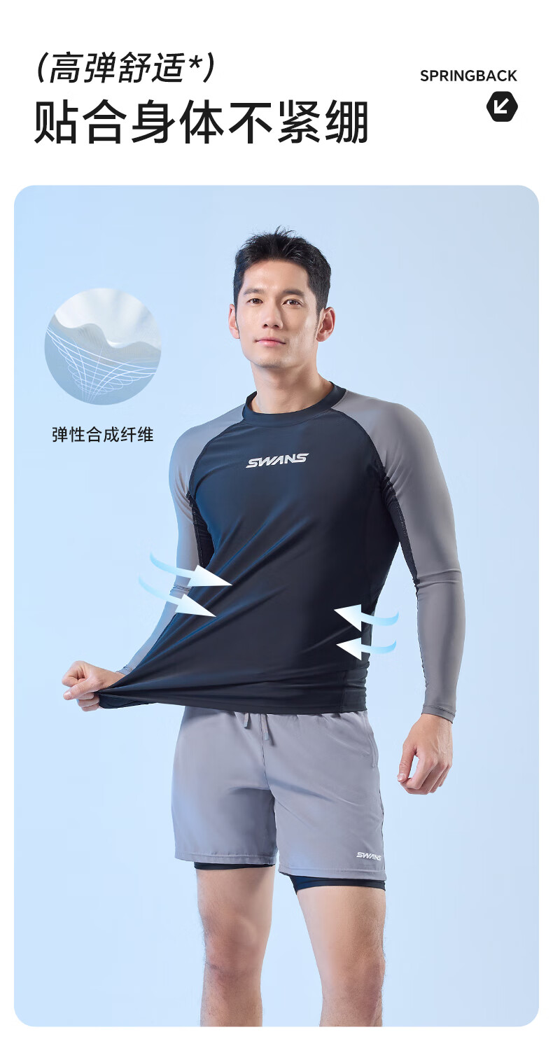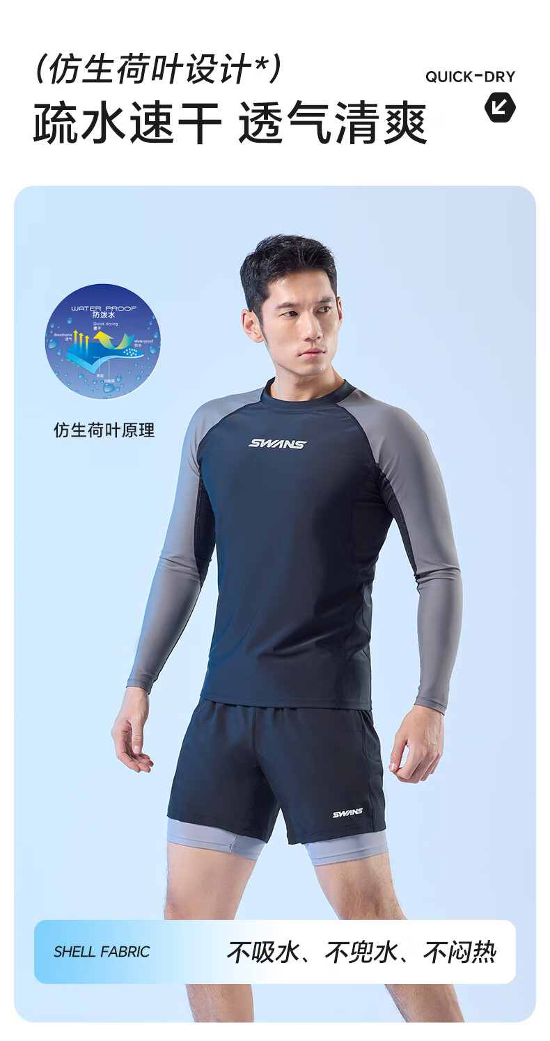 SWANS Men's Swimsuit Suit Quick-Drying Sun Protection New Style Black Gray L