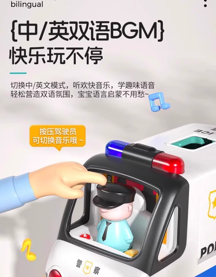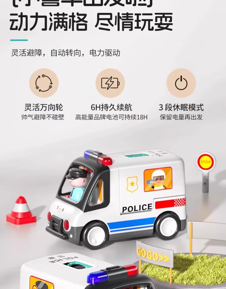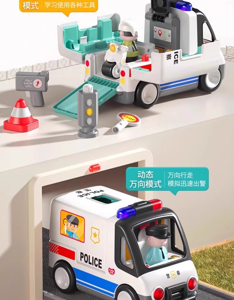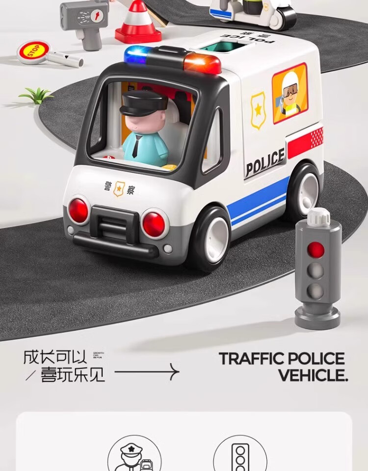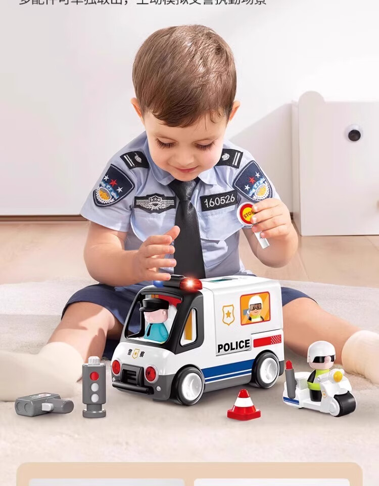Traffic police car toy electric children boys and girls car simulation model electric early education educational toy car early education remote control engineering vehicle